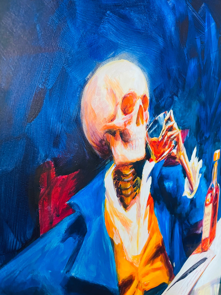 One Last Drink, acrylic on wooden panel by local artist Justin Trevor Inkwell.