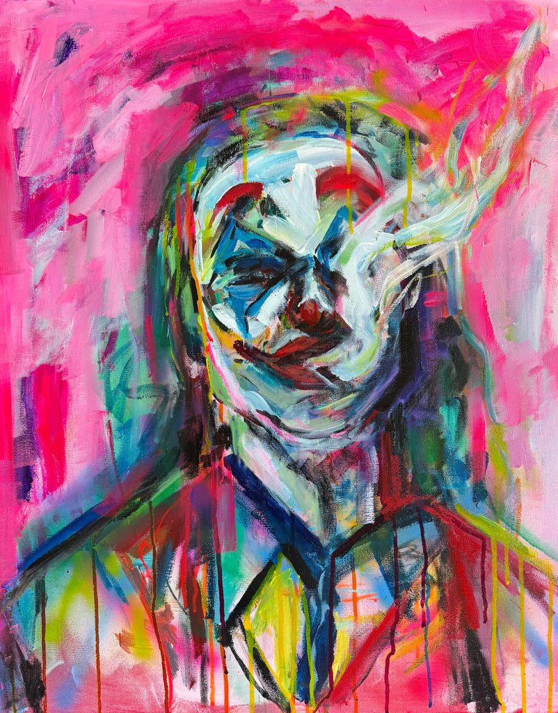 The heavy-handed use of acrylic paint, plus the additional layers of spray paint, chalk, ink, and oil pastels, work to create an authentic image that is thought provoking and hopeful.