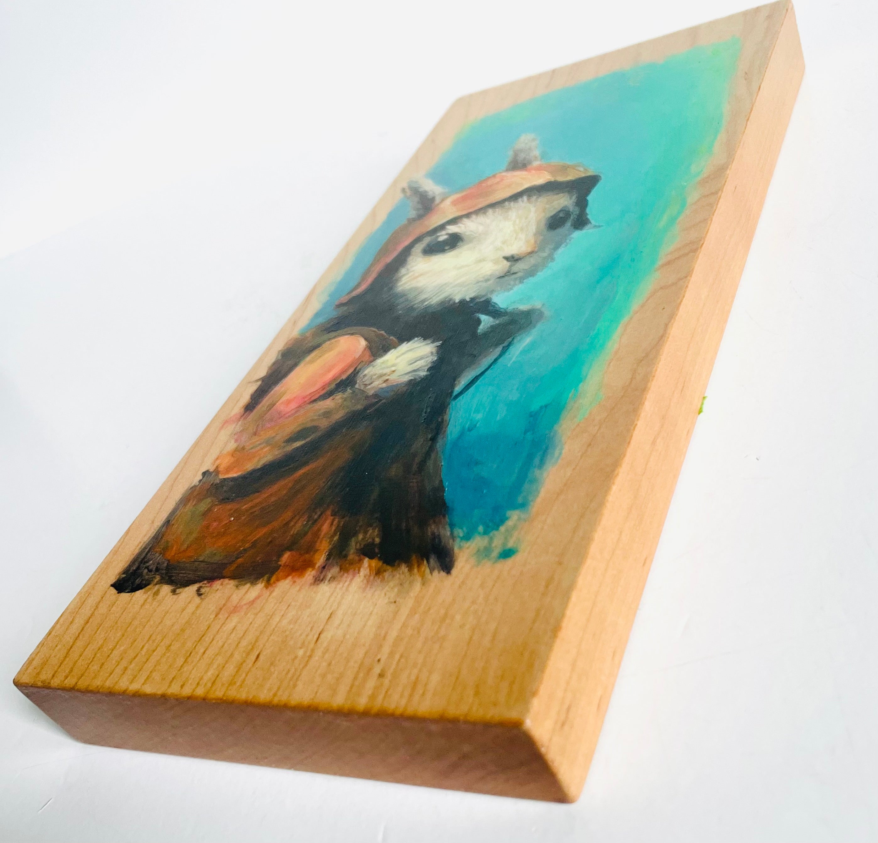 Original acrylic painting on maple wood panel; part of the Woodland Wanderers series by local artist Brandon Kells
