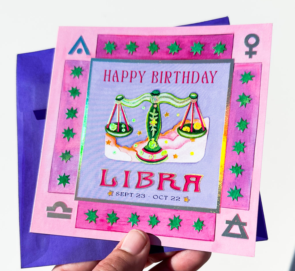 Foil design zodiac birthday cards by Louisville artist Irene Mudd!