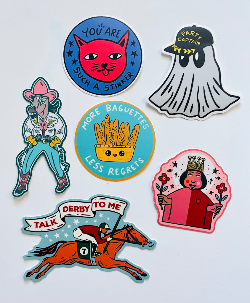 Matte finish vinyl stickers by local artist, John Mata of Good Time Goods