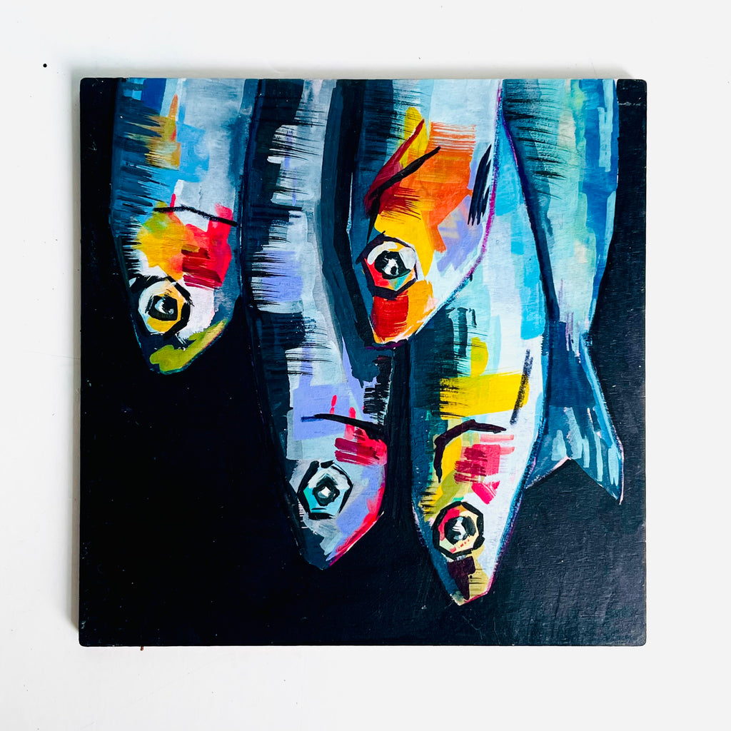 Hand-painted original Gouache studies by Kelley Luckett on a 4" x 4" wood panel.