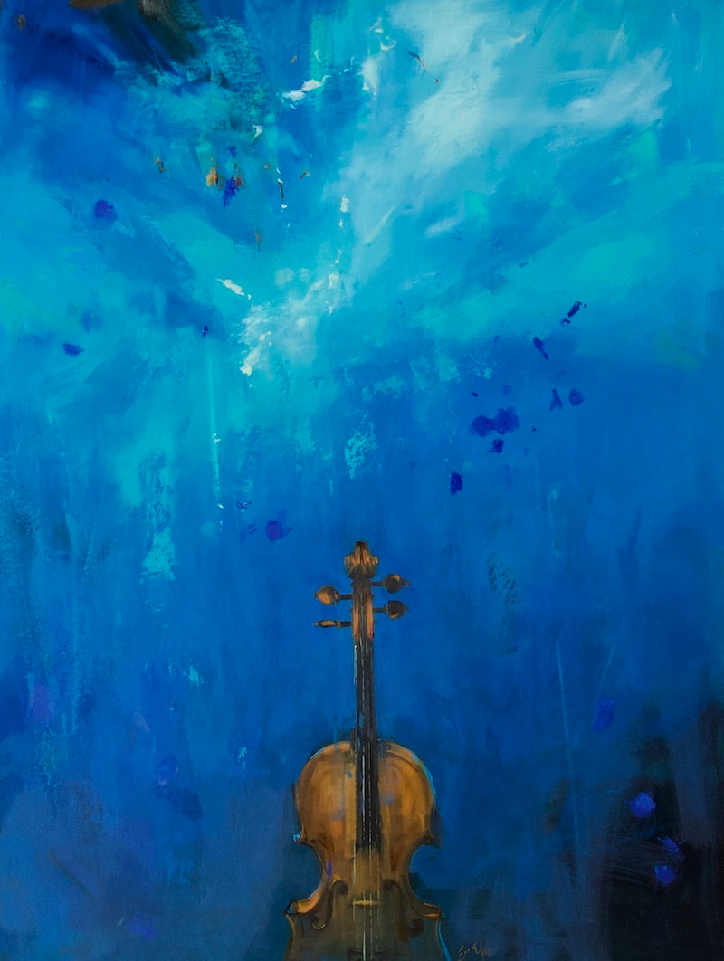 Deep Ocean Music with a Violin, original oil painting on canvas by local Louisville artist, Ewa Perz!