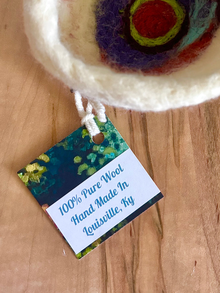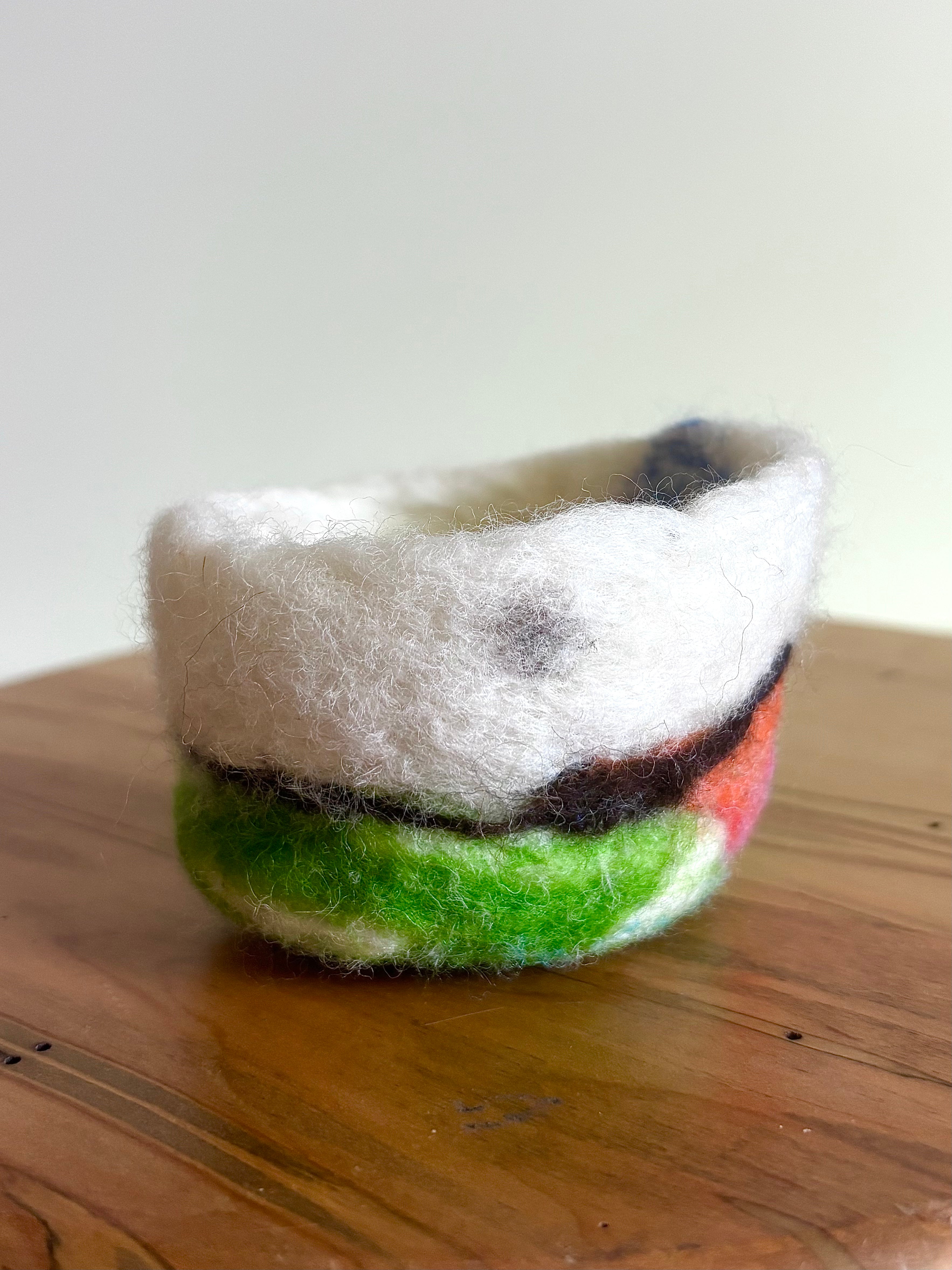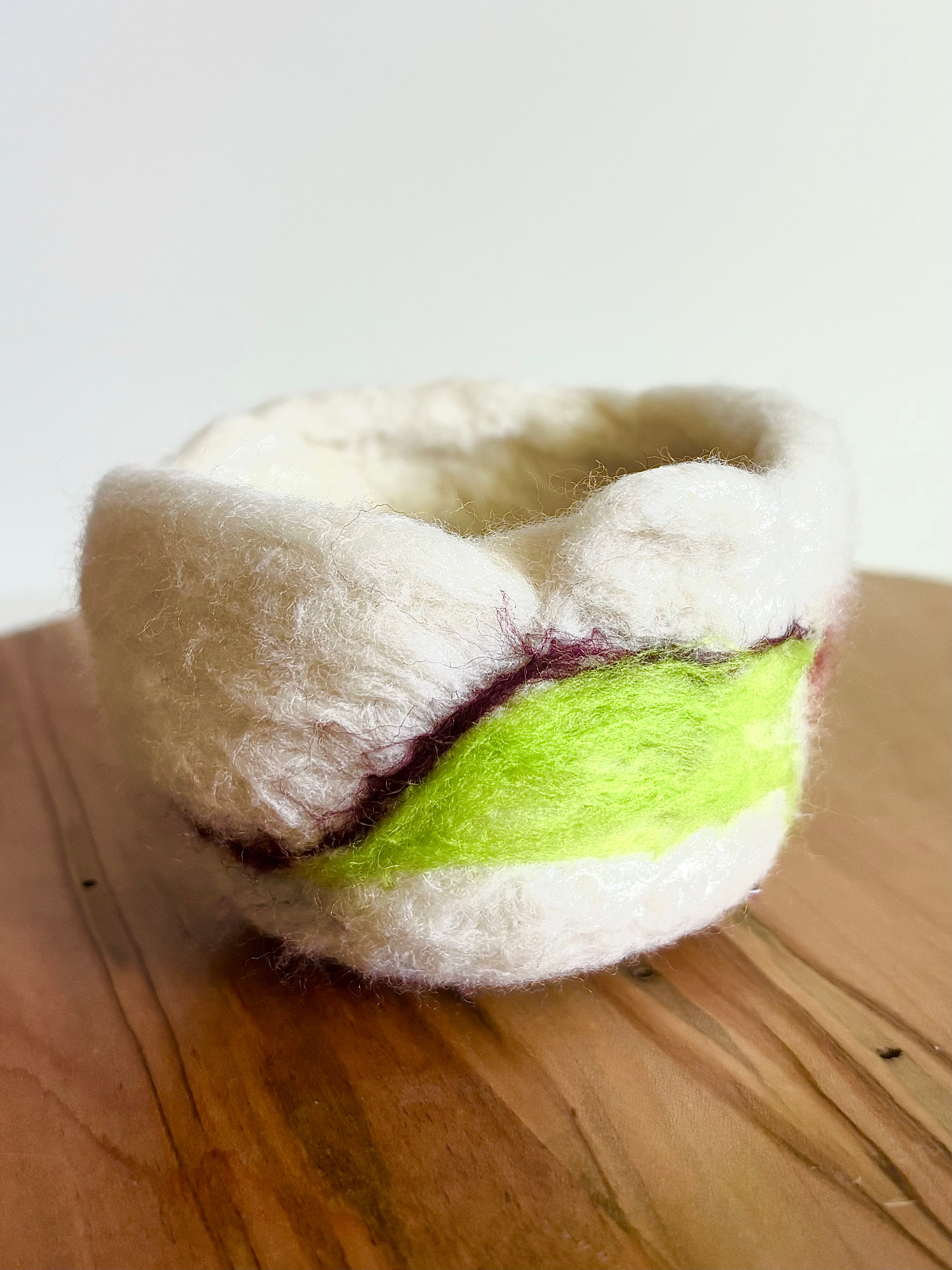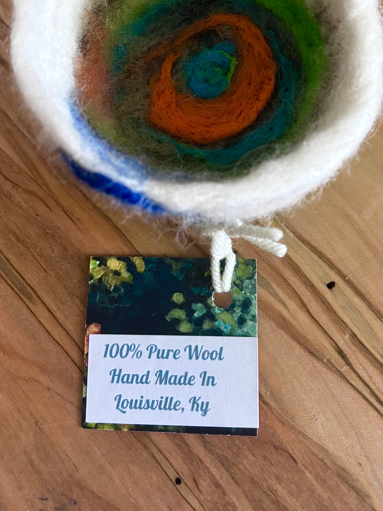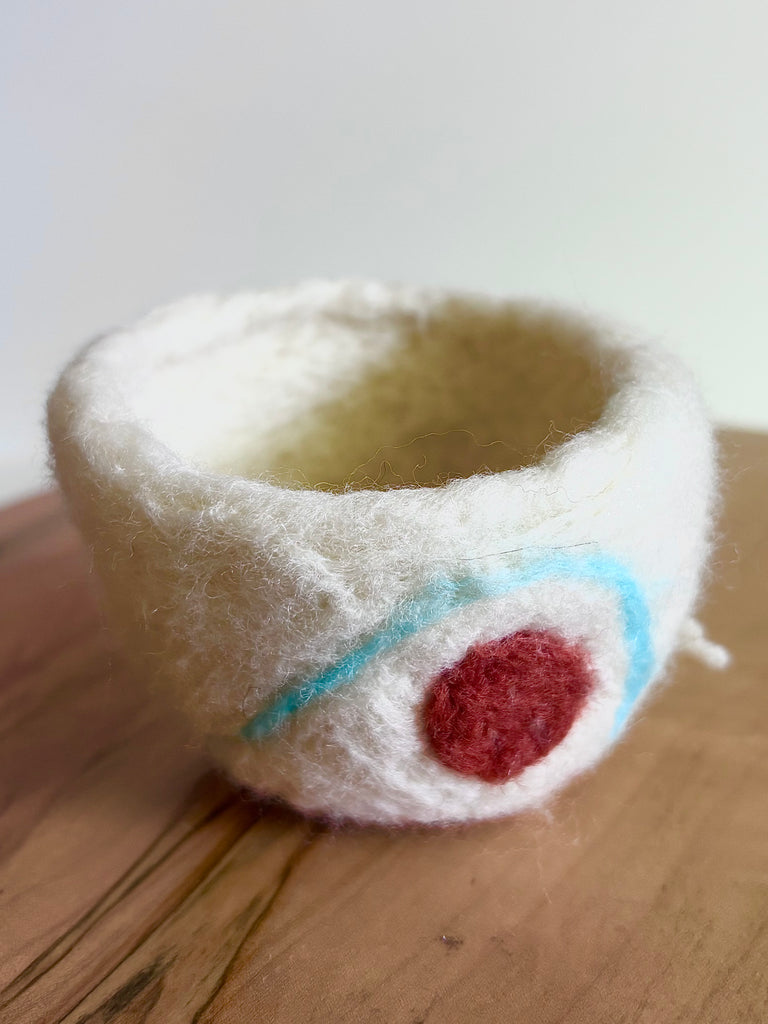 Small hand-felted wool bowls, made by local artist Trish Lounsbury.