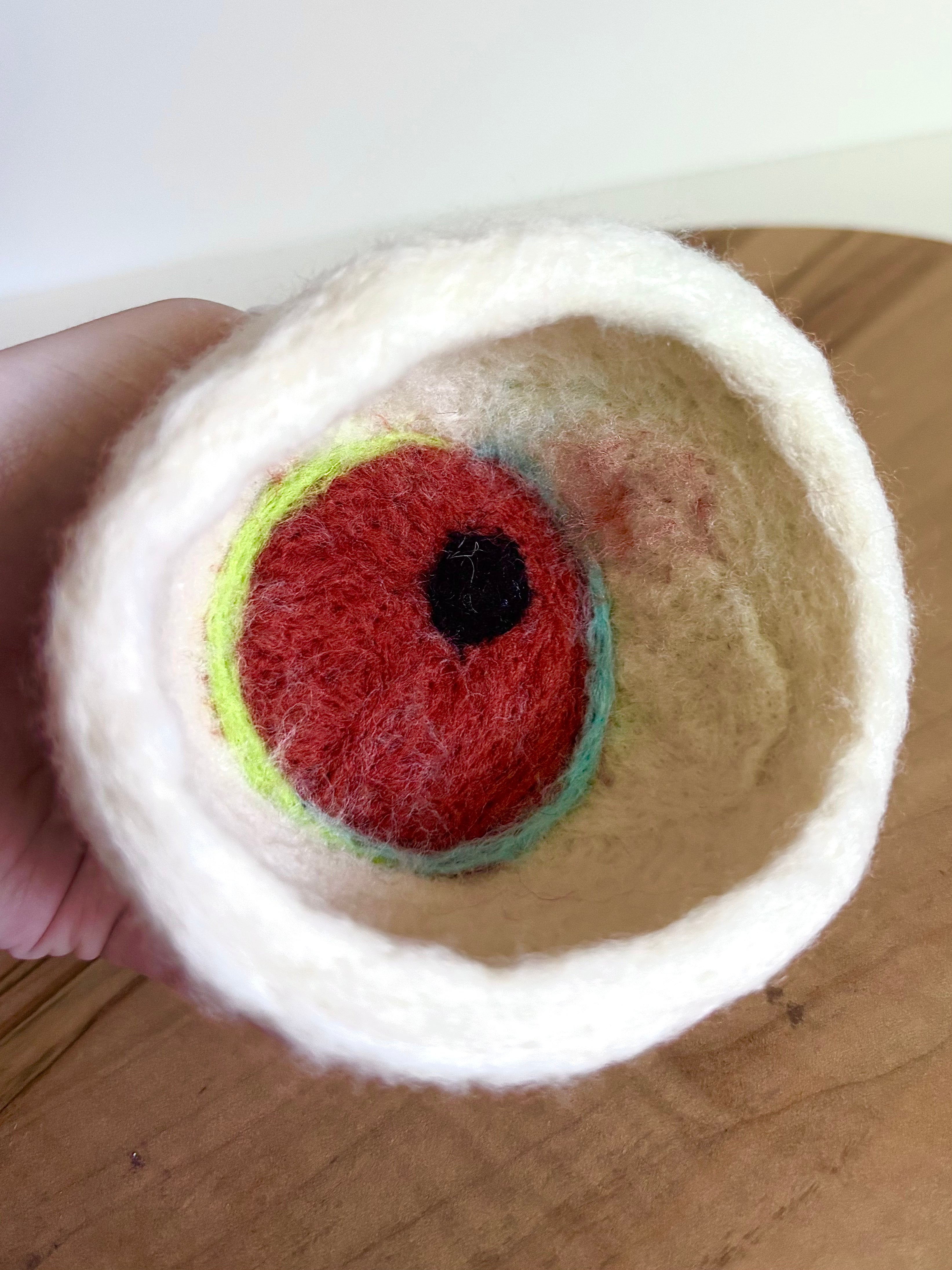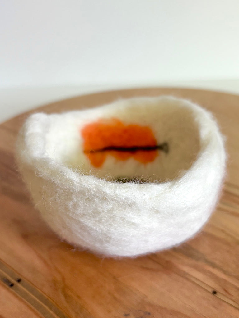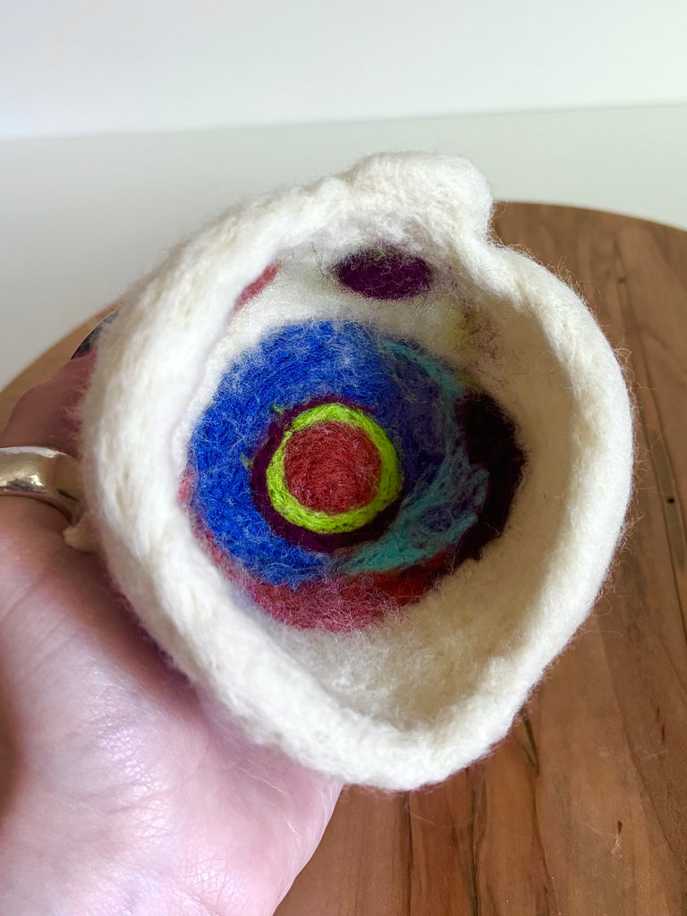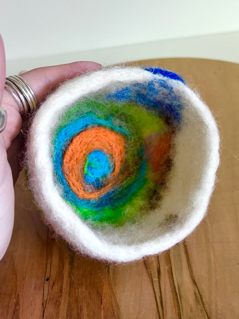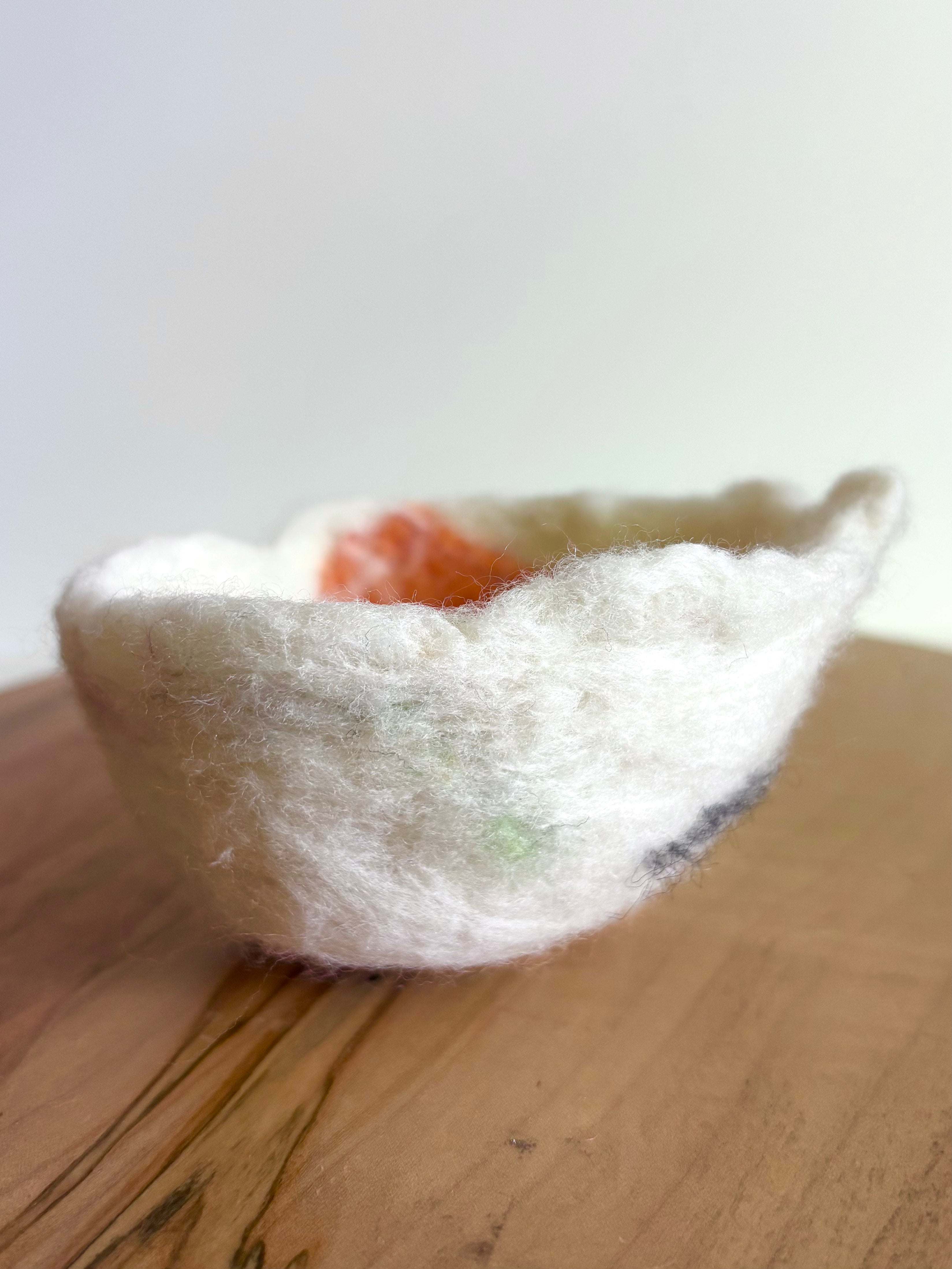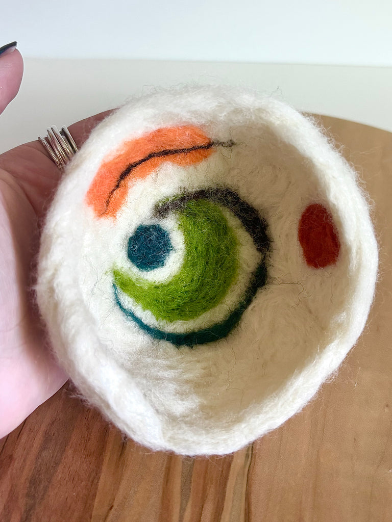 Small hand-felted wool bowls, made by local artist Trish Lounsbury.