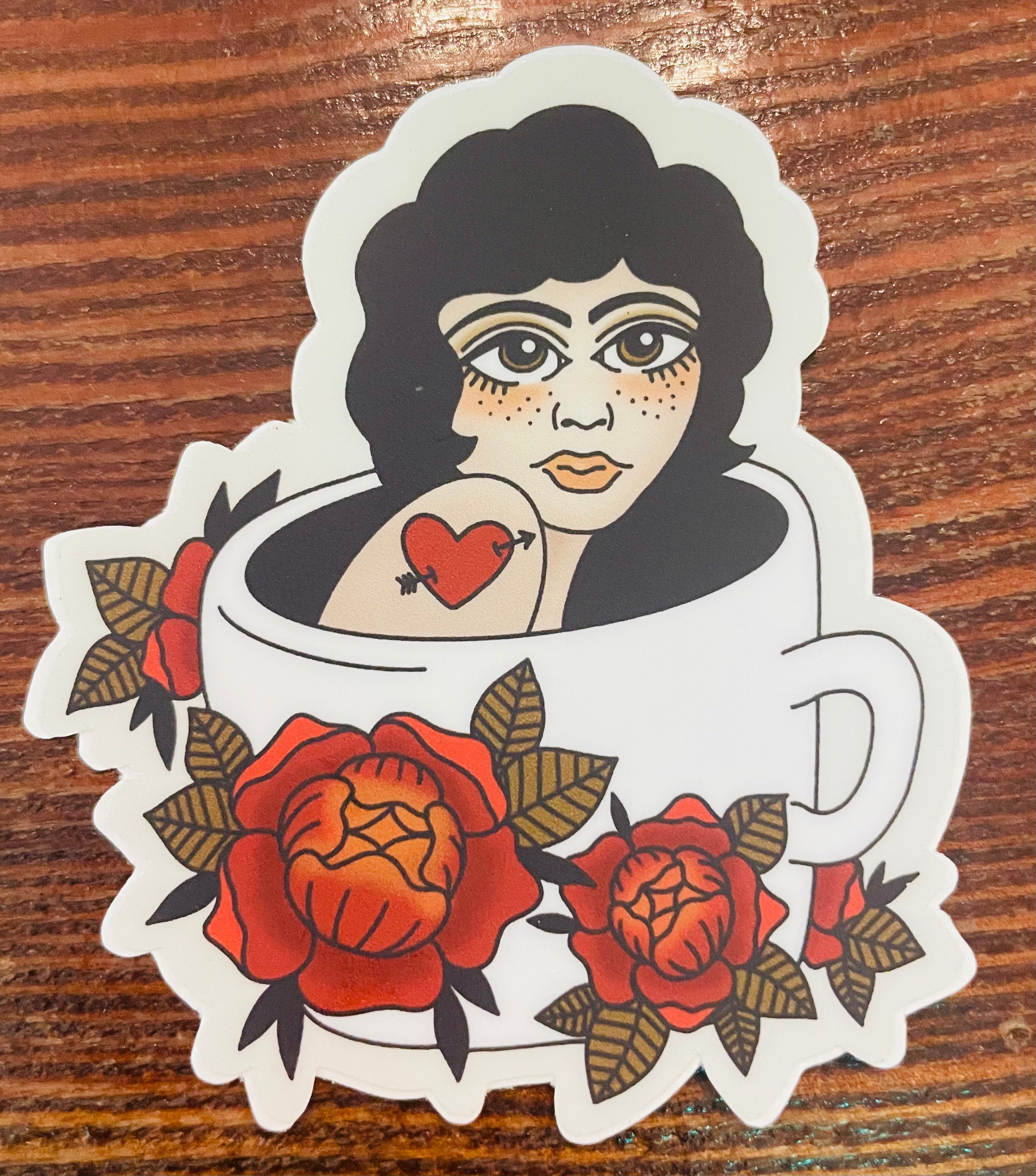 Coffee Brews & Tattoos - Floral Mug Sticker