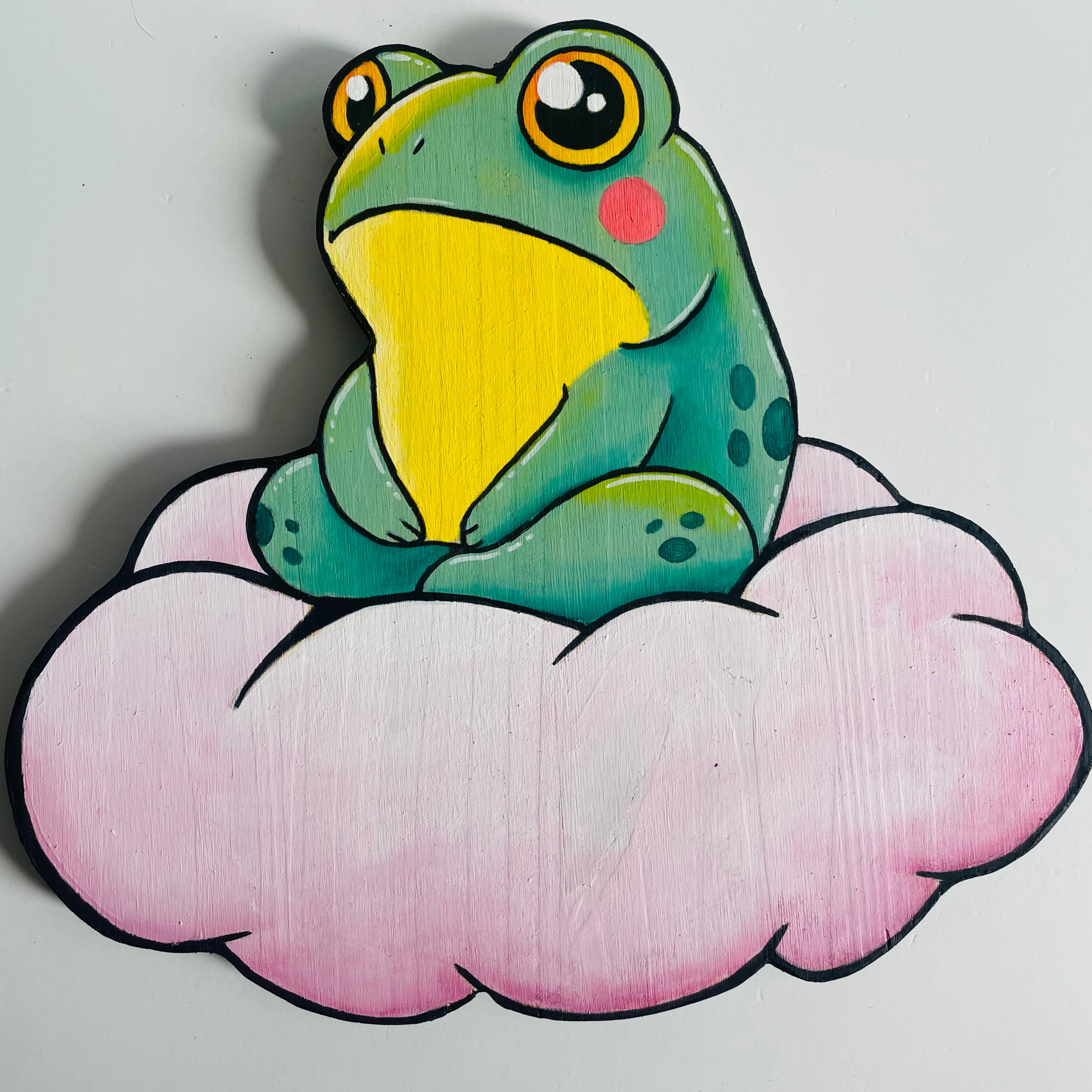 ; cutout wooden mixed media painting; by local artist Harrison Fogle