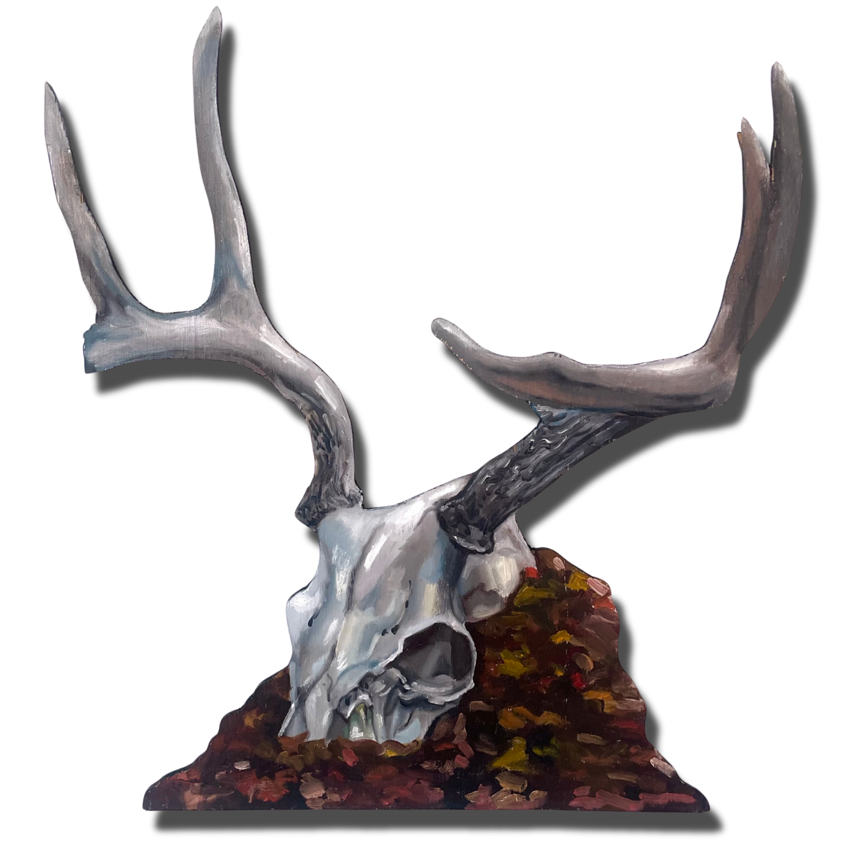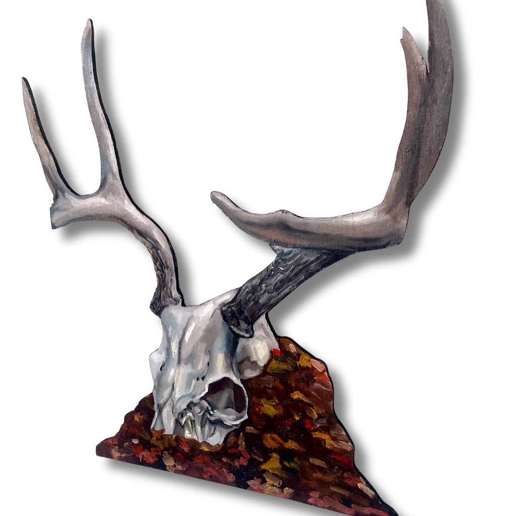 Buried Under Leaves, Oil, Acrylic, and Pigmented Varnish on Wood Panel Cut-Out by Louisville artist Jacob Grant.