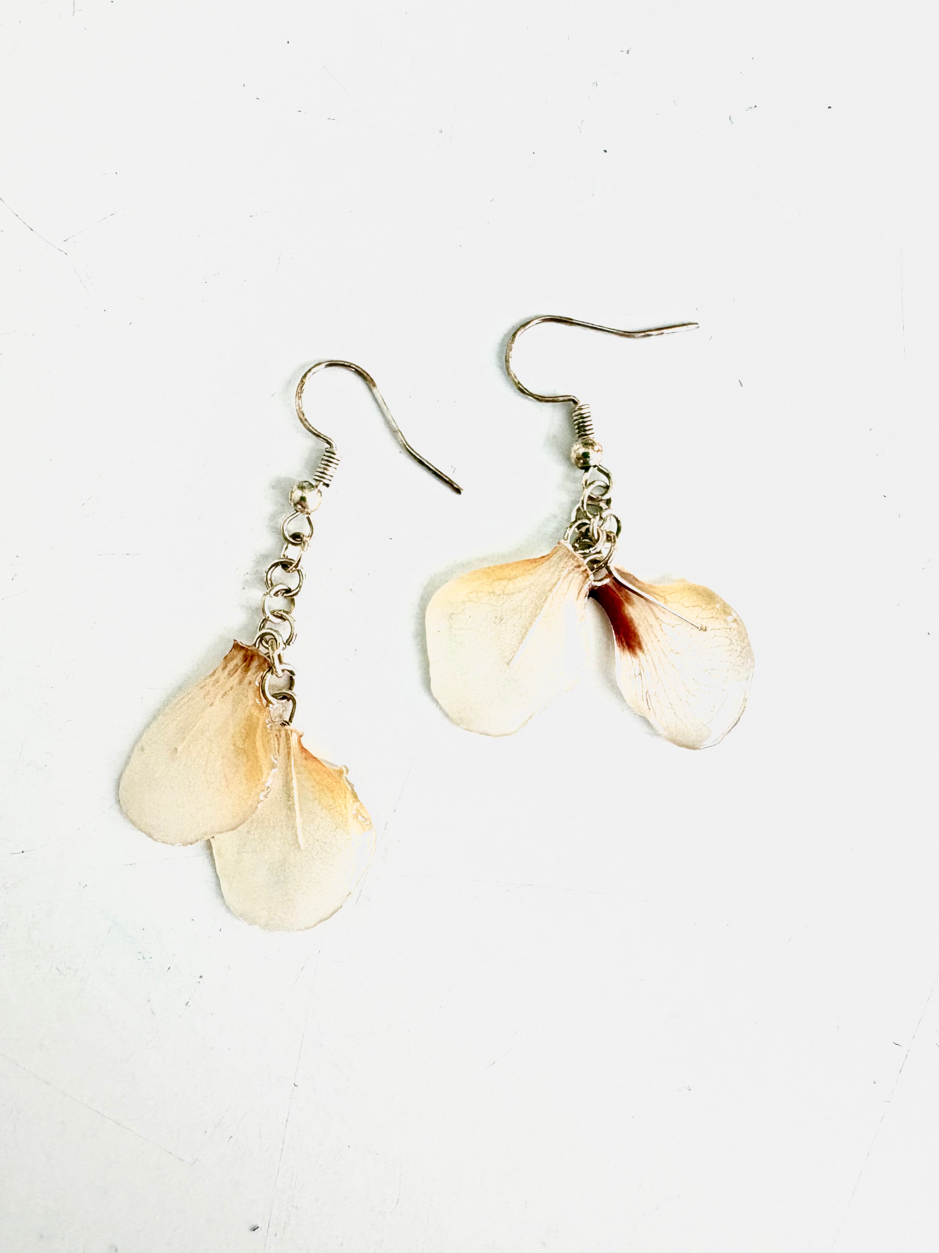 Organic pressed flowers cast in resin earrings by Louisville Artist, Jamilaworks. As these are natural and handmade, slight variations are to be expected in each pair.