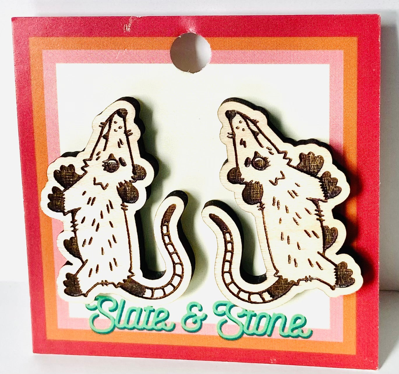 Laser-etched wood post earrings, by local artist Slate & Stone