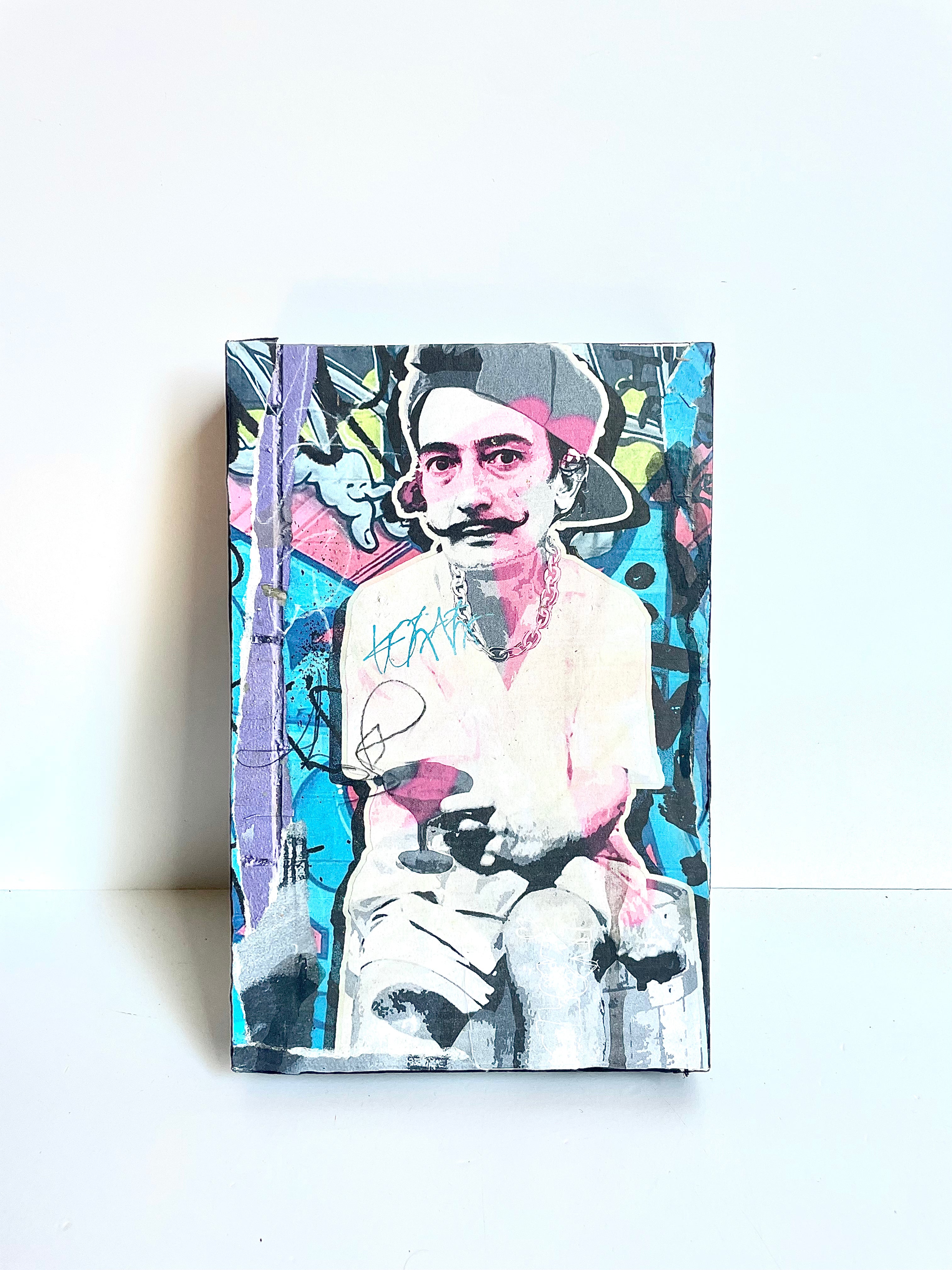 Named after the street art movement—each work of art includes found imagery, personal photography & drawings that are digitally manipulated, collaged and then wheat pasted on repurposed blocks of wood. Each piece is varnished, finished with black painted sides, signed & numbered on back.