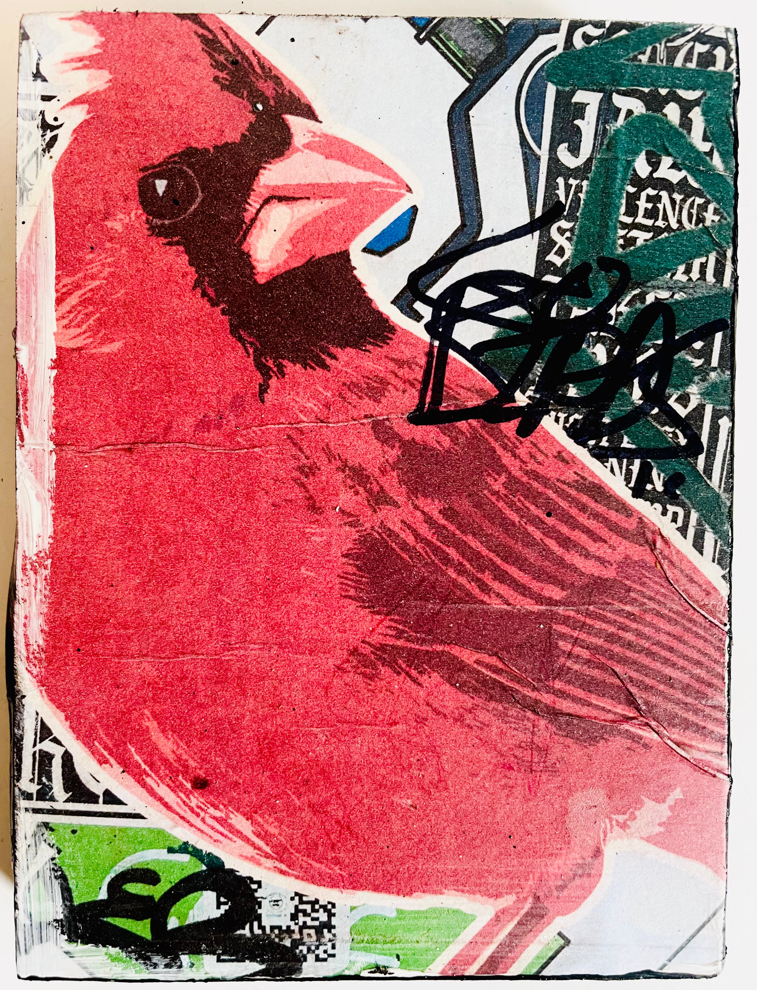 Named after the street art movement—each work of art includes found imagery, personal photography & drawings that are digitally manipulated, collaged and then wheat pasted on repurposed blocks of wood. Each piece is varnished, finished with black painted sides, signed & numbered on back.