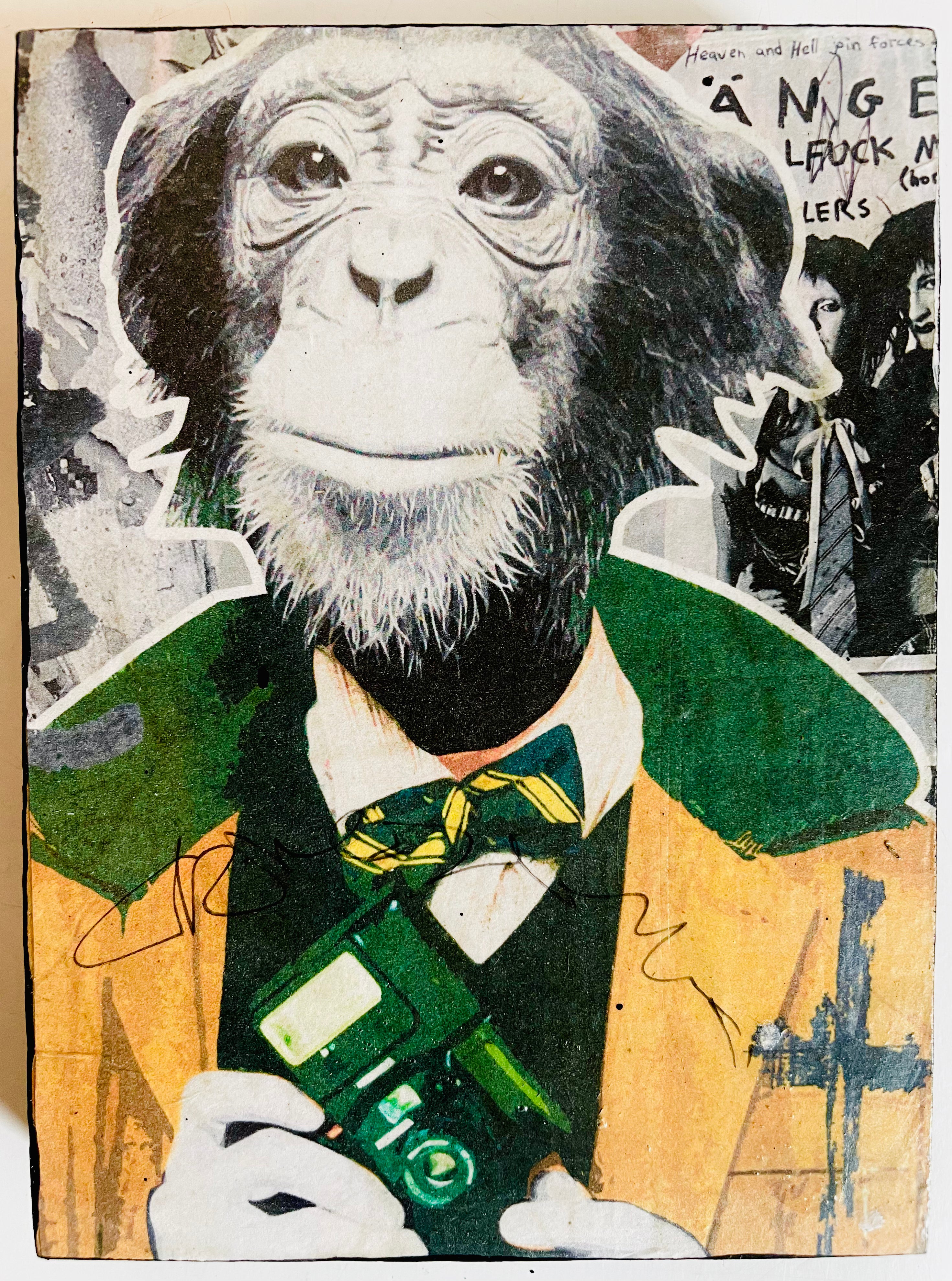 Named after the street art movement—each work of art includes found imagery, personal photography & drawings that are digitally manipulated, collaged and then wheat pasted on repurposed blocks of wood. Each piece is varnished, finished with black painted sides, signed & numbered on back.