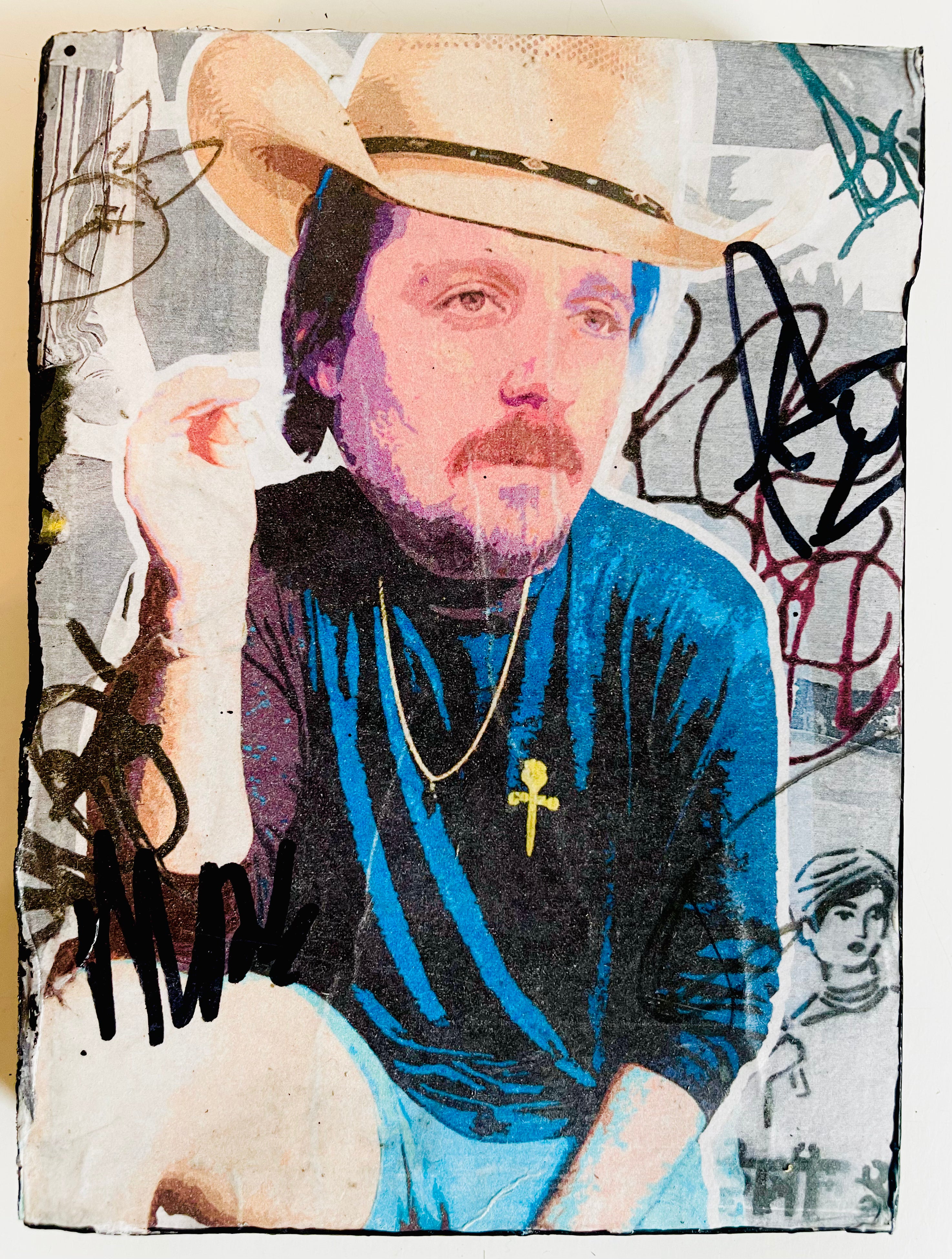 Named after the street art movement—each work of art includes found imagery, personal photography & drawings that are digitally manipulated, collaged and then wheat pasted on repurposed blocks of wood. Each piece is varnished, finished with black painted sides, signed & numbered on back.