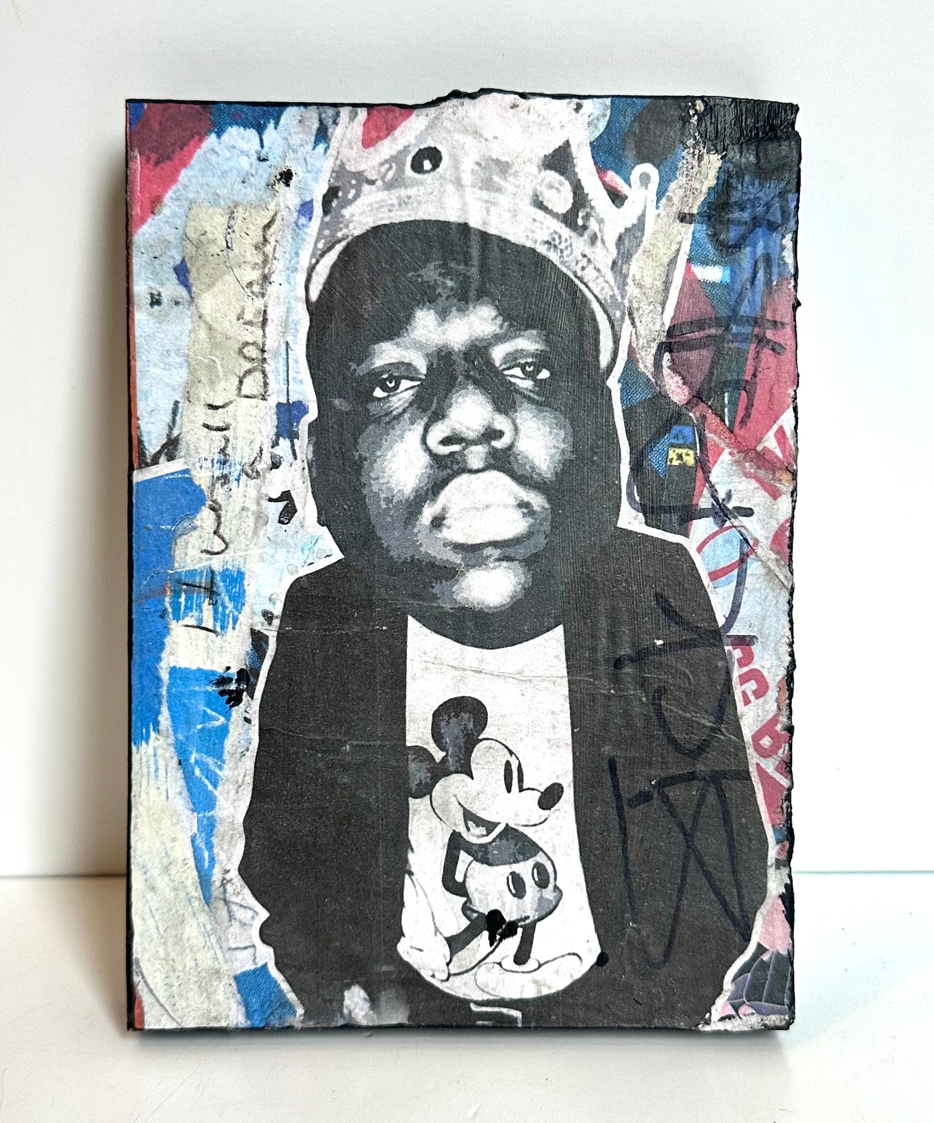 Named after the street art movement—each work of art includes found imagery, personal photography & drawings that are digitally manipulated, collaged and then wheat pasted on repurposed blocks of wood. Each piece is varnished, finished with black painted sides, signed & numbered on back.