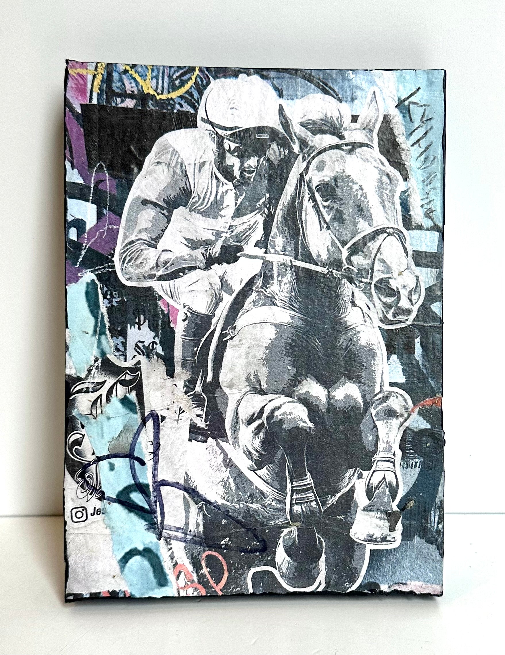 Named after the street art movement—each work of art includes found imagery, personal photography & drawings that are digitally manipulated, collaged and then wheat pasted on repurposed blocks of wood. Each piece is varnished, finished with black painted sides, signed & numbered on back.