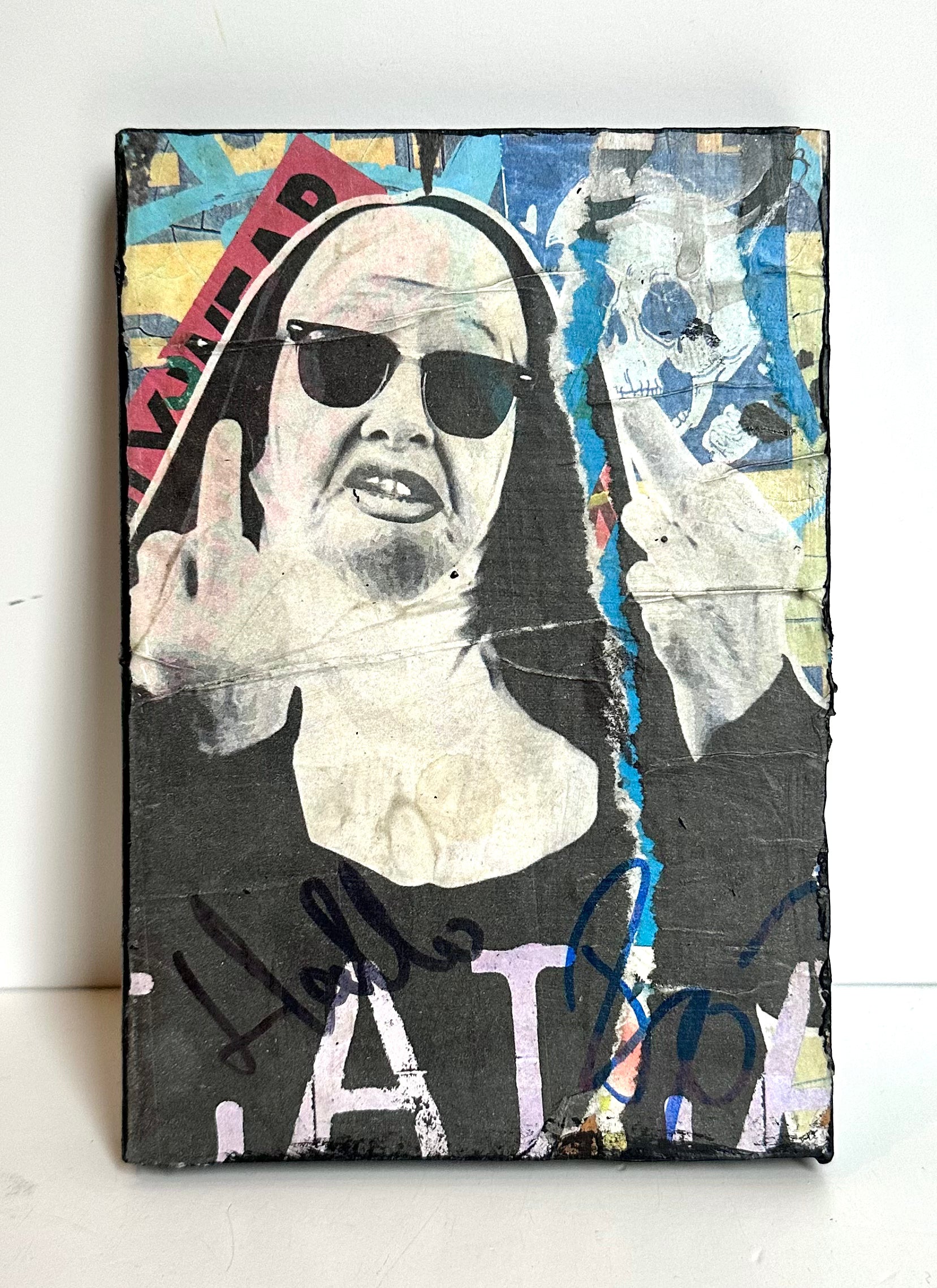 Named after the street art movement—each work of art includes found imagery, personal photography & drawings that are digitally manipulated, collaged and then wheat pasted on repurposed blocks of wood. Each piece is varnished, finished with black painted sides, signed & numbered on back.
