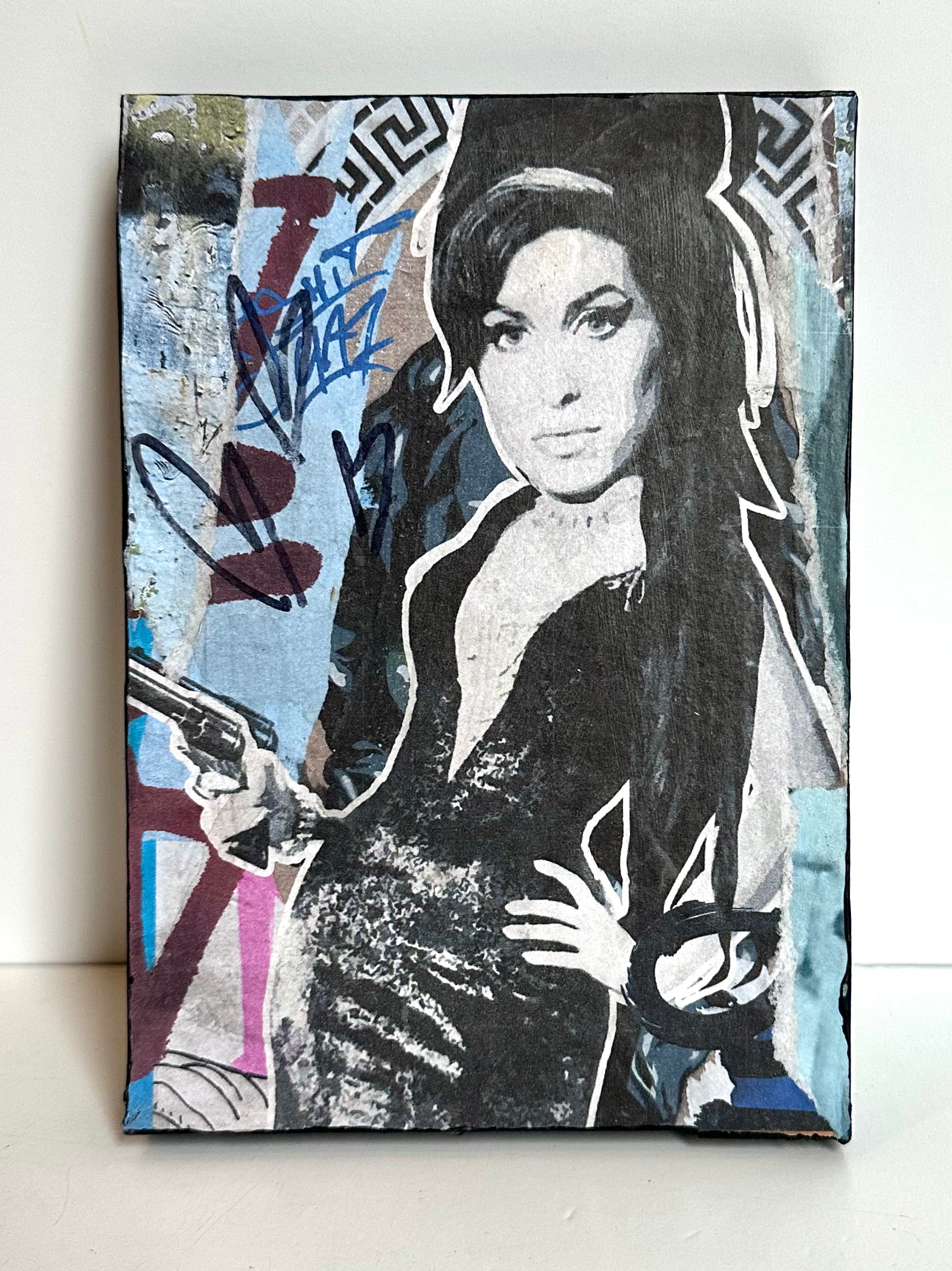 Named after the street art movement—each work of art includes found imagery, personal photography & drawings that are digitally manipulated, collaged and then wheat pasted on repurposed blocks of wood. Each piece is varnished, finished with black painted sides, signed & numbered on back.
