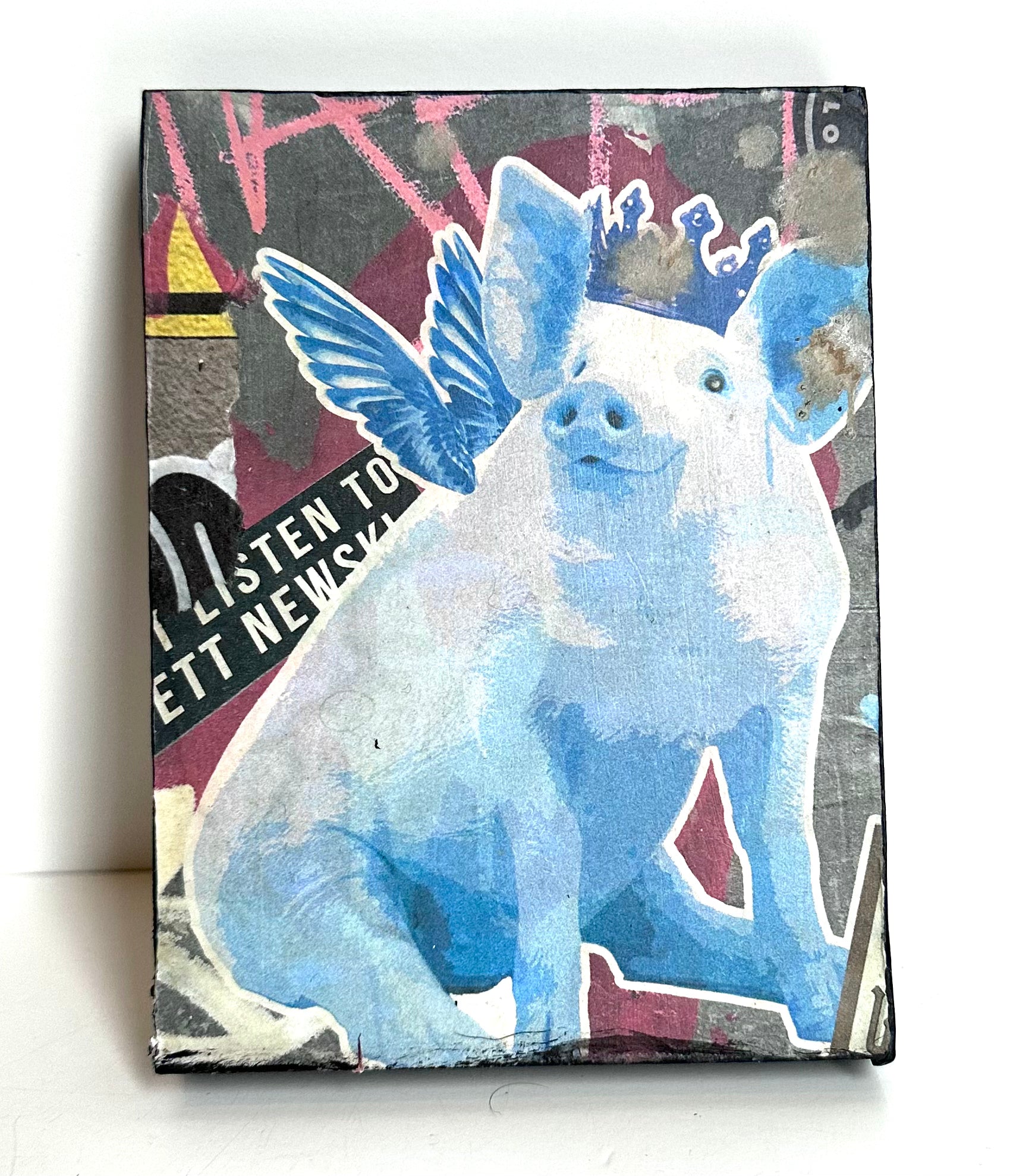 Named after the street art movement—each work of art includes found imagery, personal photography & drawings that are digitally manipulated, collaged and then wheat pasted on repurposed blocks of wood. Each piece is varnished, finished with black painted sides, signed & numbered on back.