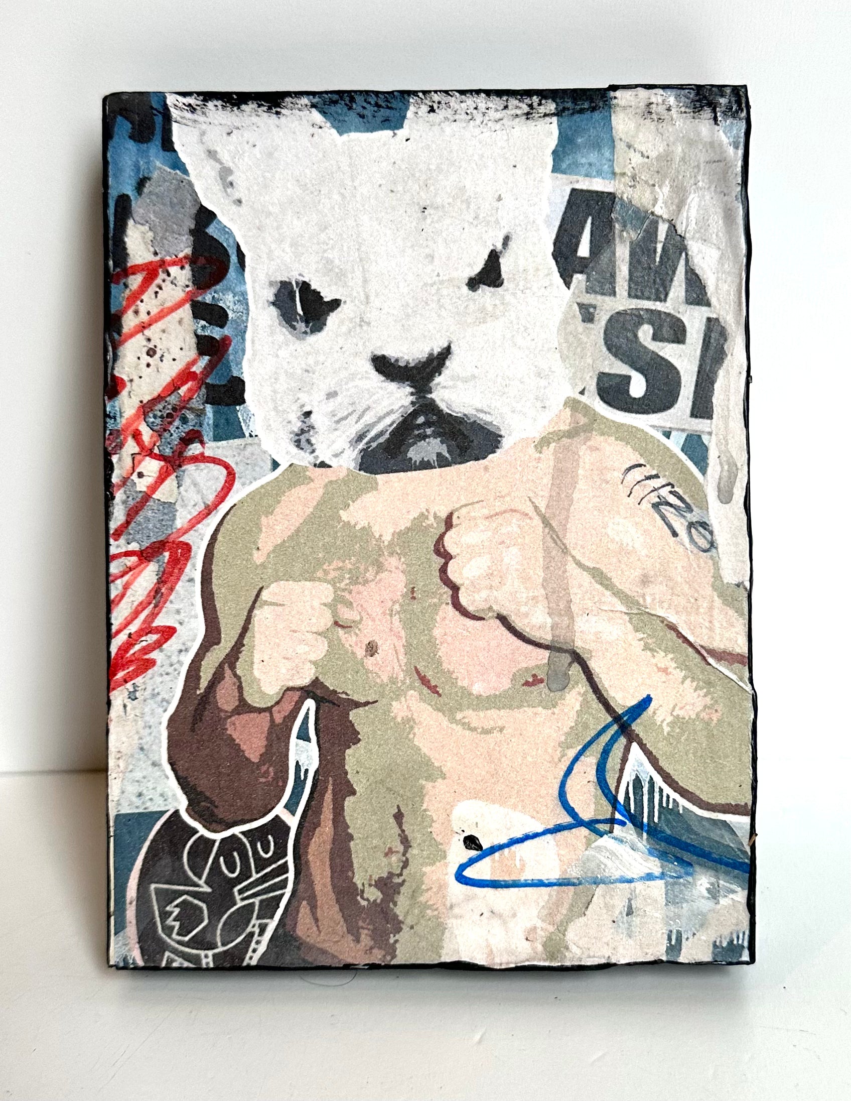 Named after the street art movement—each work of art includes found imagery, personal photography & drawings that are digitally manipulated, collaged and then wheat pasted on repurposed blocks of wood. Each piece is varnished, finished with black painted sides, signed & numbered on back.