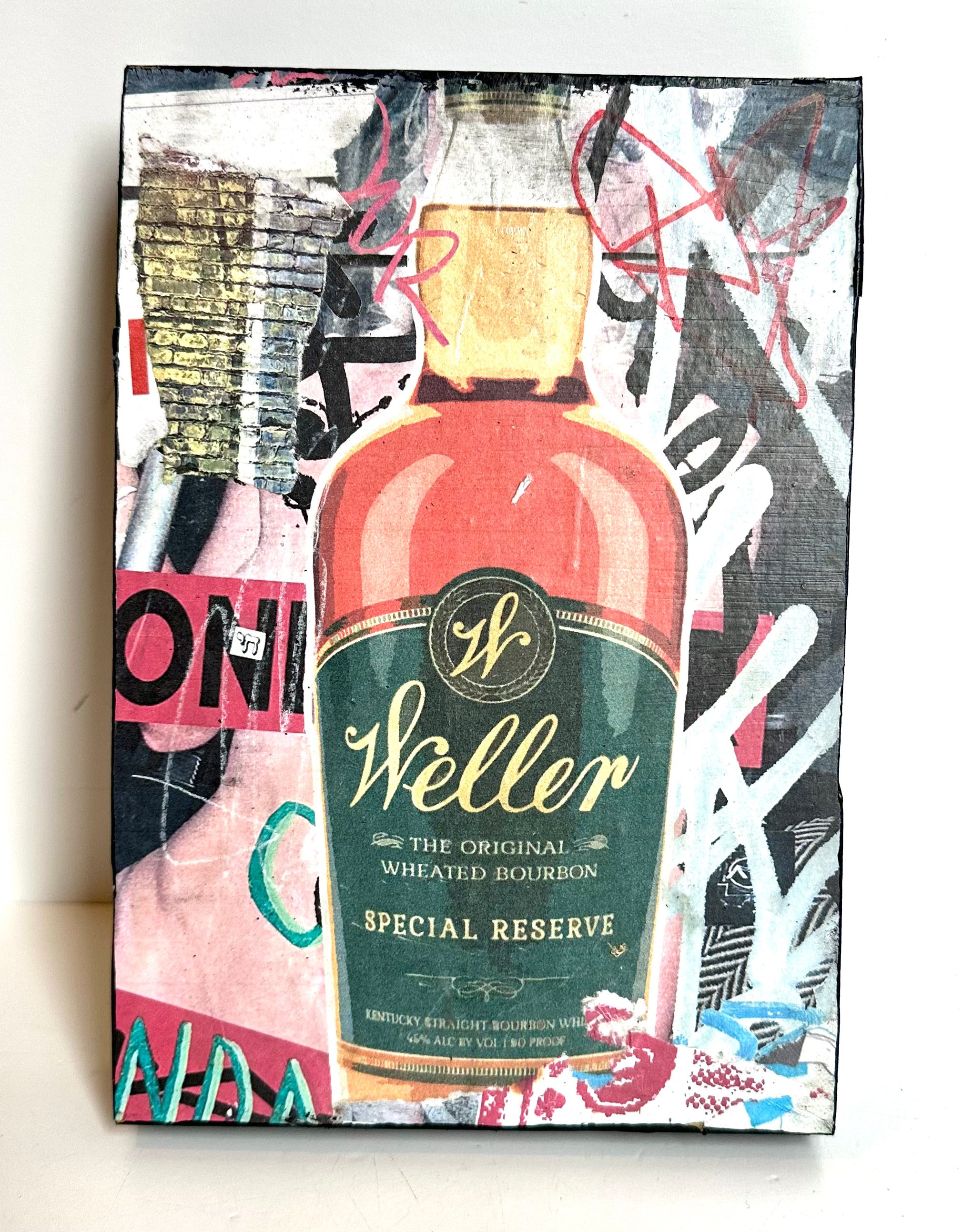 Named after the street art movement—each work of art includes found imagery, personal photography & drawings that are digitally manipulated, collaged and then wheat pasted on repurposed blocks of wood. Each piece is varnished, finished with black painted sides, signed & numbered on back.