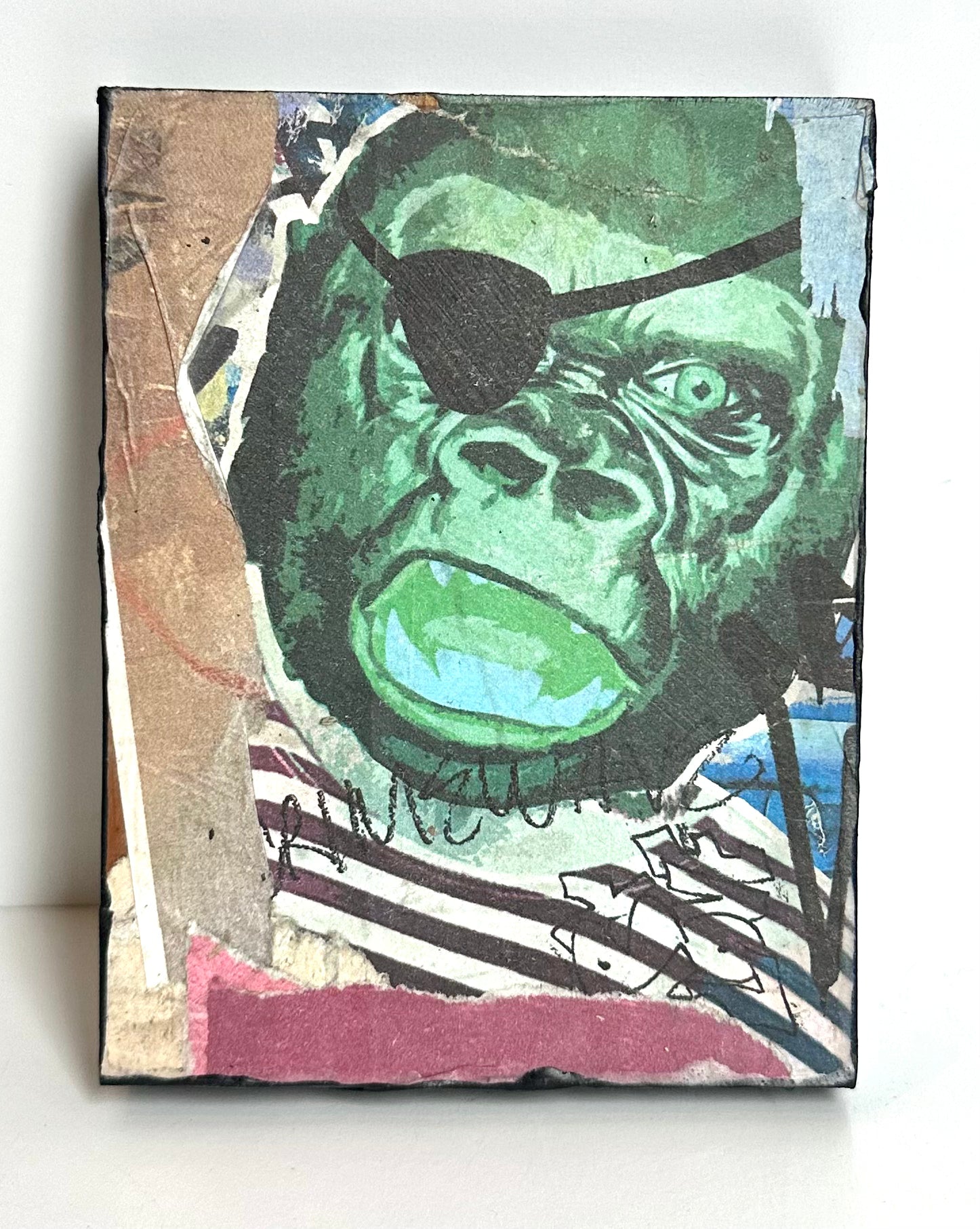 Named after the street art movement—each work of art includes found imagery, personal photography & drawings that are digitally manipulated, collaged and then wheat pasted on repurposed blocks of wood. Each piece is varnished, finished with black painted sides, signed & numbered on back.