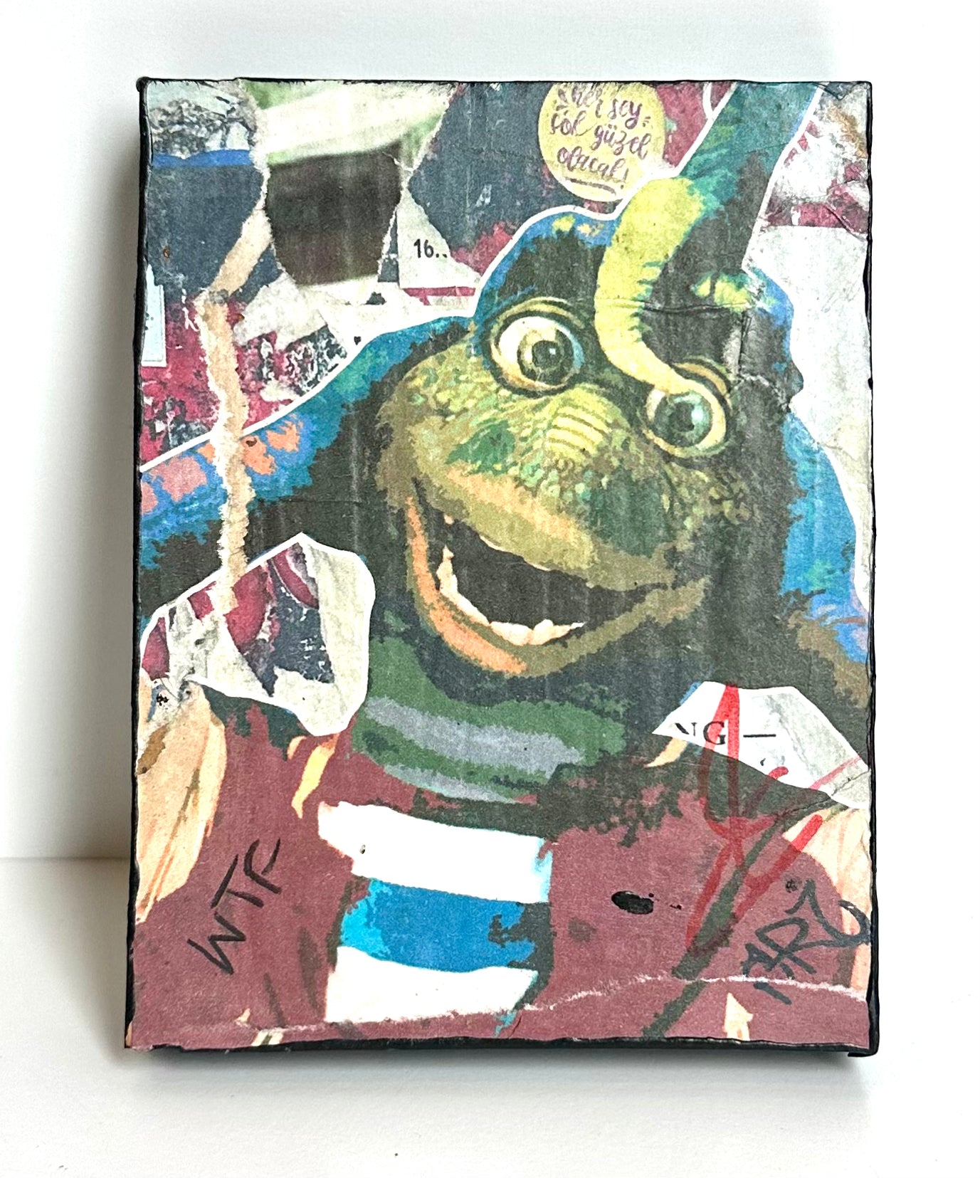 Named after the street art movement—each work of art includes found imagery, personal photography & drawings that are digitally manipulated, collaged and then wheat pasted on repurposed blocks of wood. Each piece is varnished, finished with black painted sides, signed & numbered on back.