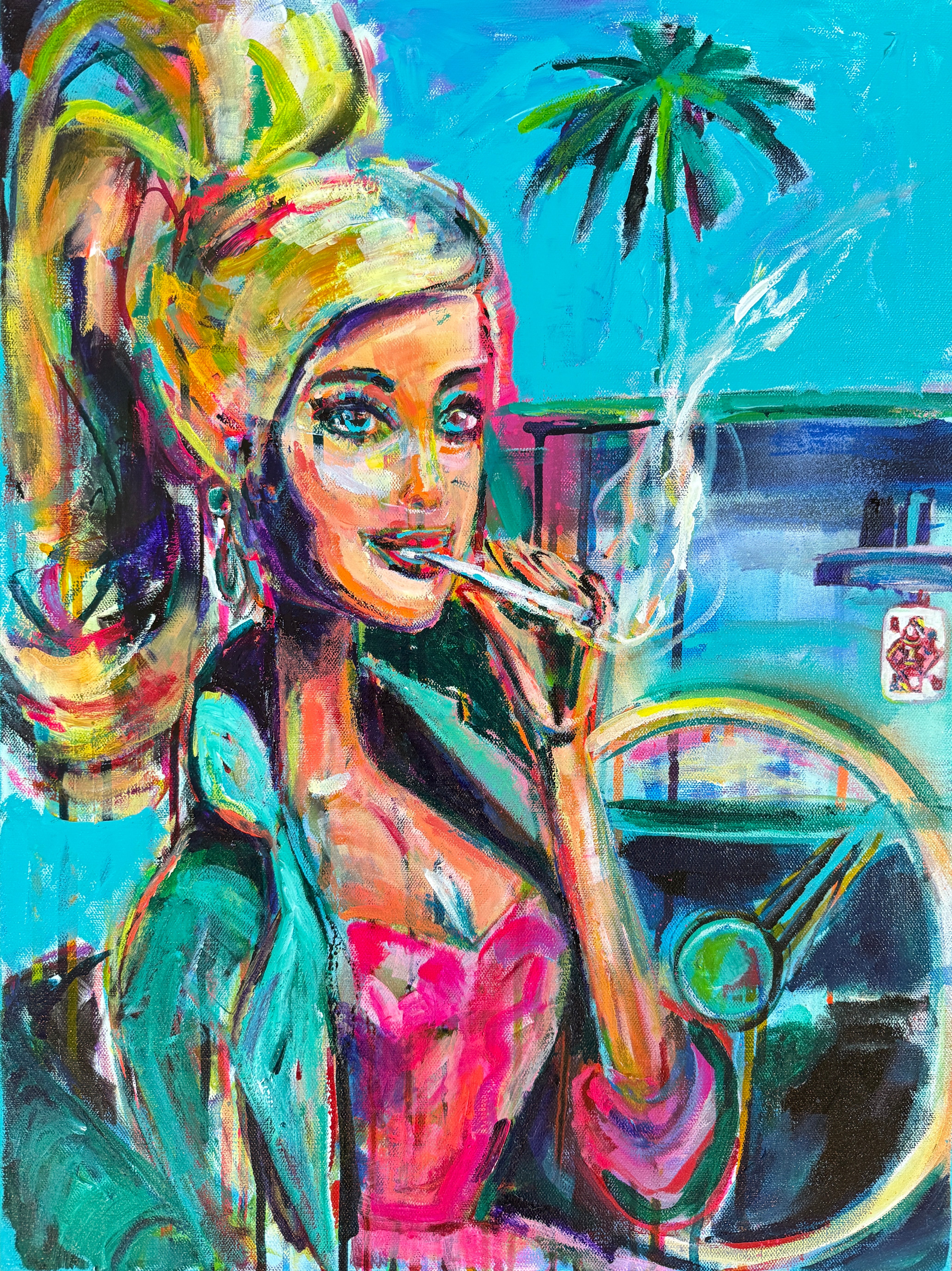 Queen Bee; acrylic paint, spray paint, pastels on canvas; by local artist Lindsey Taylor.