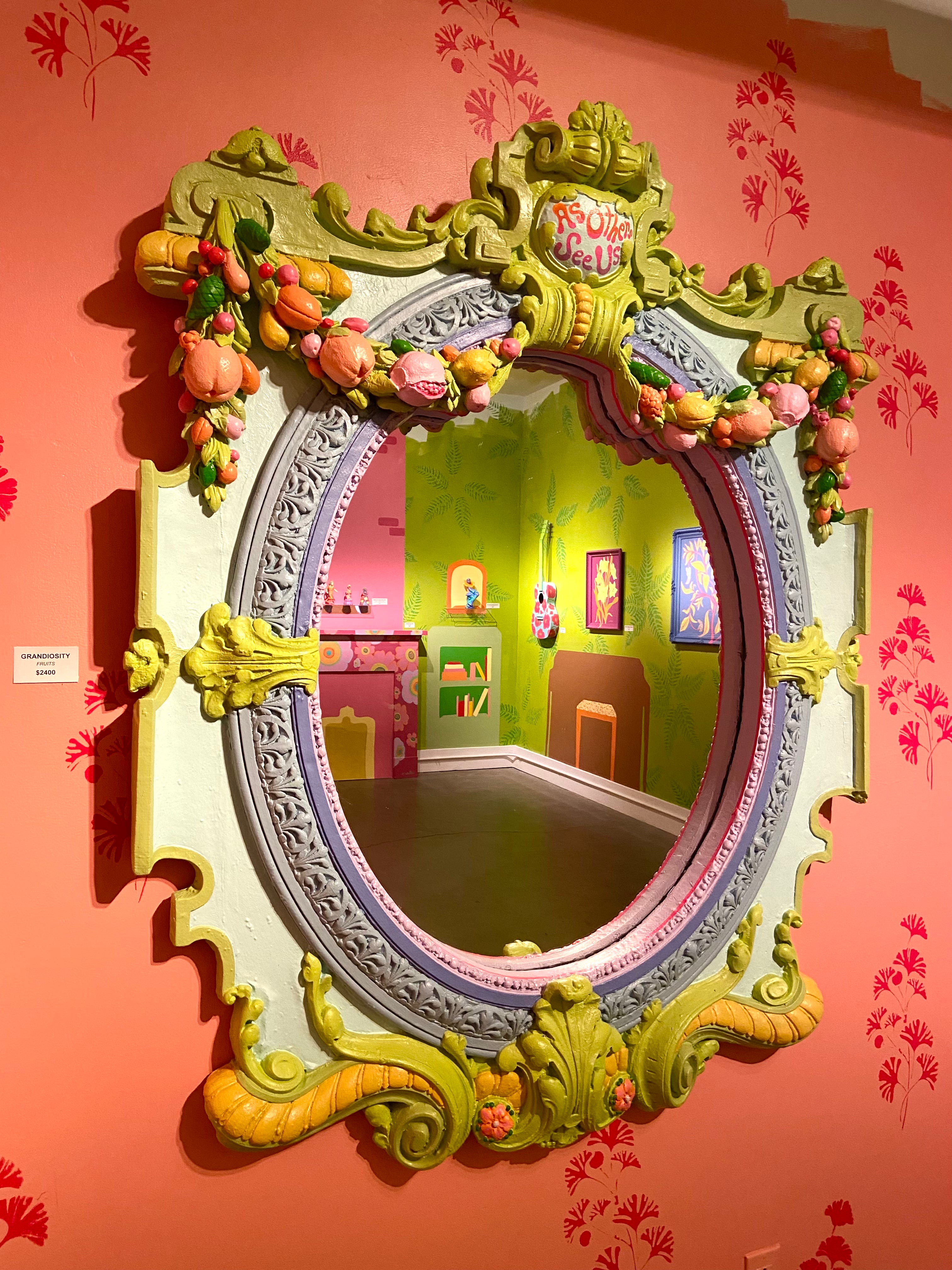 Grandiosity, found mirror, spray paint, exterior latex, paint pens, 44" x 54" x 6", by local Louisville mural artist, Liz Richter!