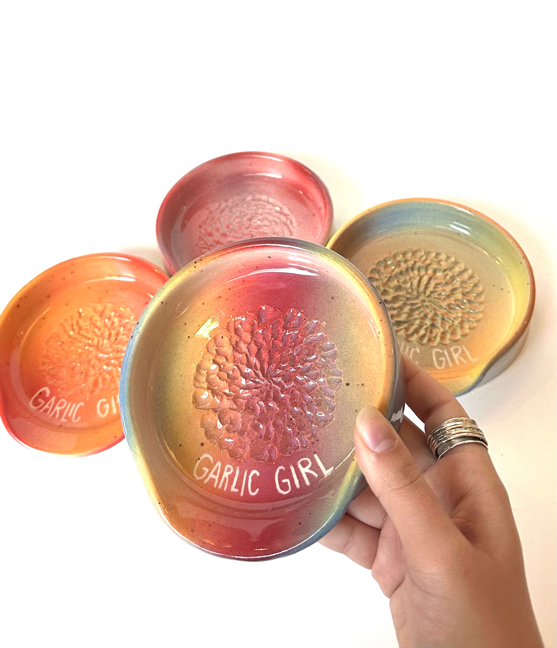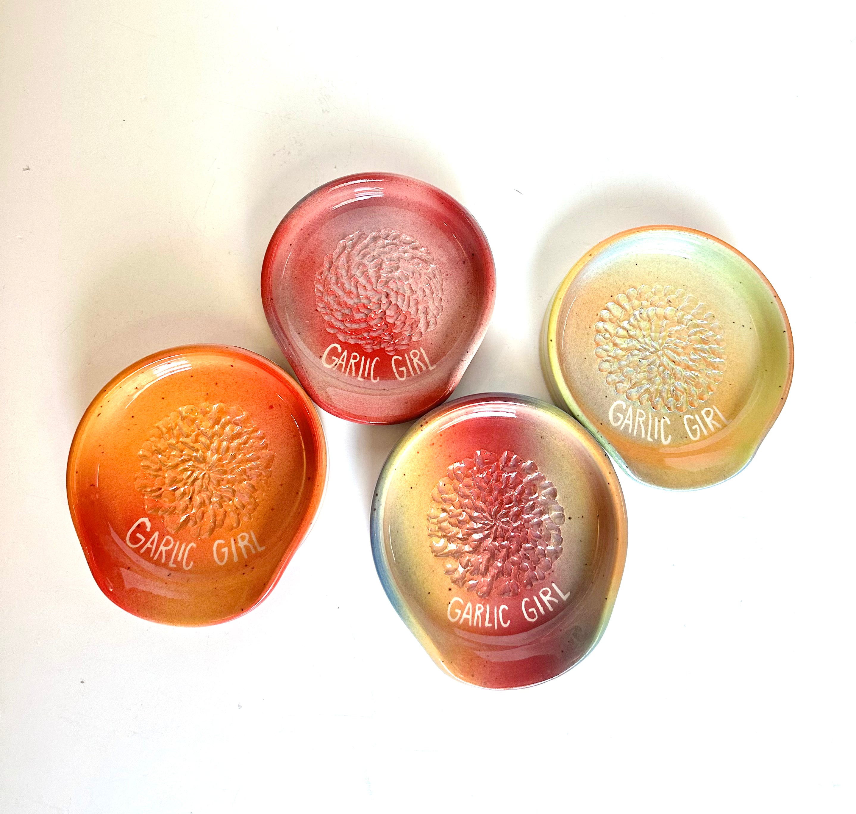 Ceramic "Garlic Girl" graters, made by local artist Loopy Dough