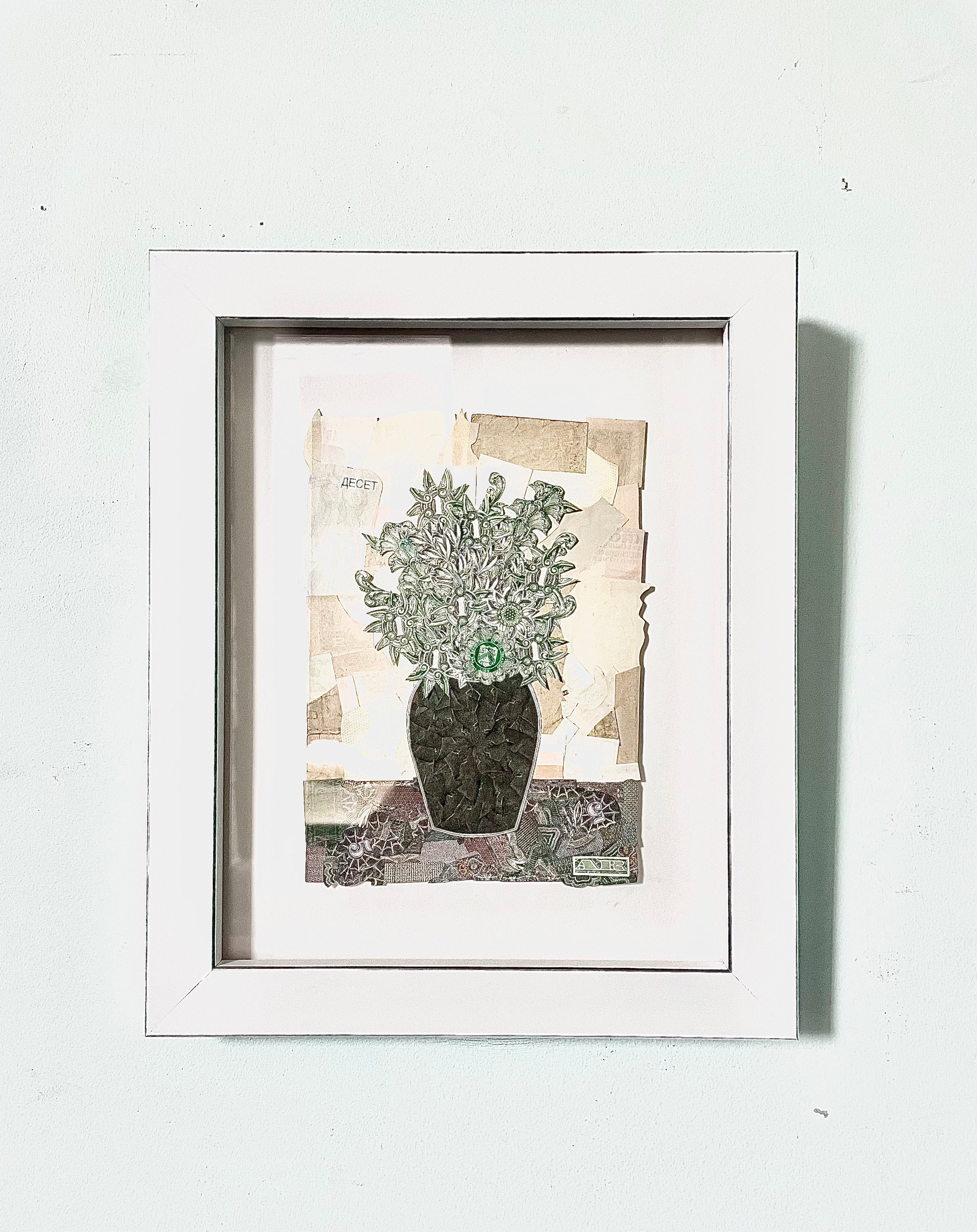 Flowers 16" original artwork by Brochevski. U.S. currency on Archival Paper, twice signed and framed.