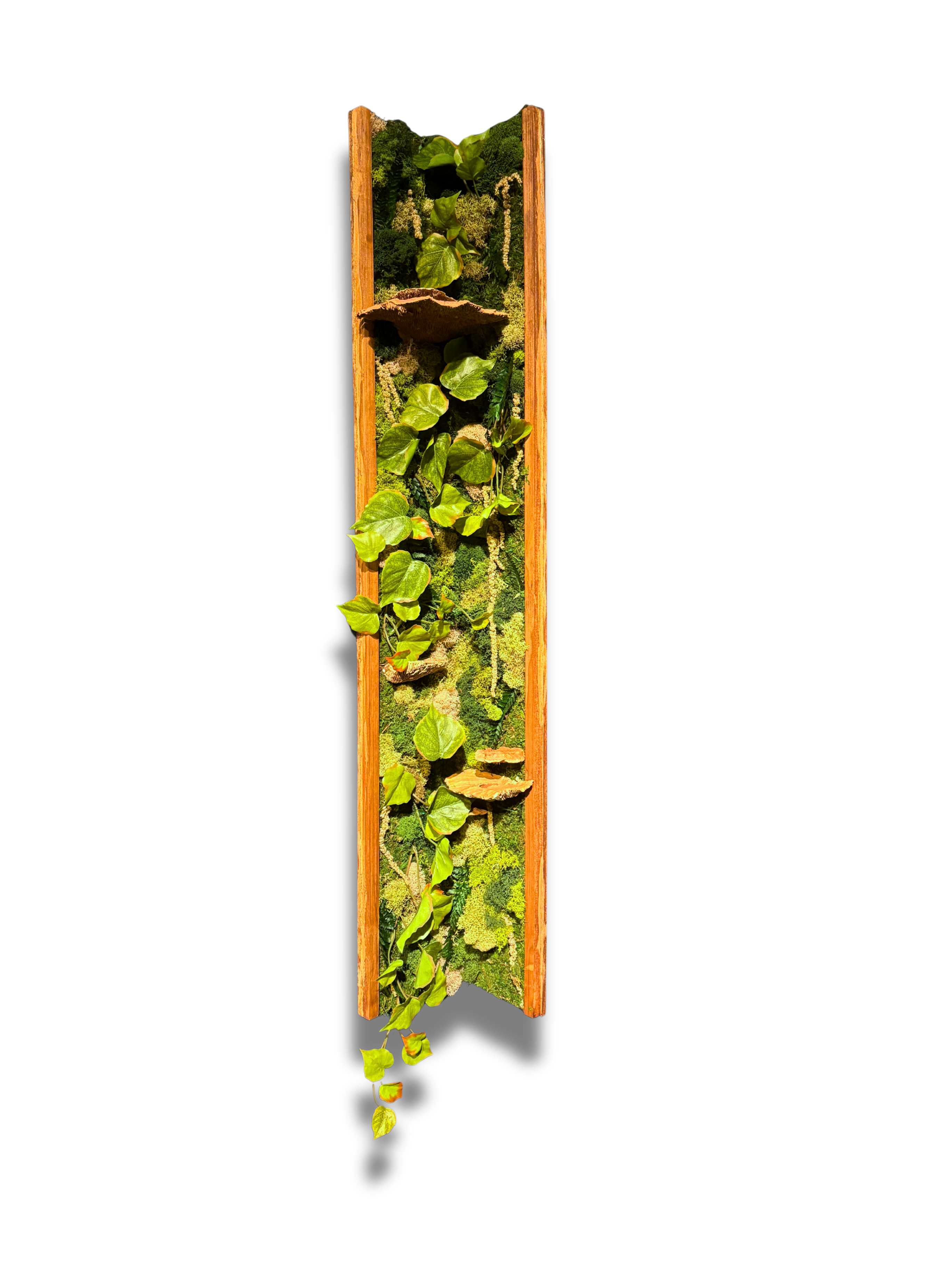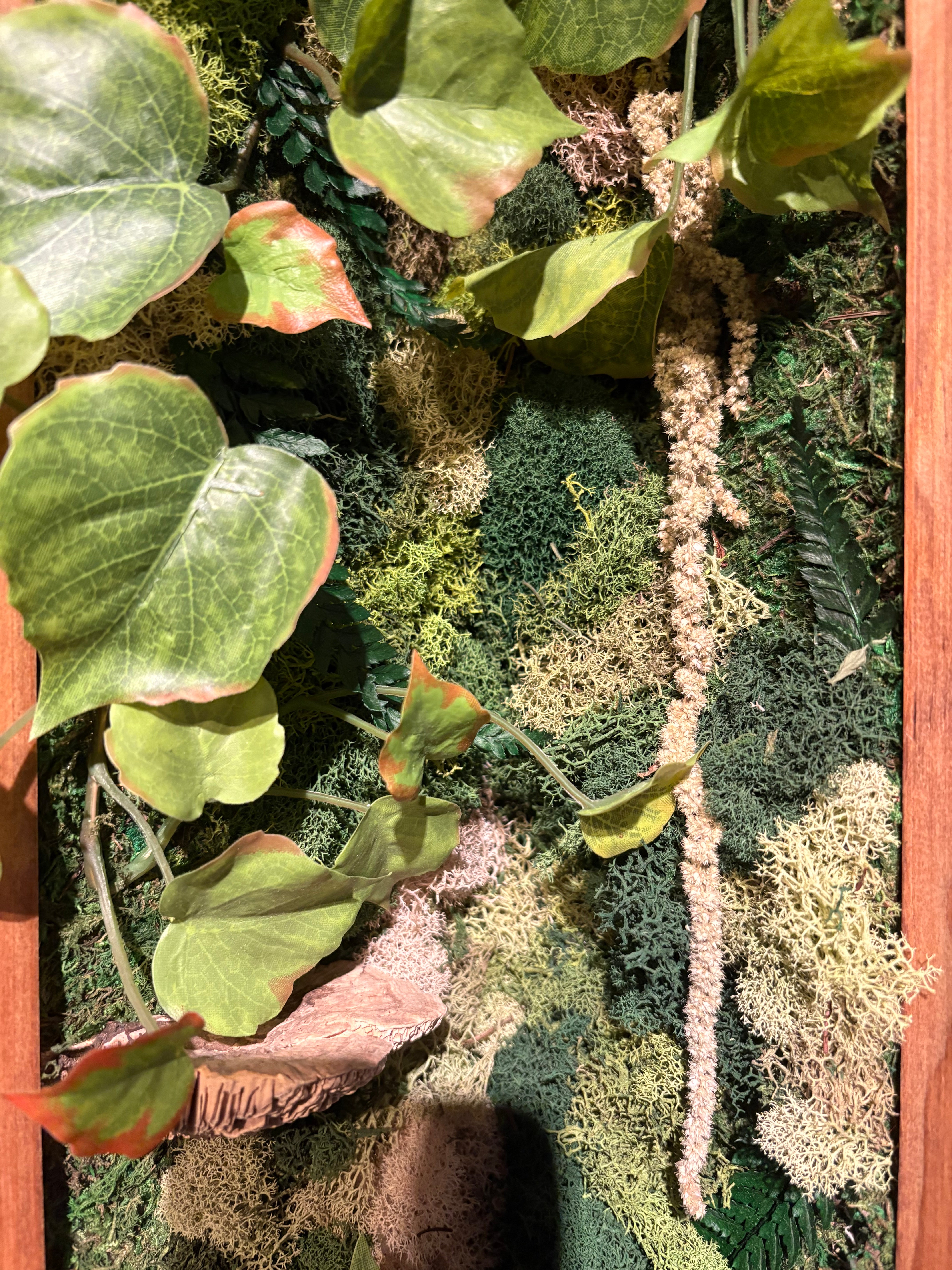 mixed media piece incorporating dried botanicals on wood, by local artist Imani Burns