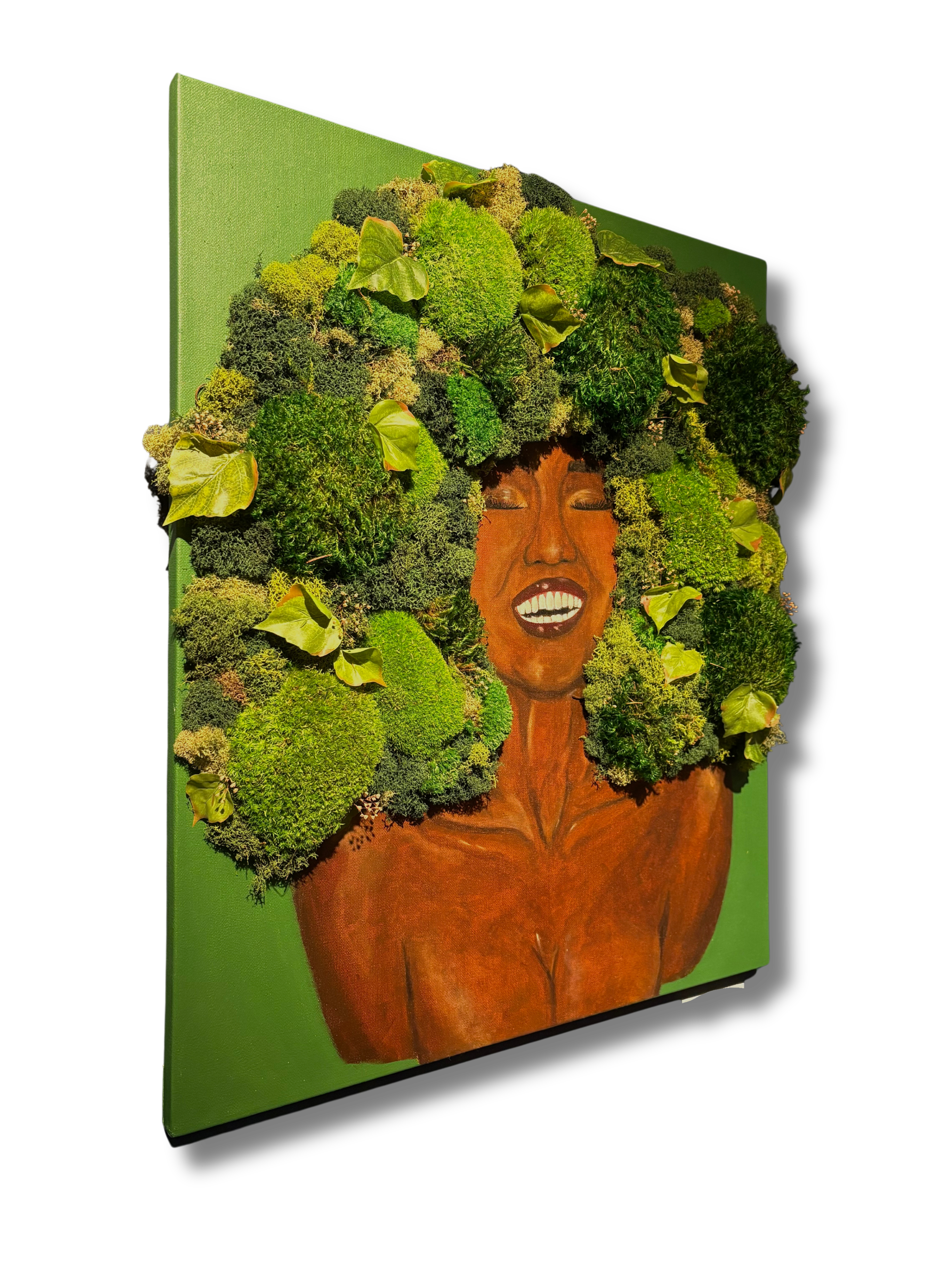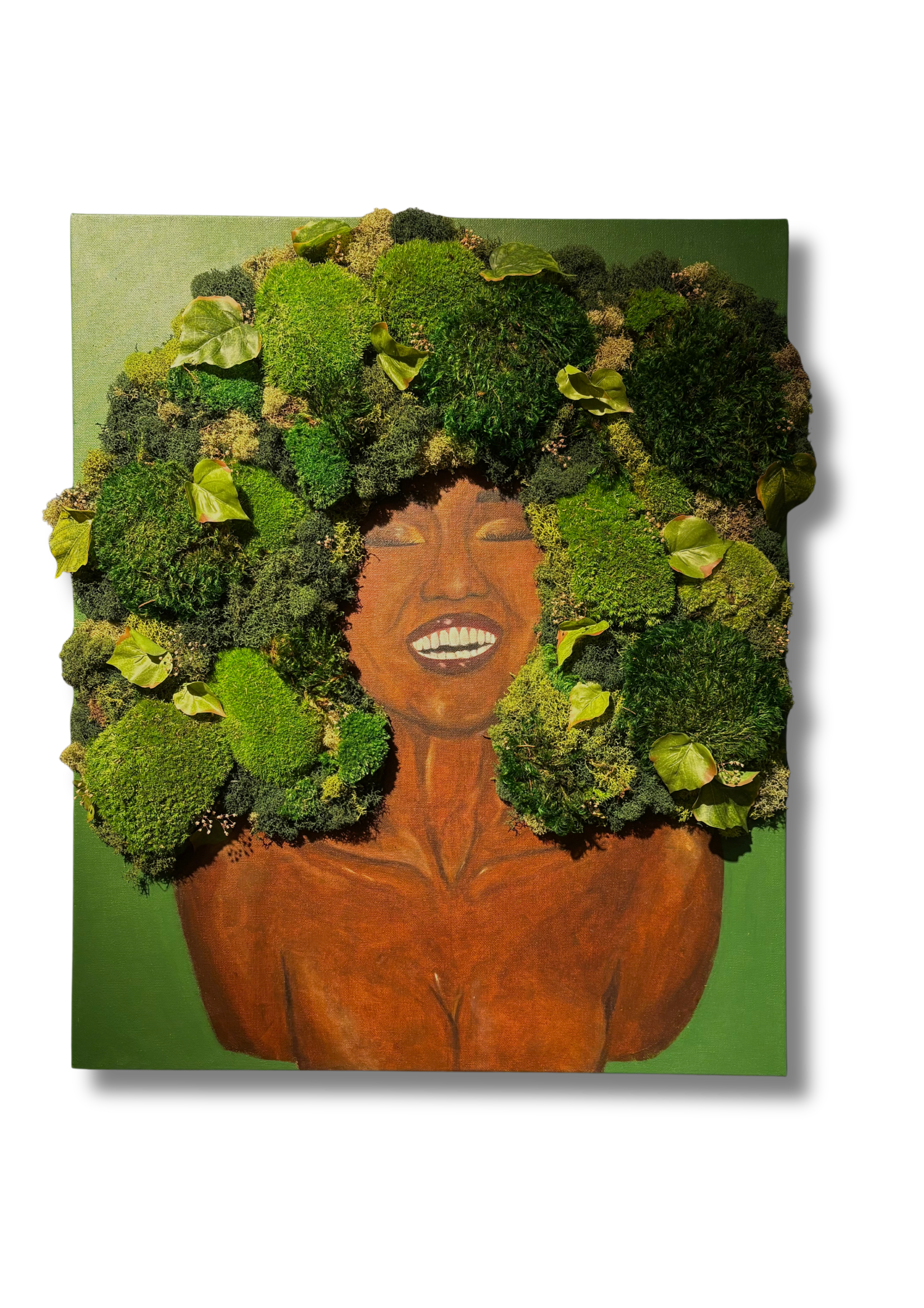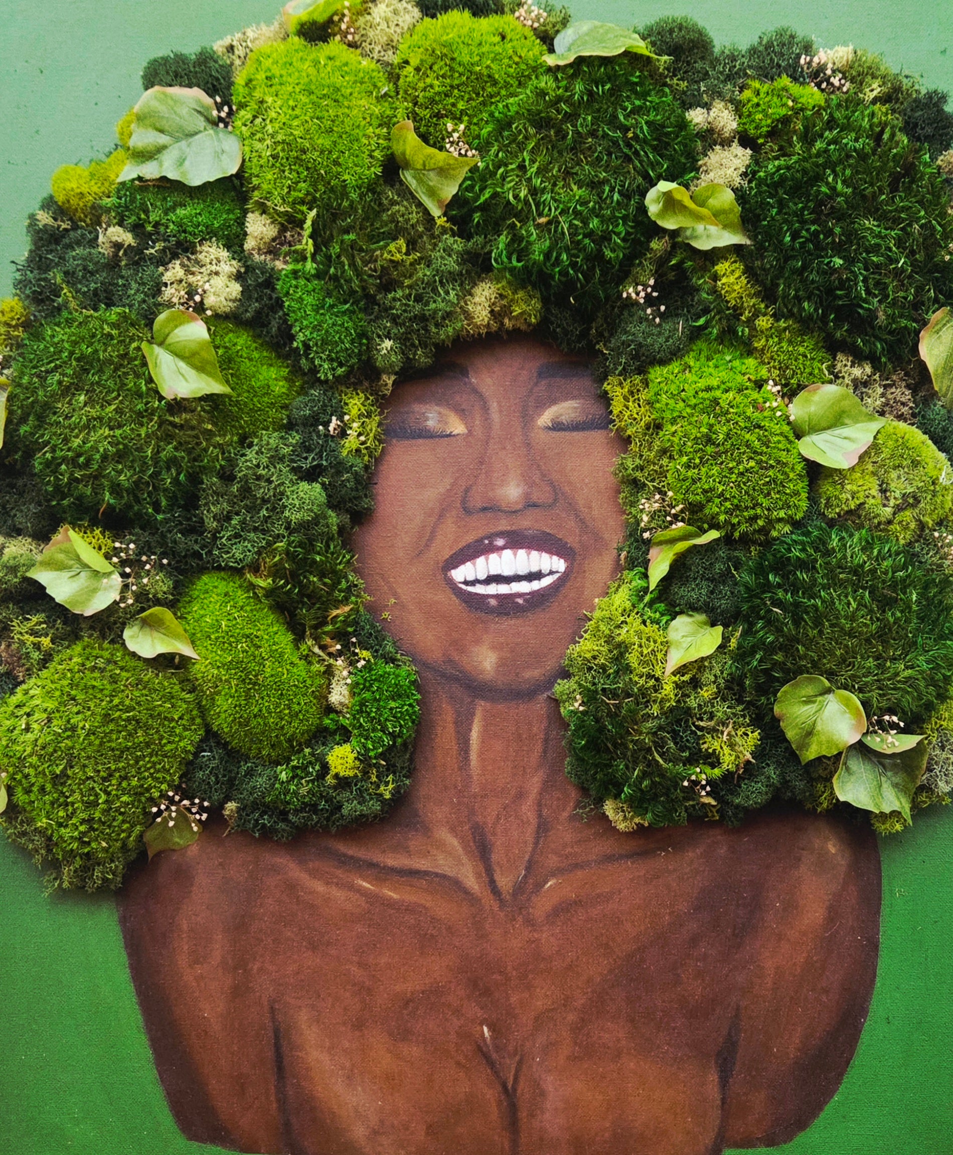 mixed media piece incorporating paint and dried botanicals on canvas, by local artist Imani Burns
