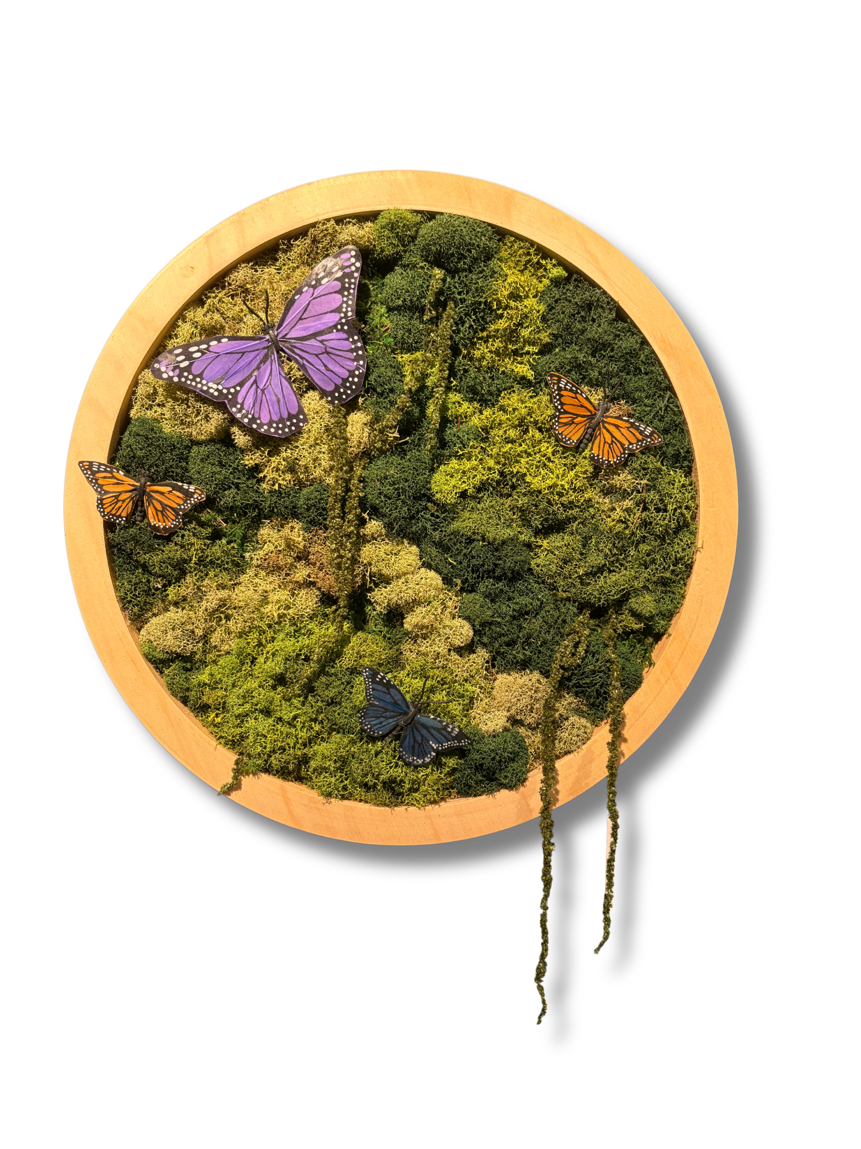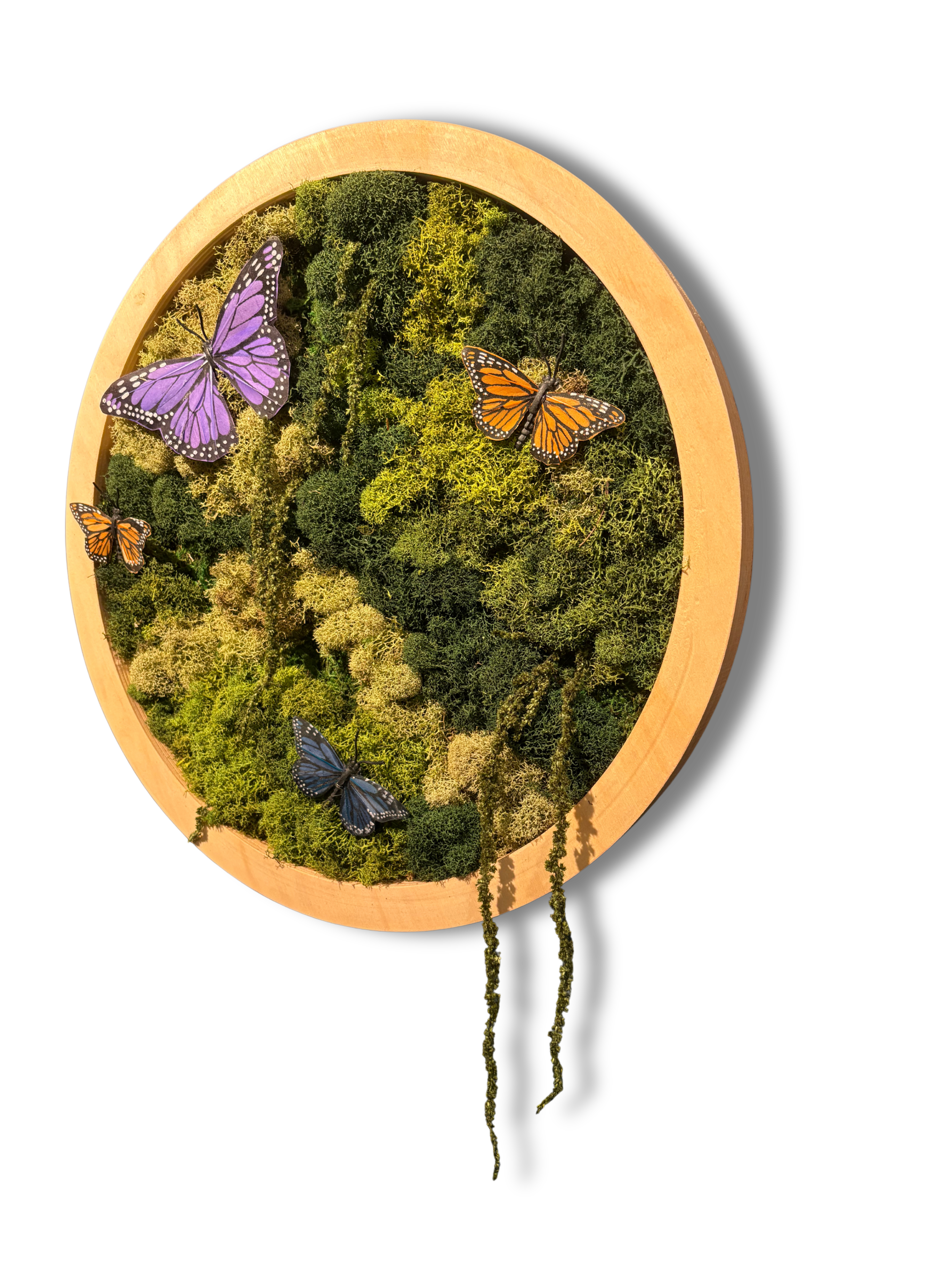 mixed media piece incorporating dried botanicals on wood, by local artist Imani Burns