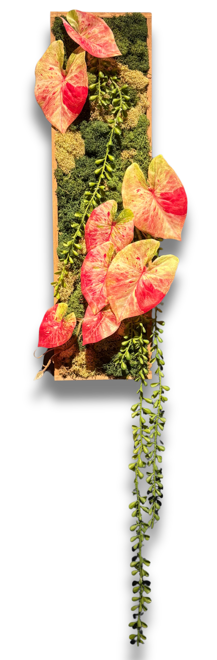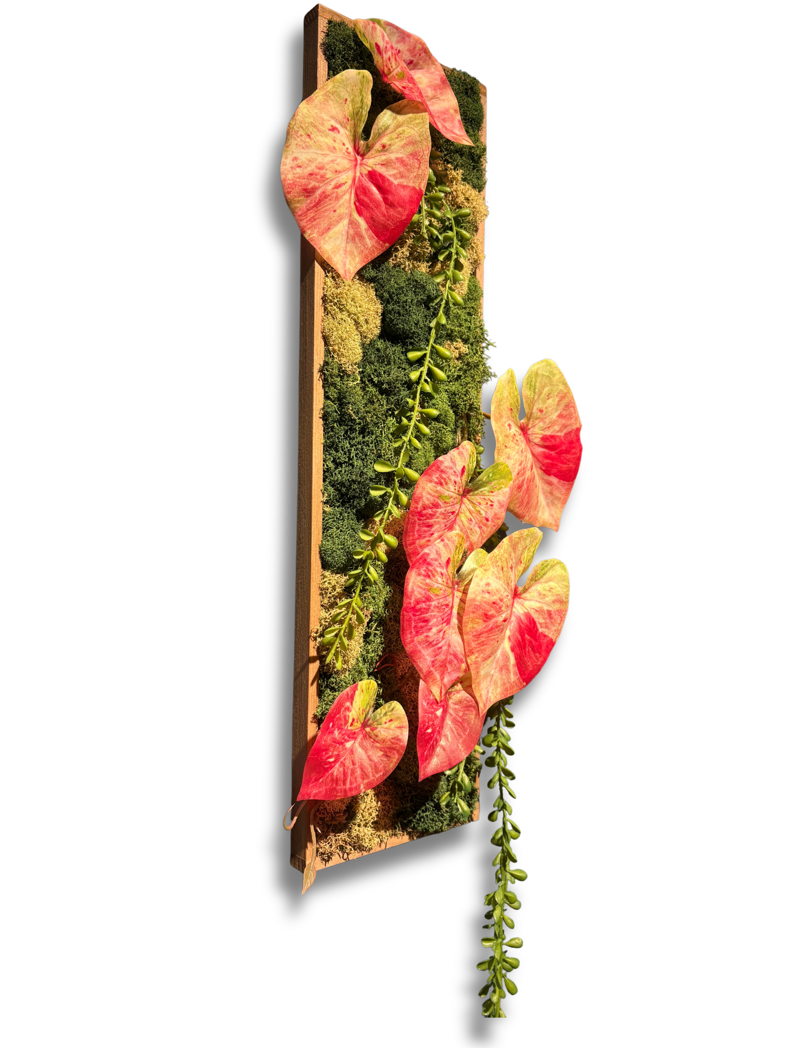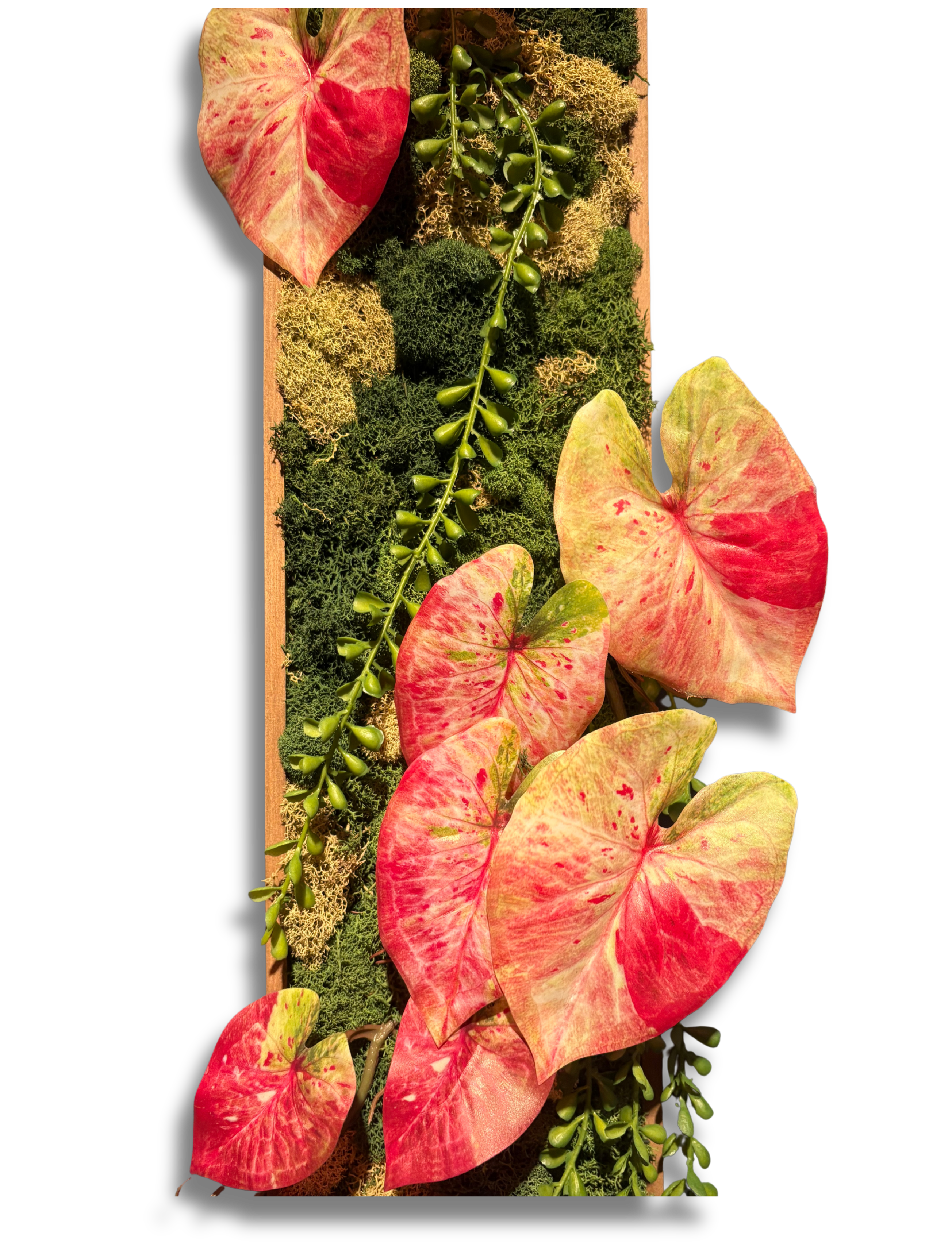 mixed media piece incorporating dried botanicals on wood, by local artist Imani Burns