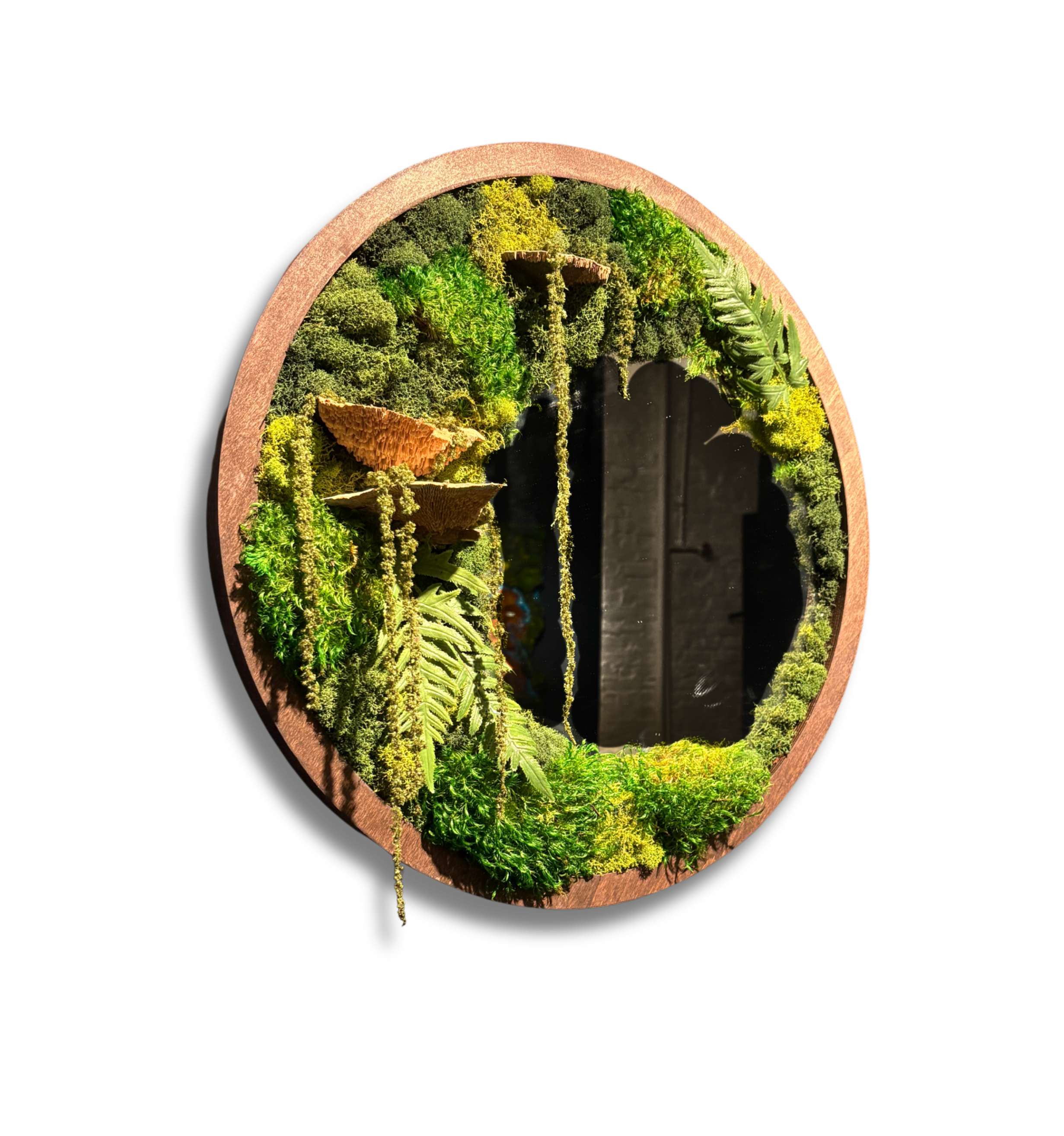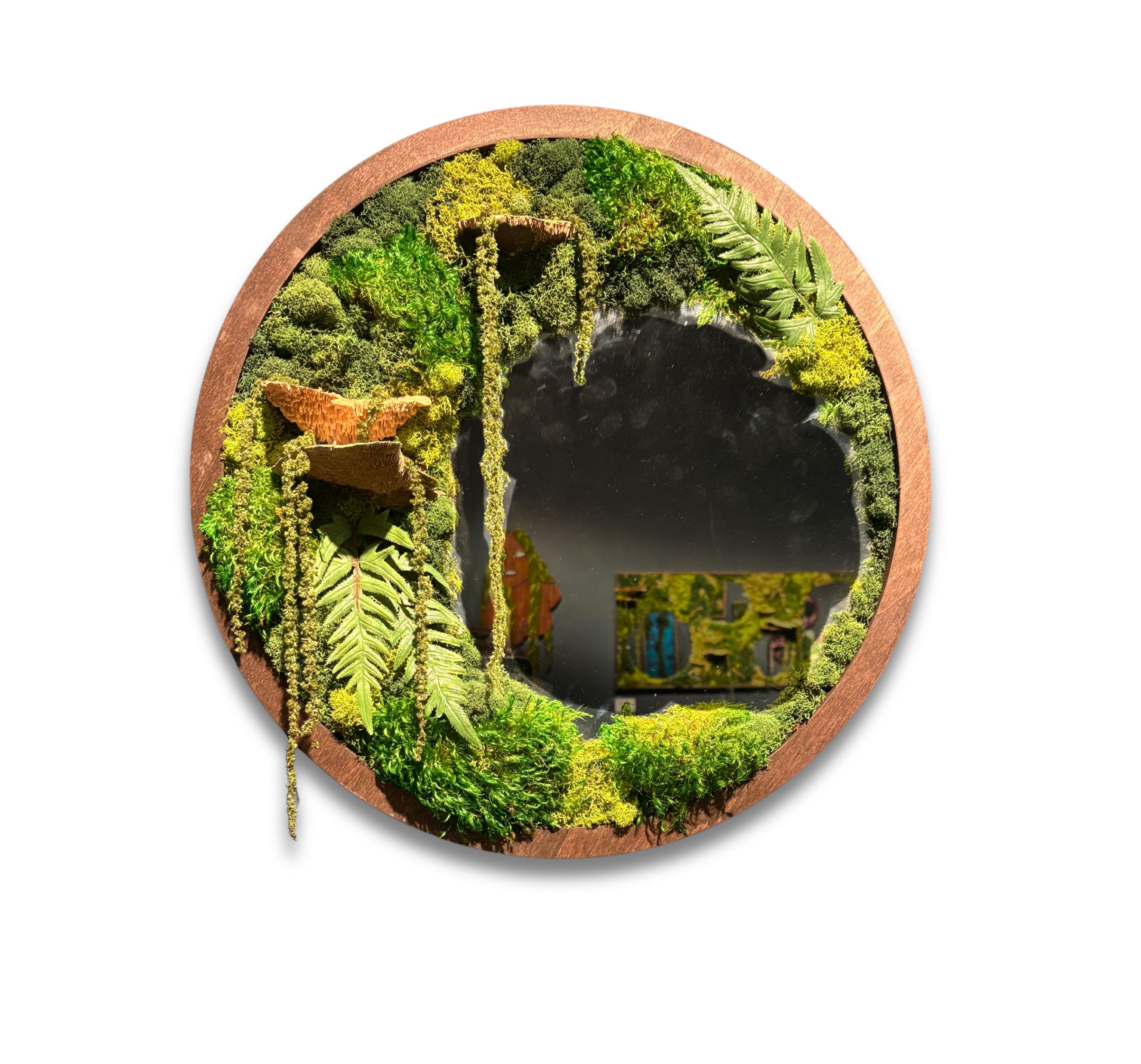 mixed media piece incorporating dried botanicals on a mirror, by local artist Imani Burns