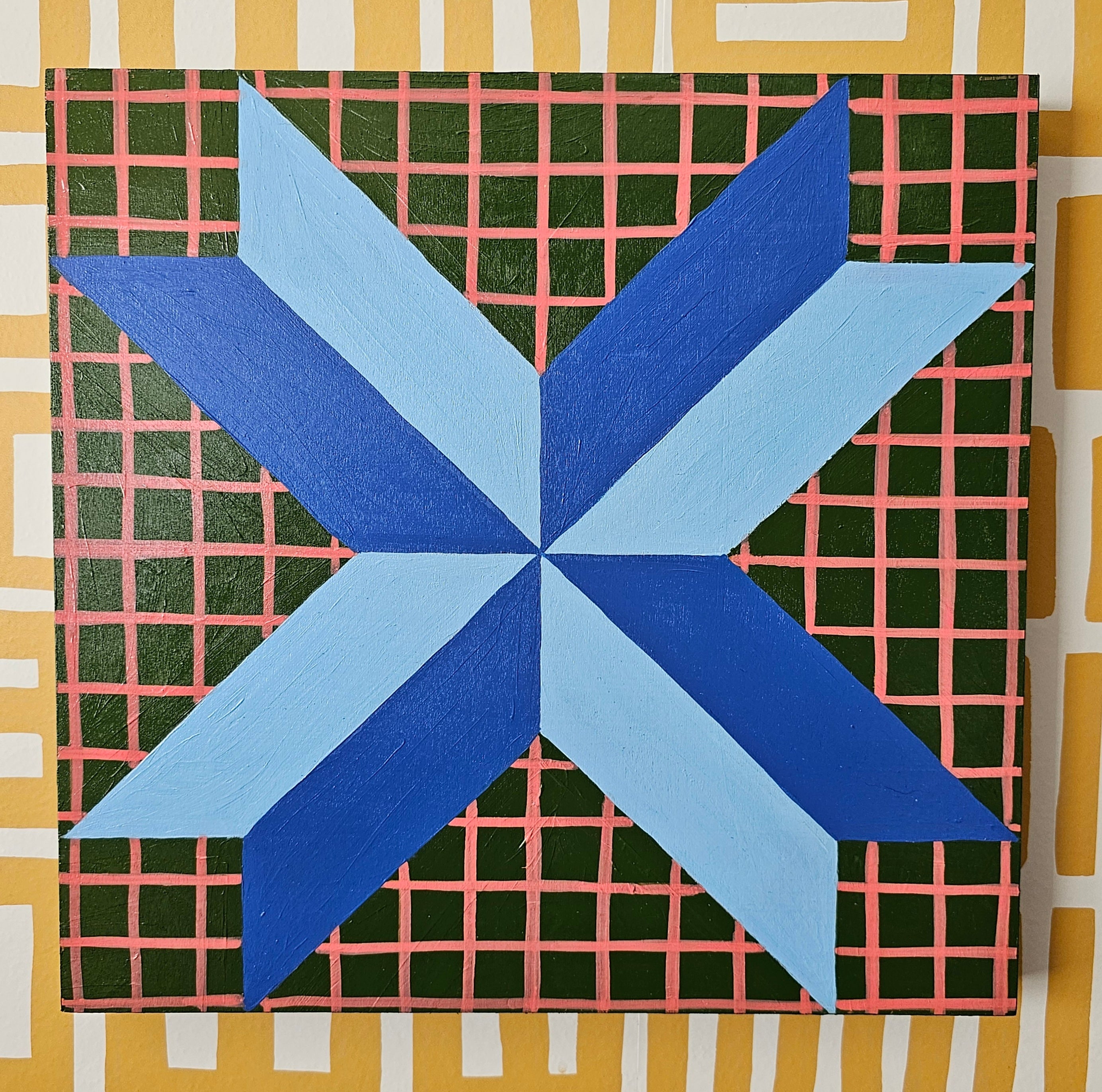 Eightpoint Star Quilt Block; acrylic painting on wood, by Lauren Hillerich