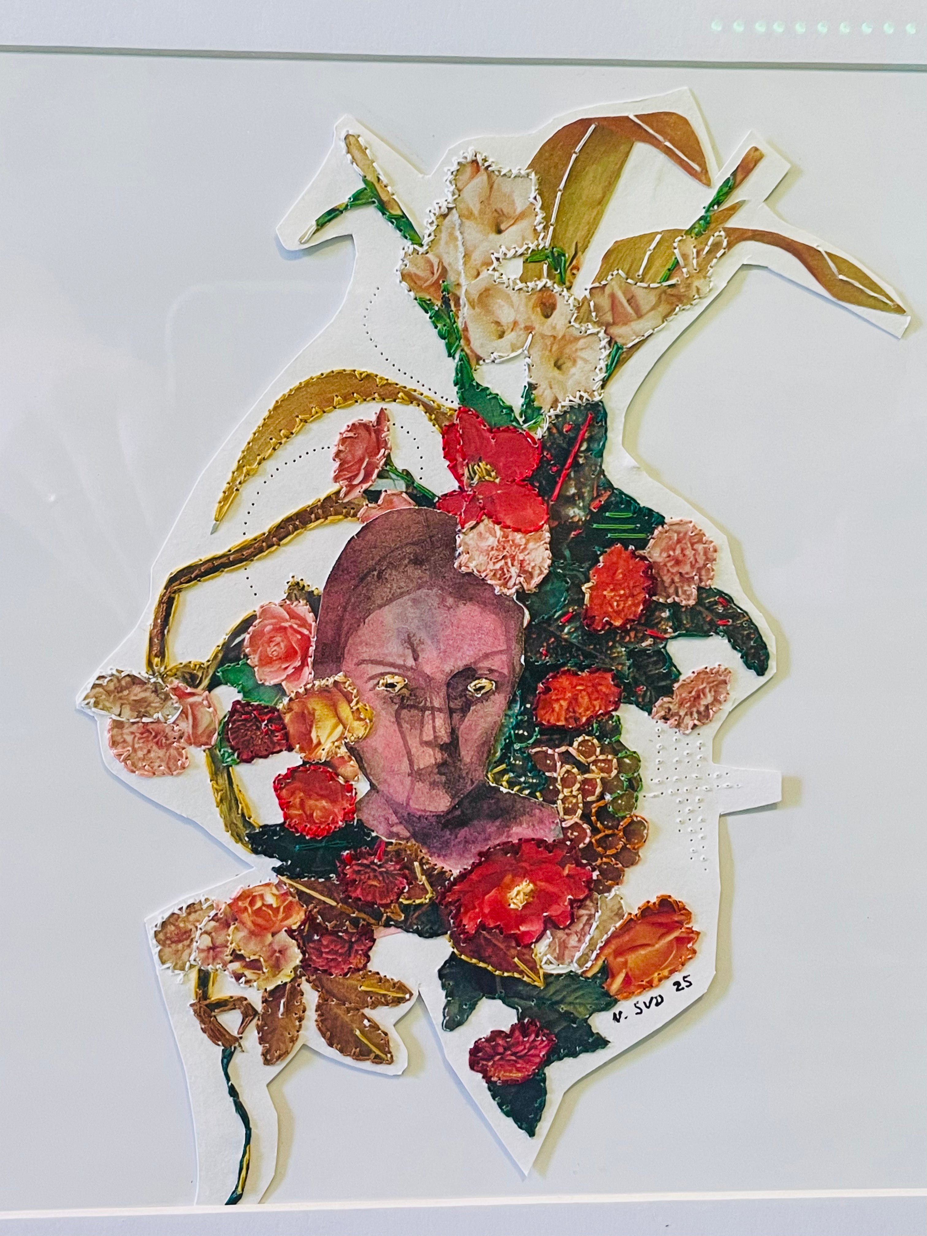 Natasha Sud - Hand Stitched Original Collage - Tiger Eyes