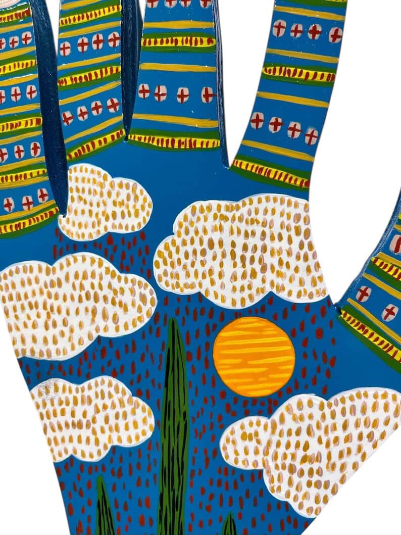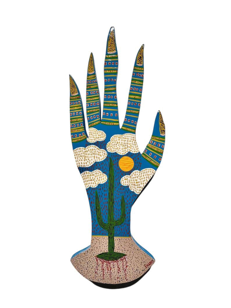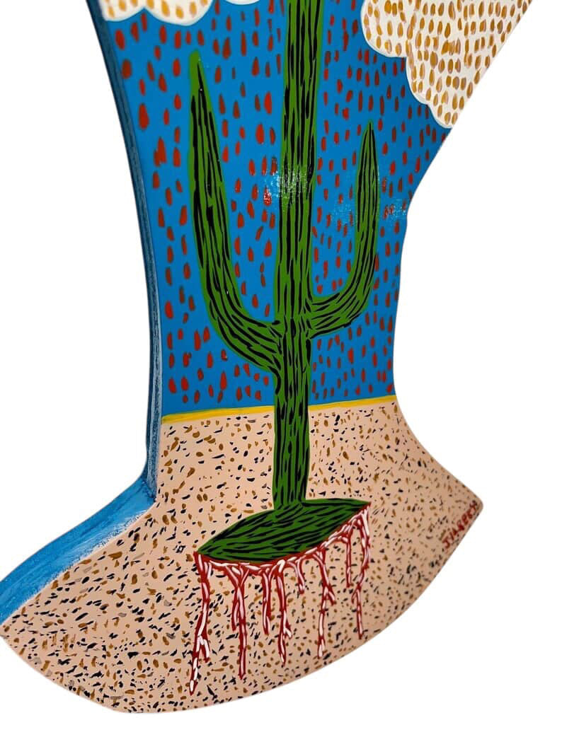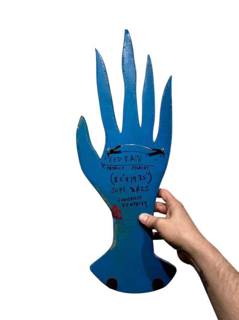 Acrylic and spray paint on 8.5" x 19.75" plywood by Louisville folk artist Patrick Jilbert.
