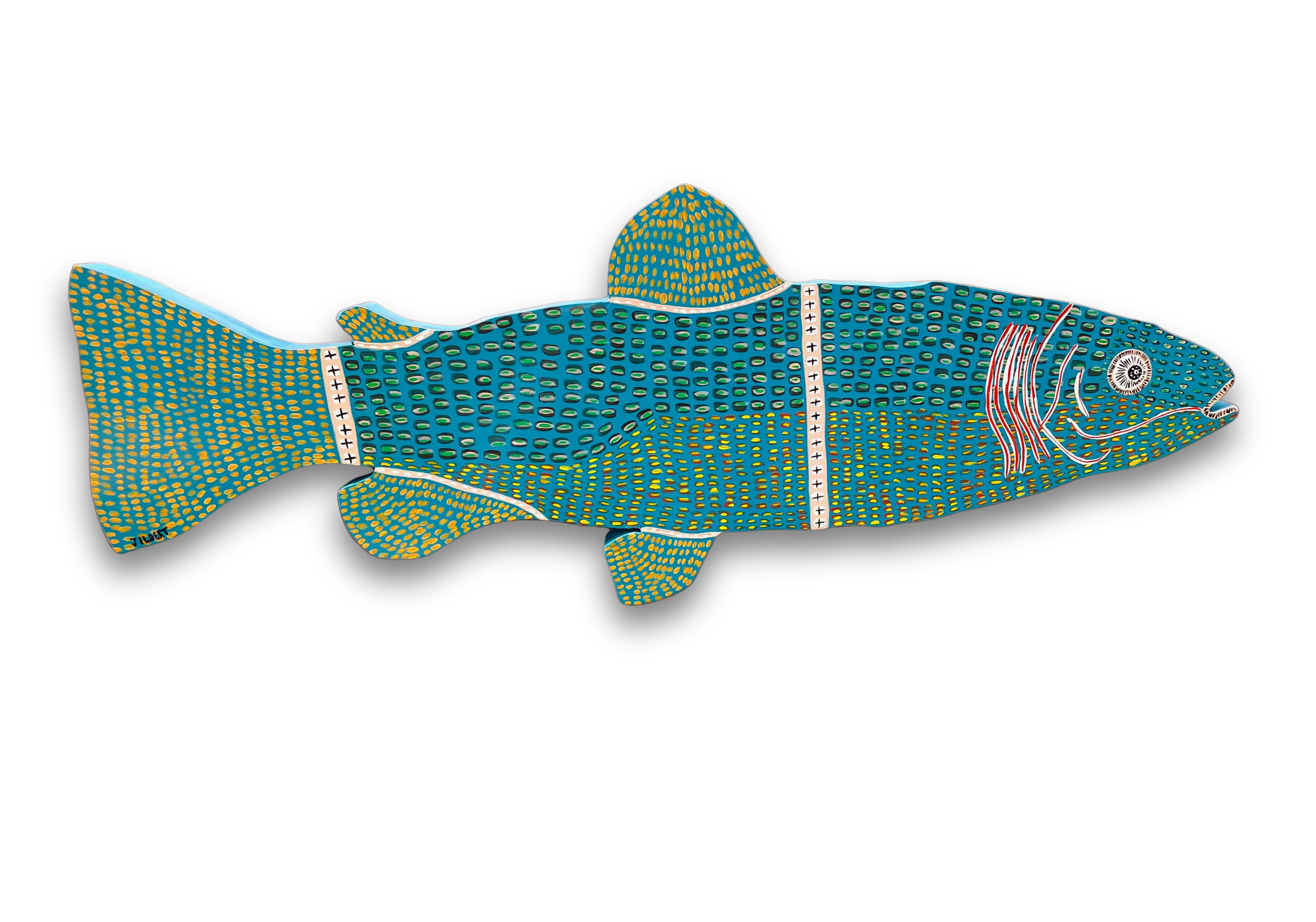 Acrylic and spray paint on 9.25" x 25.25" handcut wood panel by Louisville folk artist Patrick Jilbert.