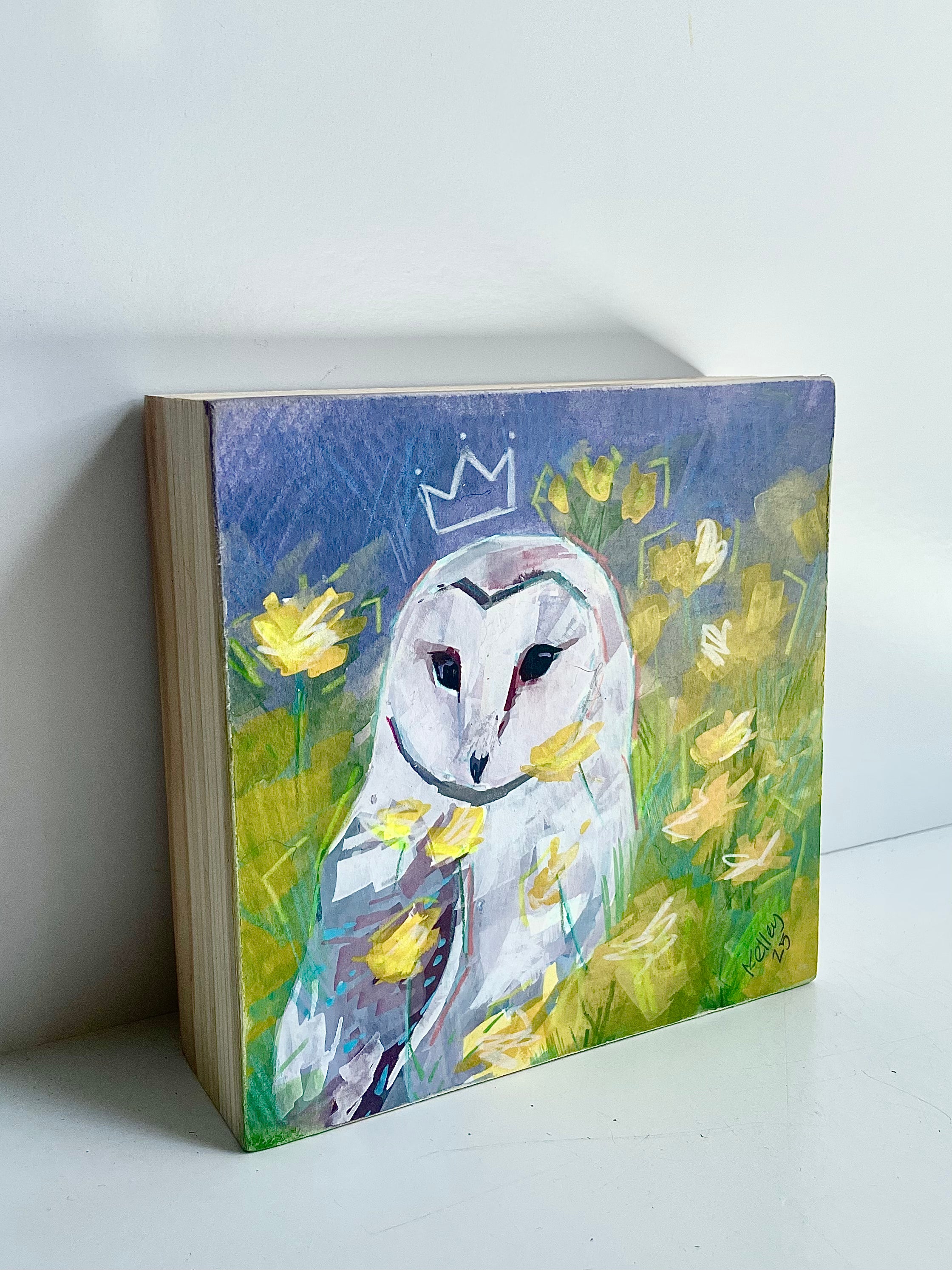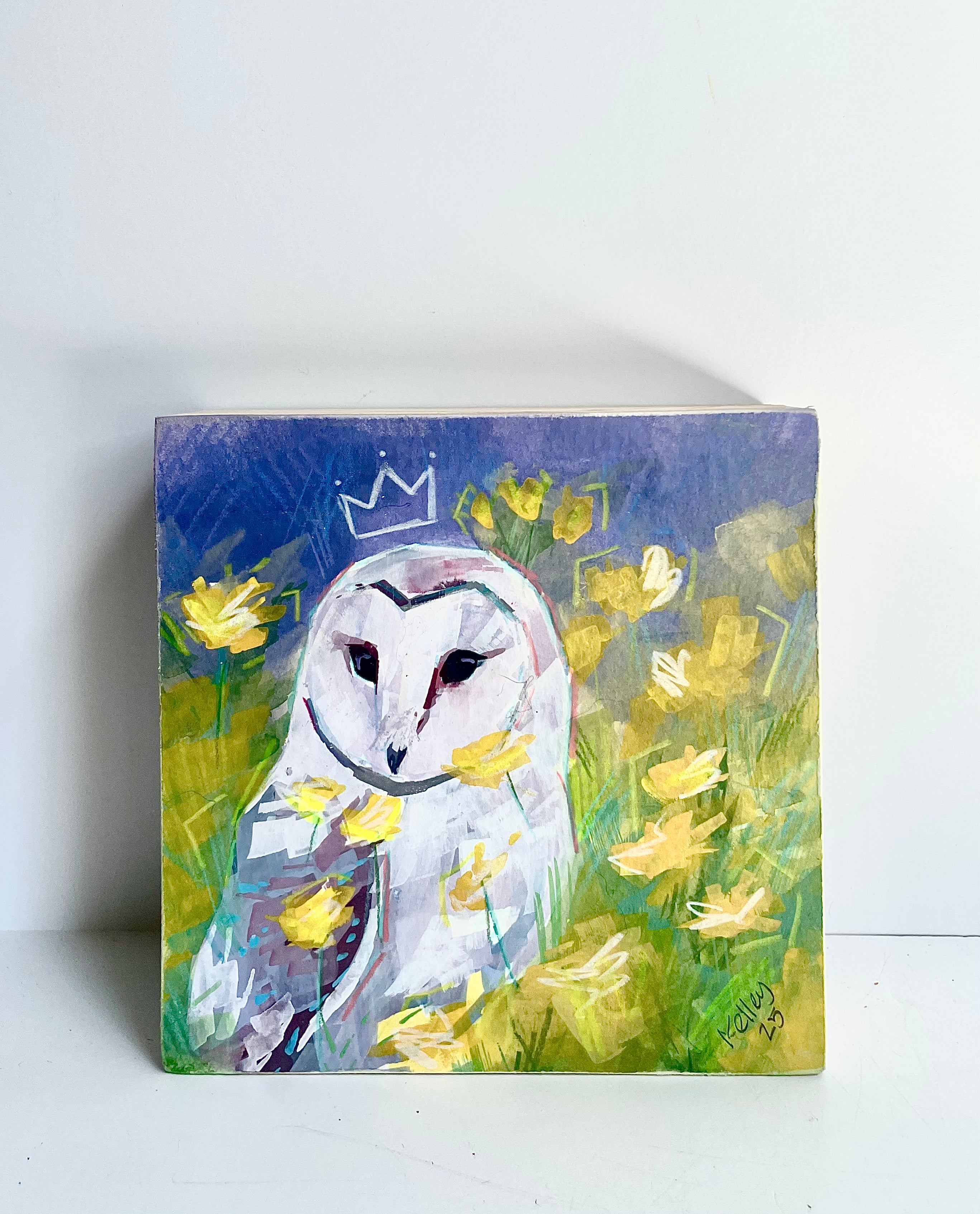 Hand-painted original gouache study on a 5" x 5" wood panel, by local artist Kelley Luckett.