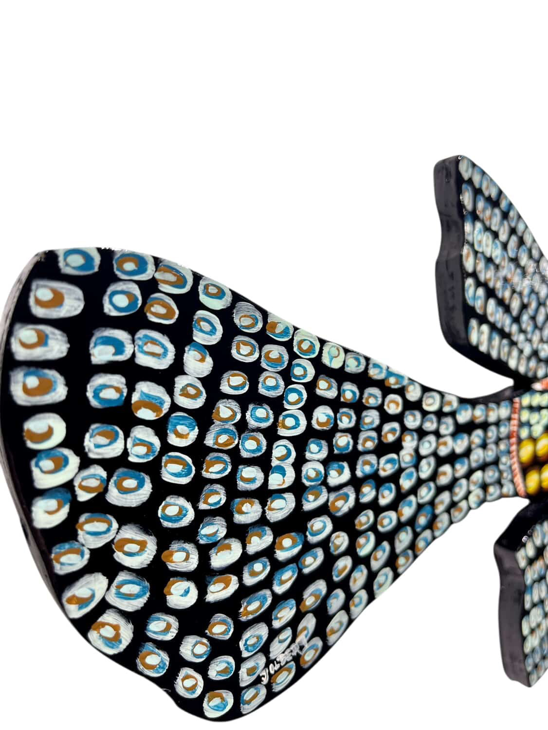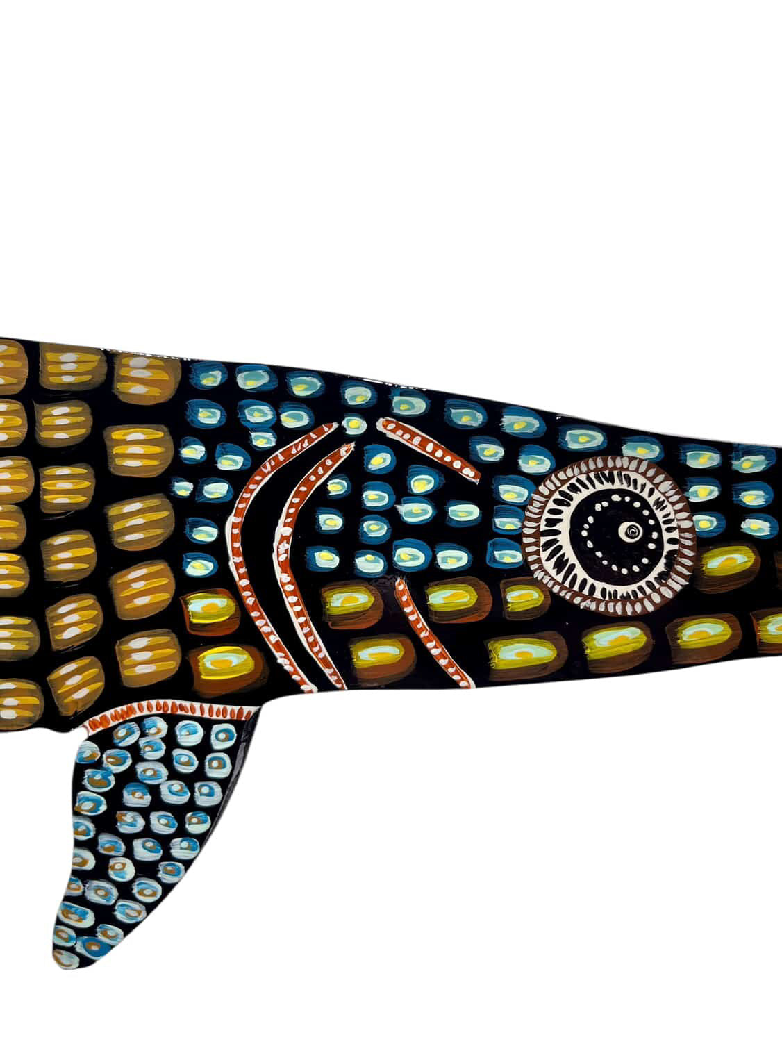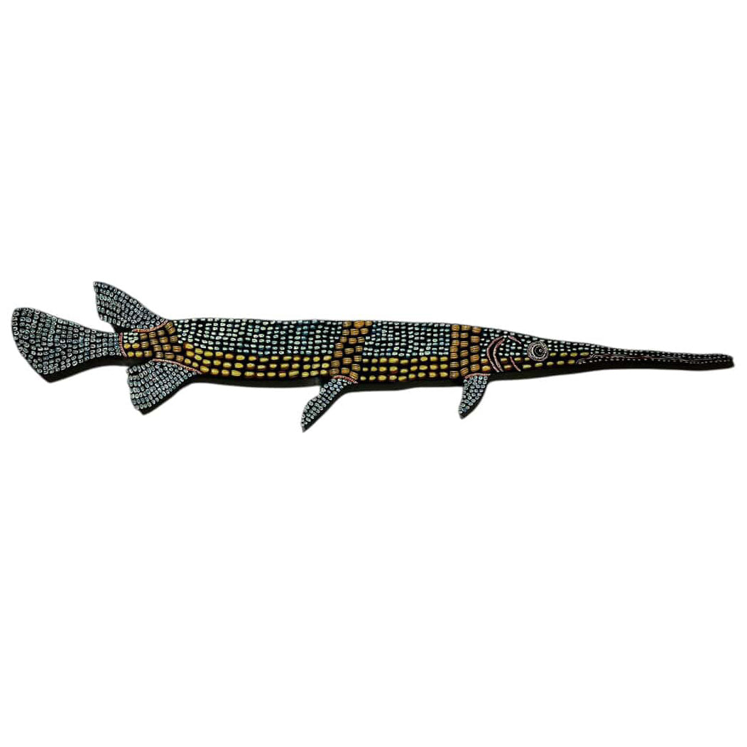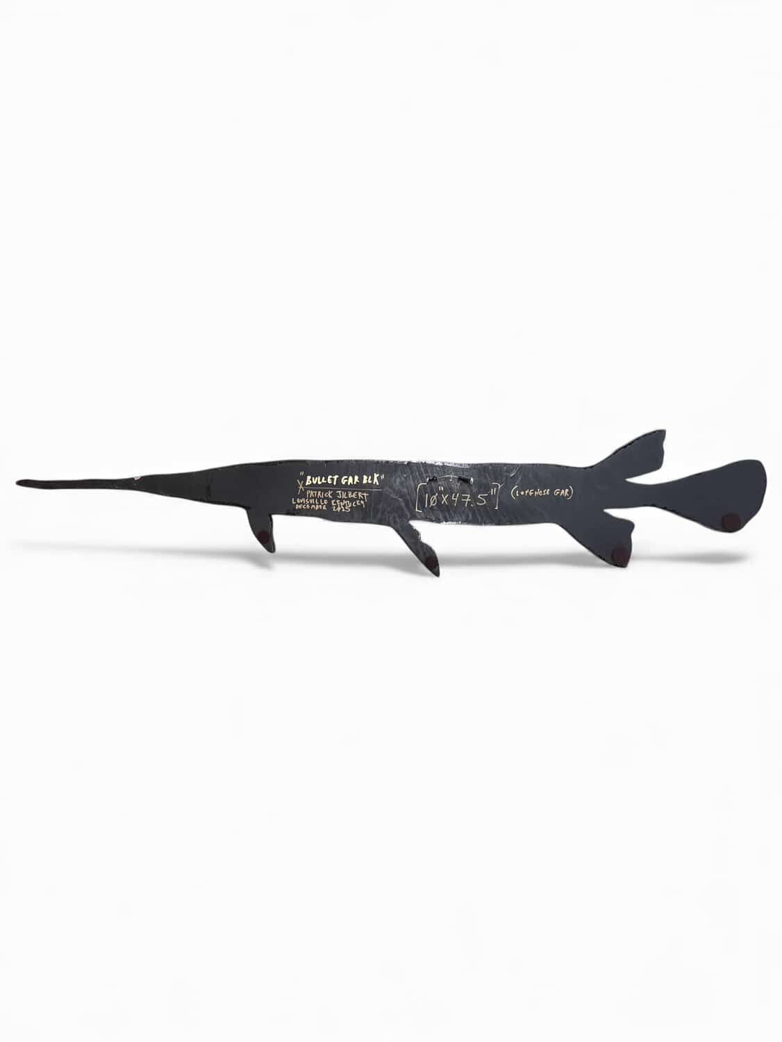 Acrylic and spray paint on 10" x 47.5" plywood by Louisville folk artist Patrick Jilbert.