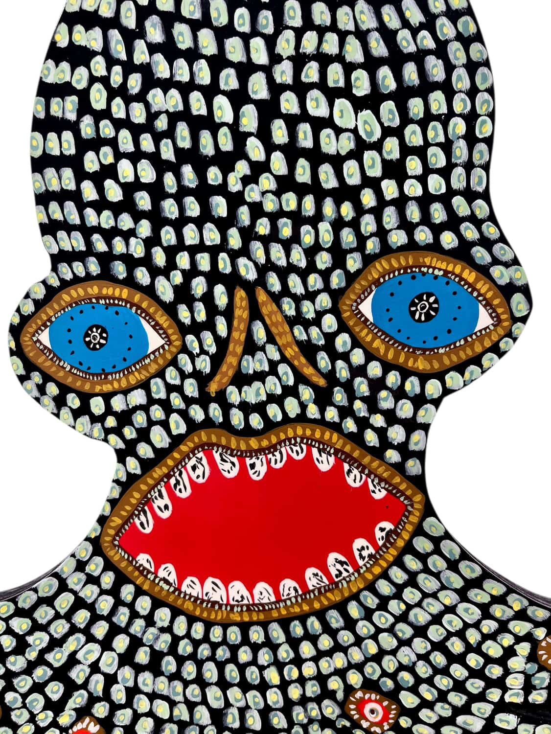 Acrylic and spray paint on 23.5" x 24" plywood by Louisville folk artist Patrick Jilbert.