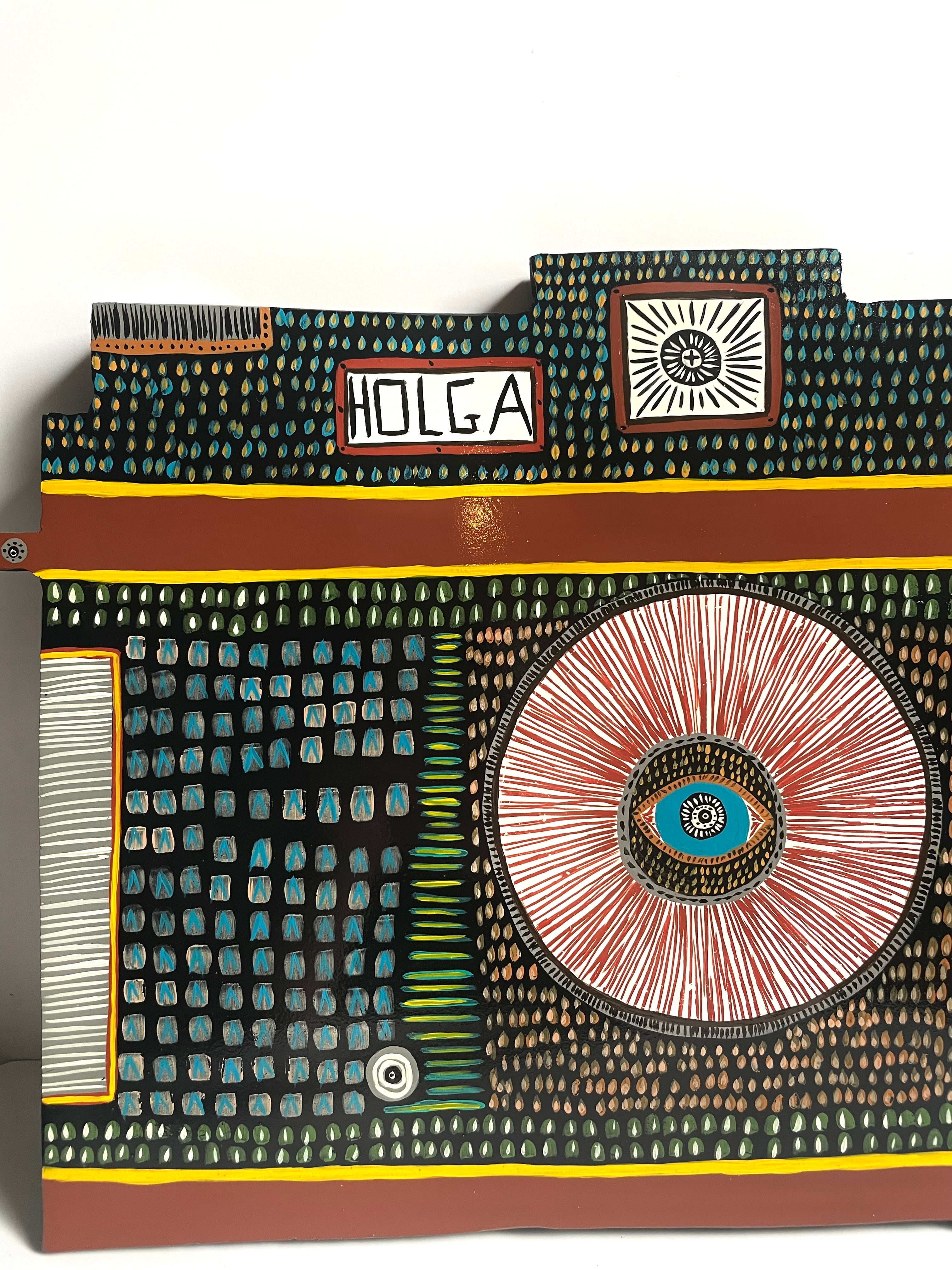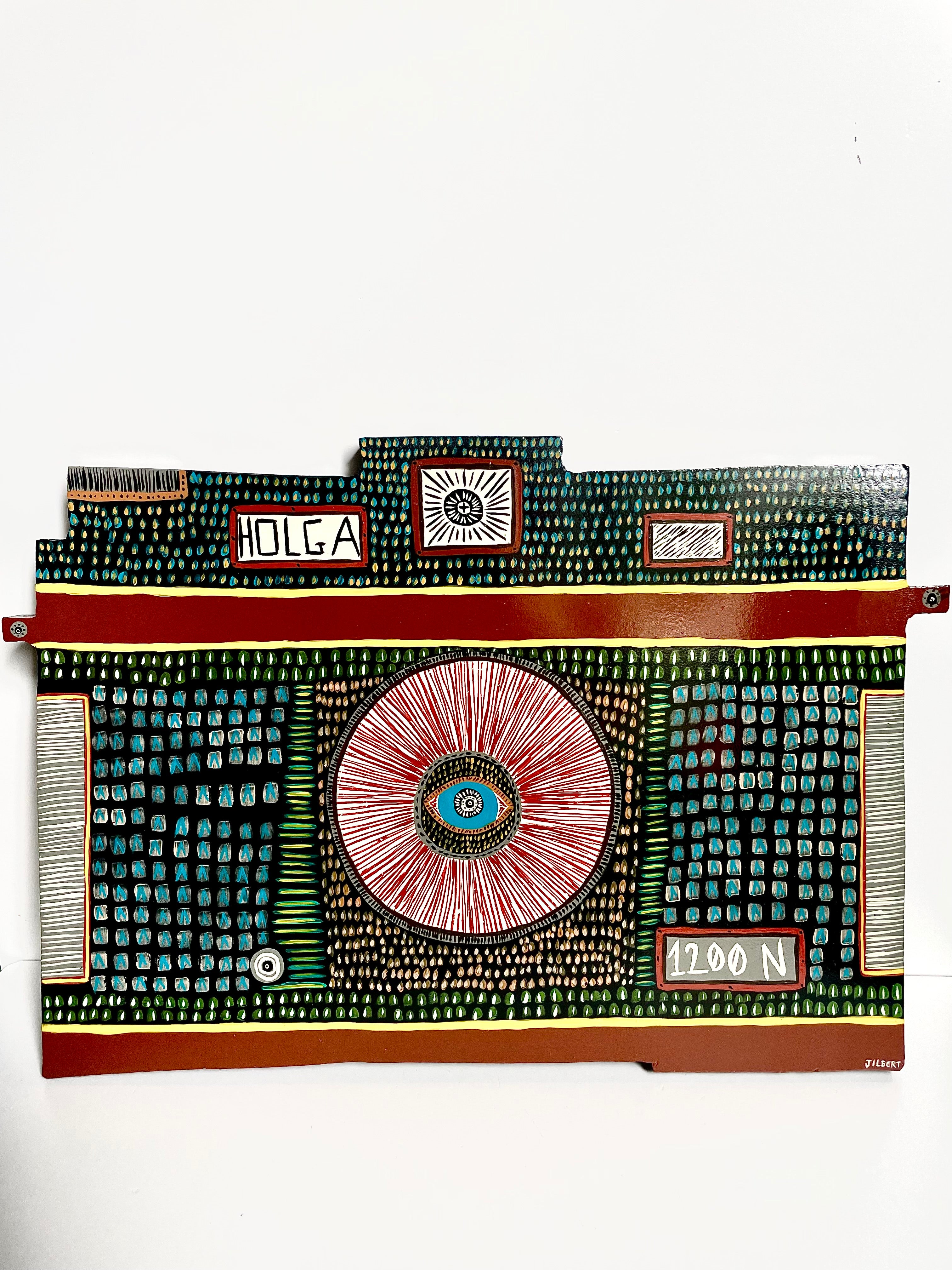 “Holga A25”; Acrylic + spray paint on wood cutout, by Patrick Jilbert