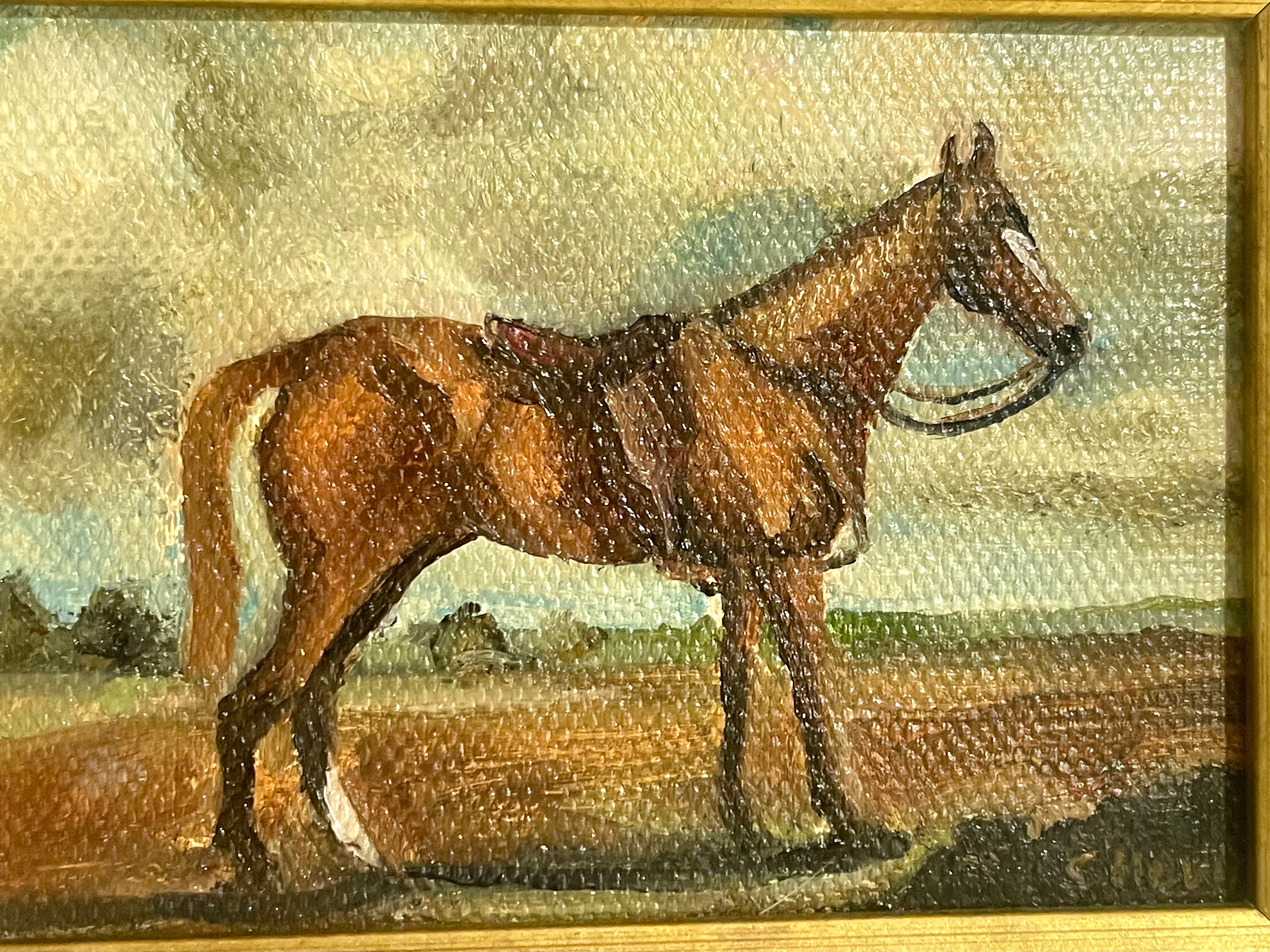 Horse, oil painting on 4"x3" framed canvas, by Susan Howe
