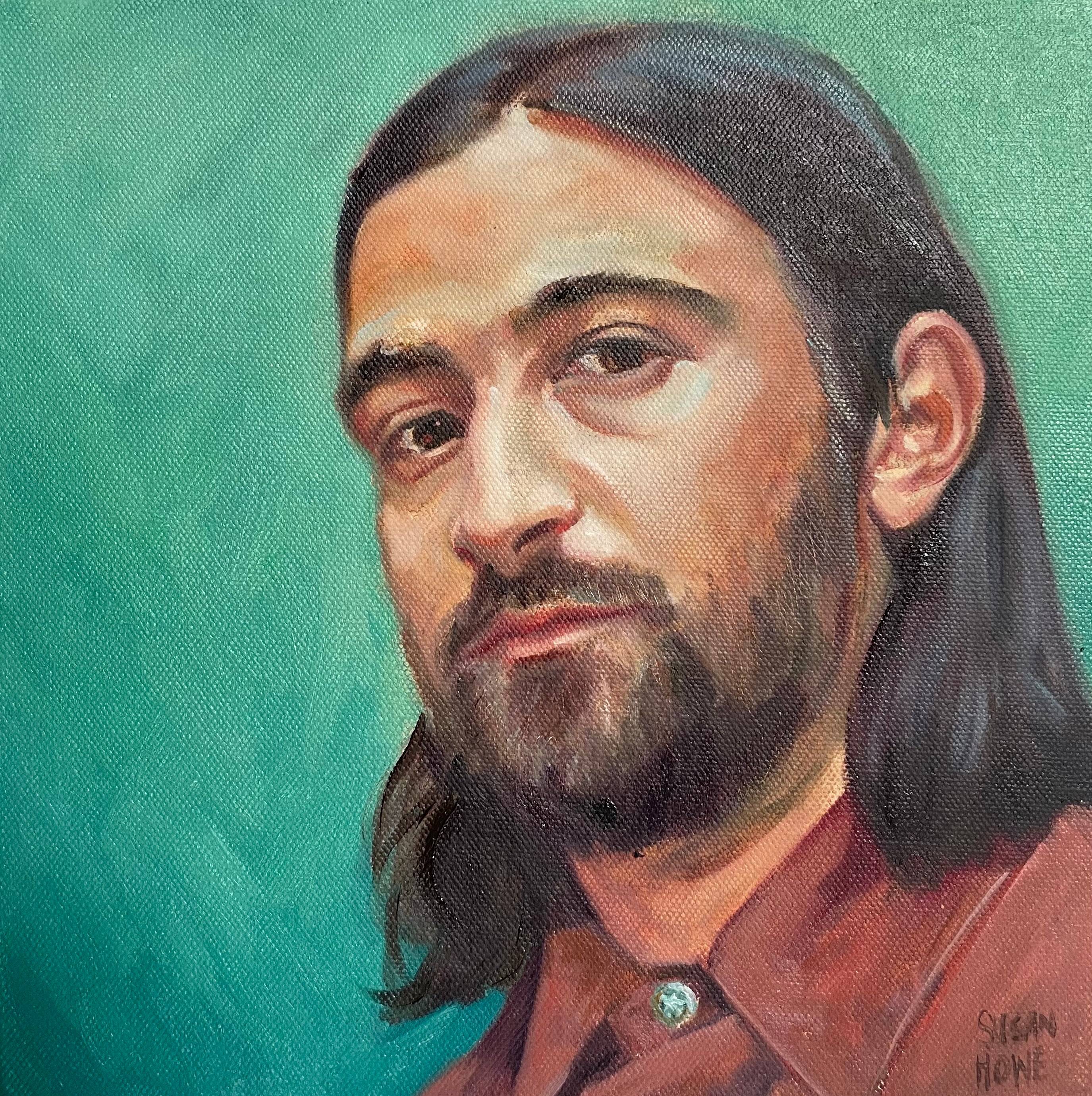 Noah Kahan, oil painting, 10” x 10” by Susan Howe!