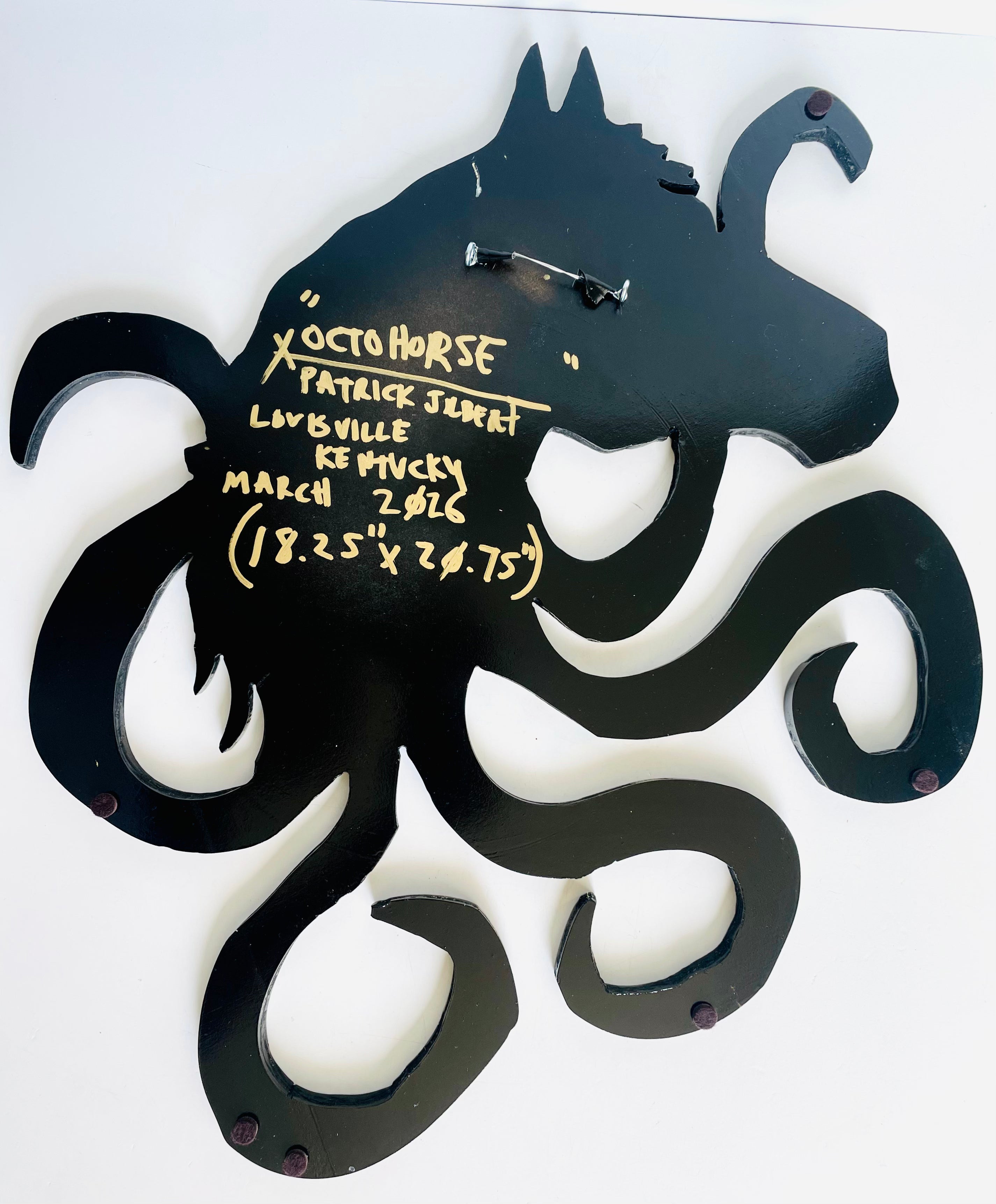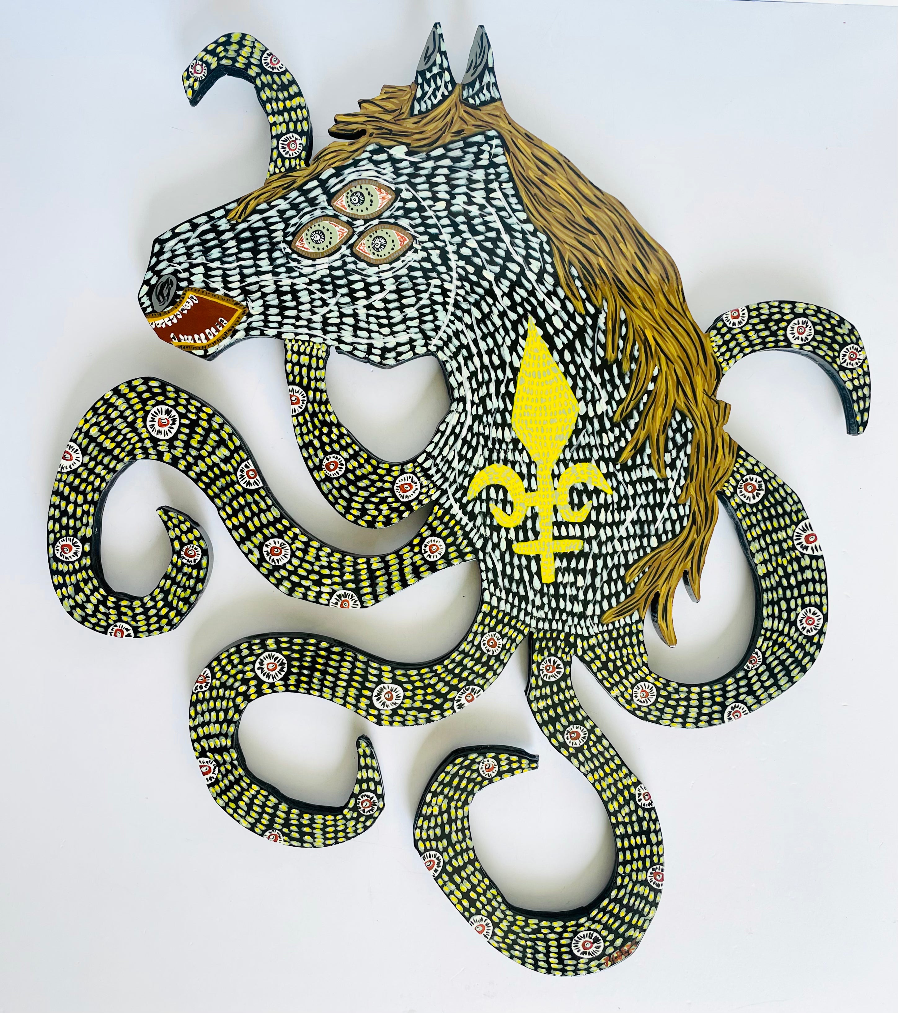 Octohorse, Acrylic and Spray Paint on Hand-Cut reclaimed MDF coasted with polyurethane gloss spray