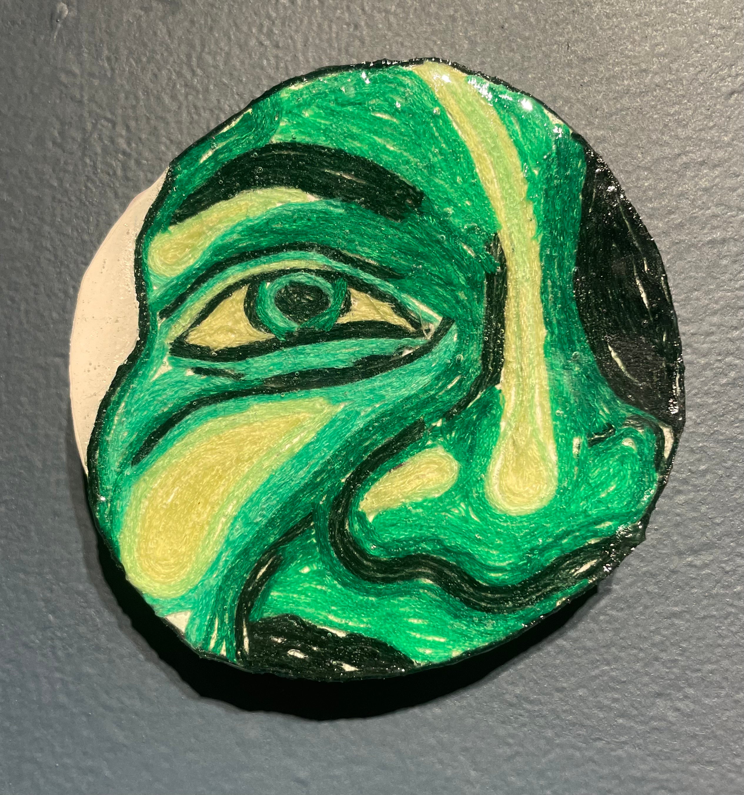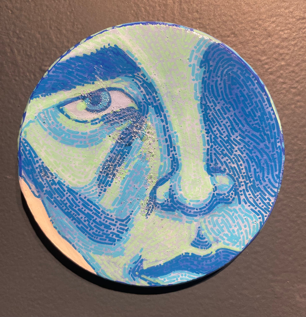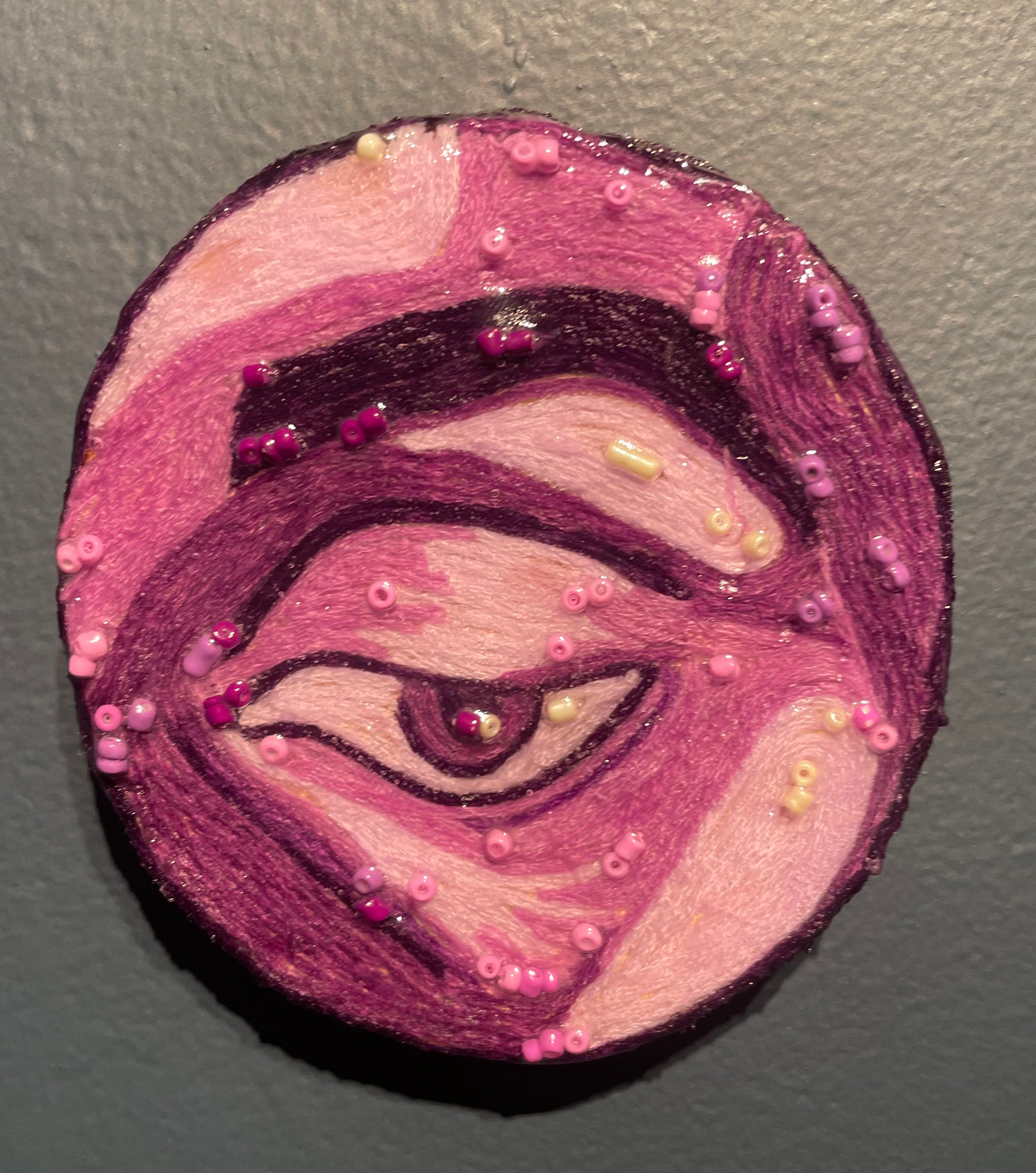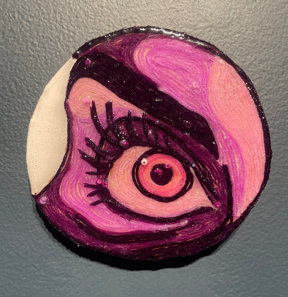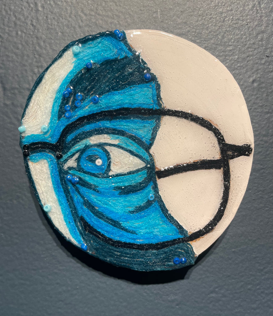 Glimpses; a series of studies using thread or paint on wood and sealed with a layer of resin; by local artist Needa Hameed
