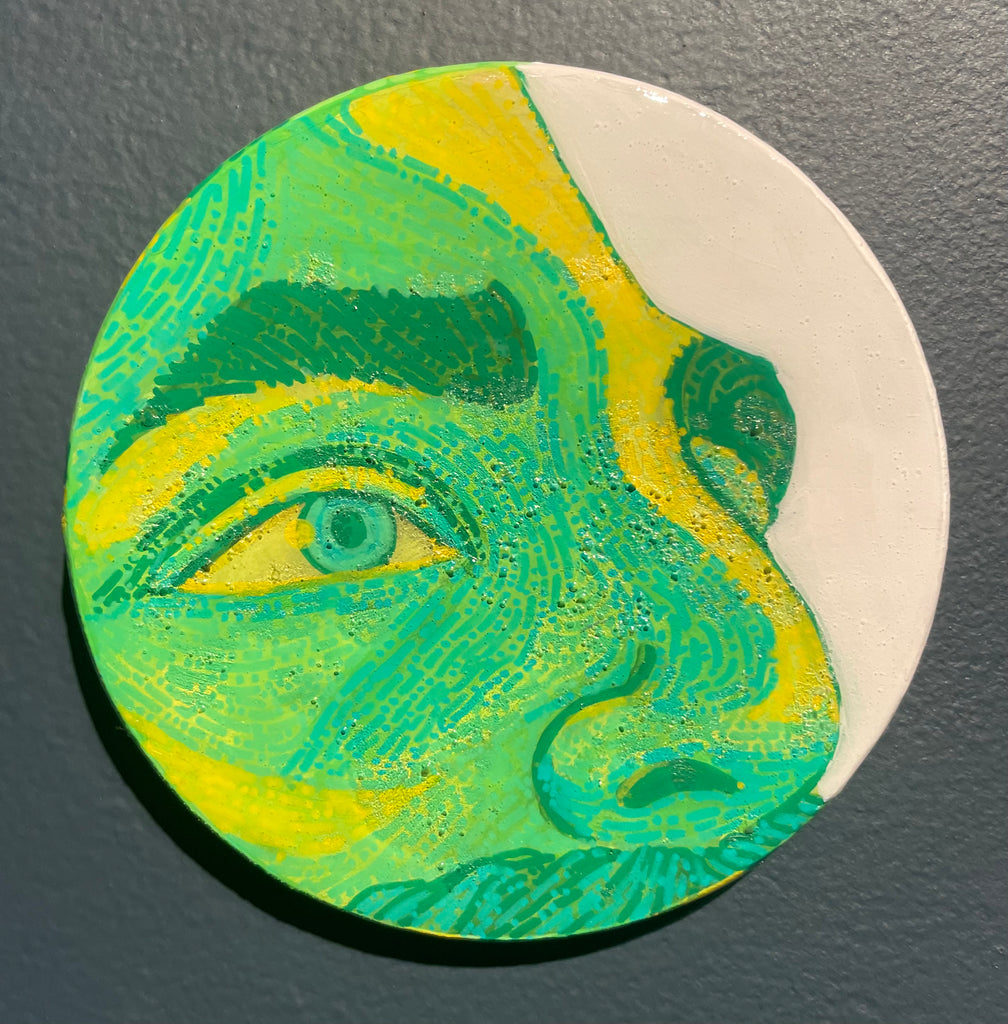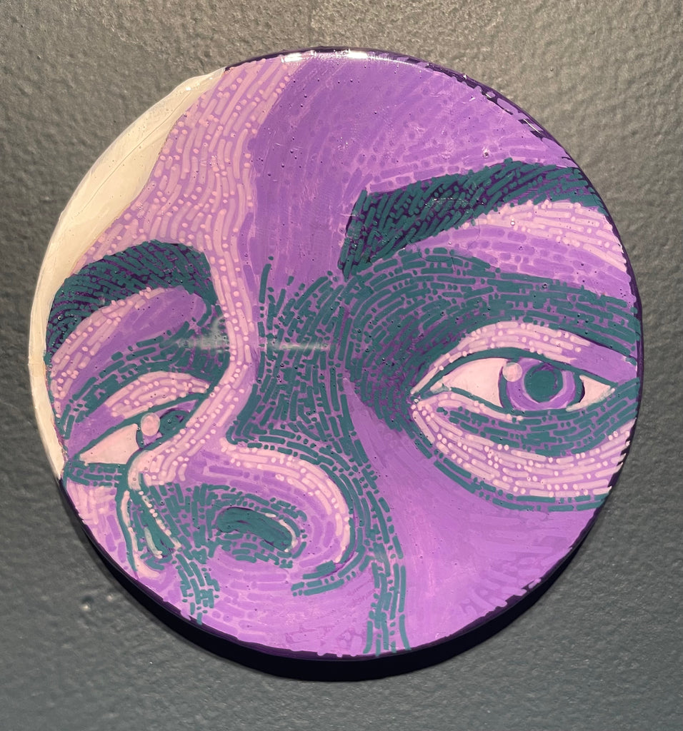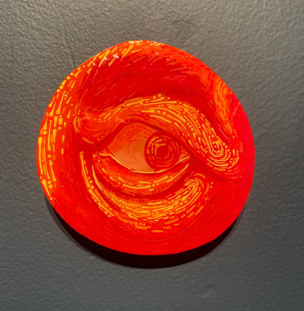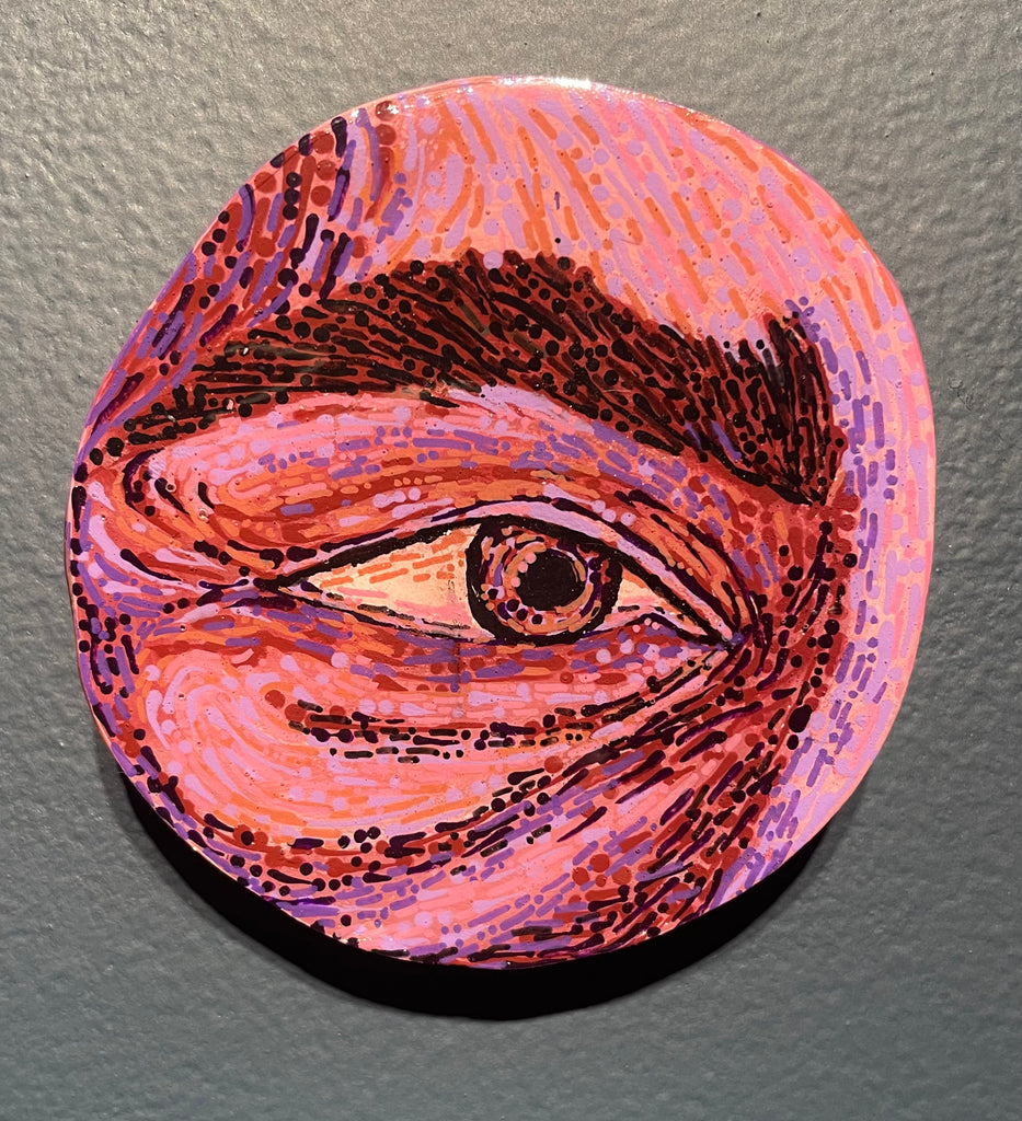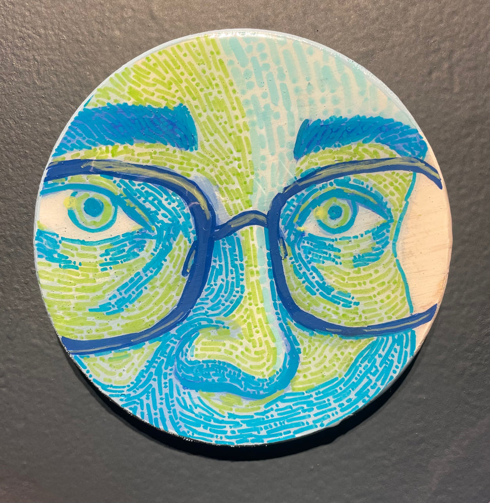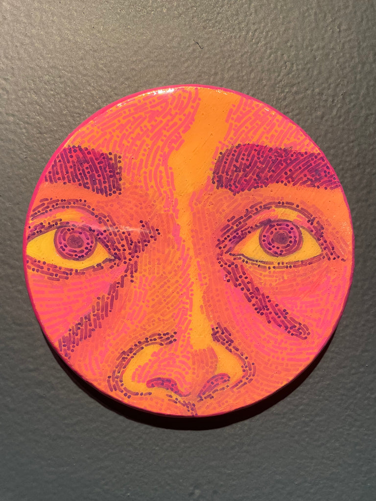 Glimpses; a series of studies using thread or paint on wood and sealed with a layer of resin; by local artist Needa Hameed