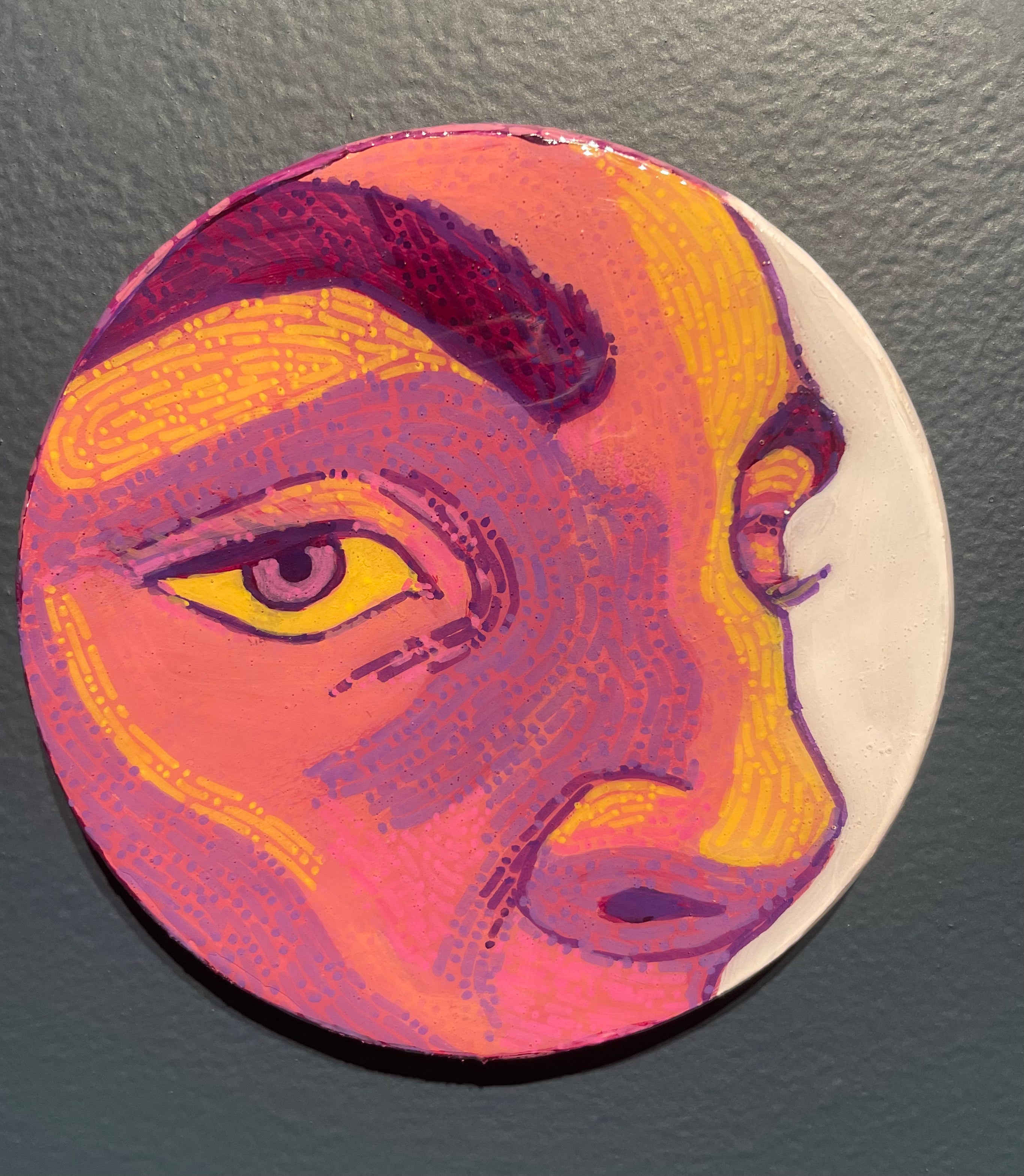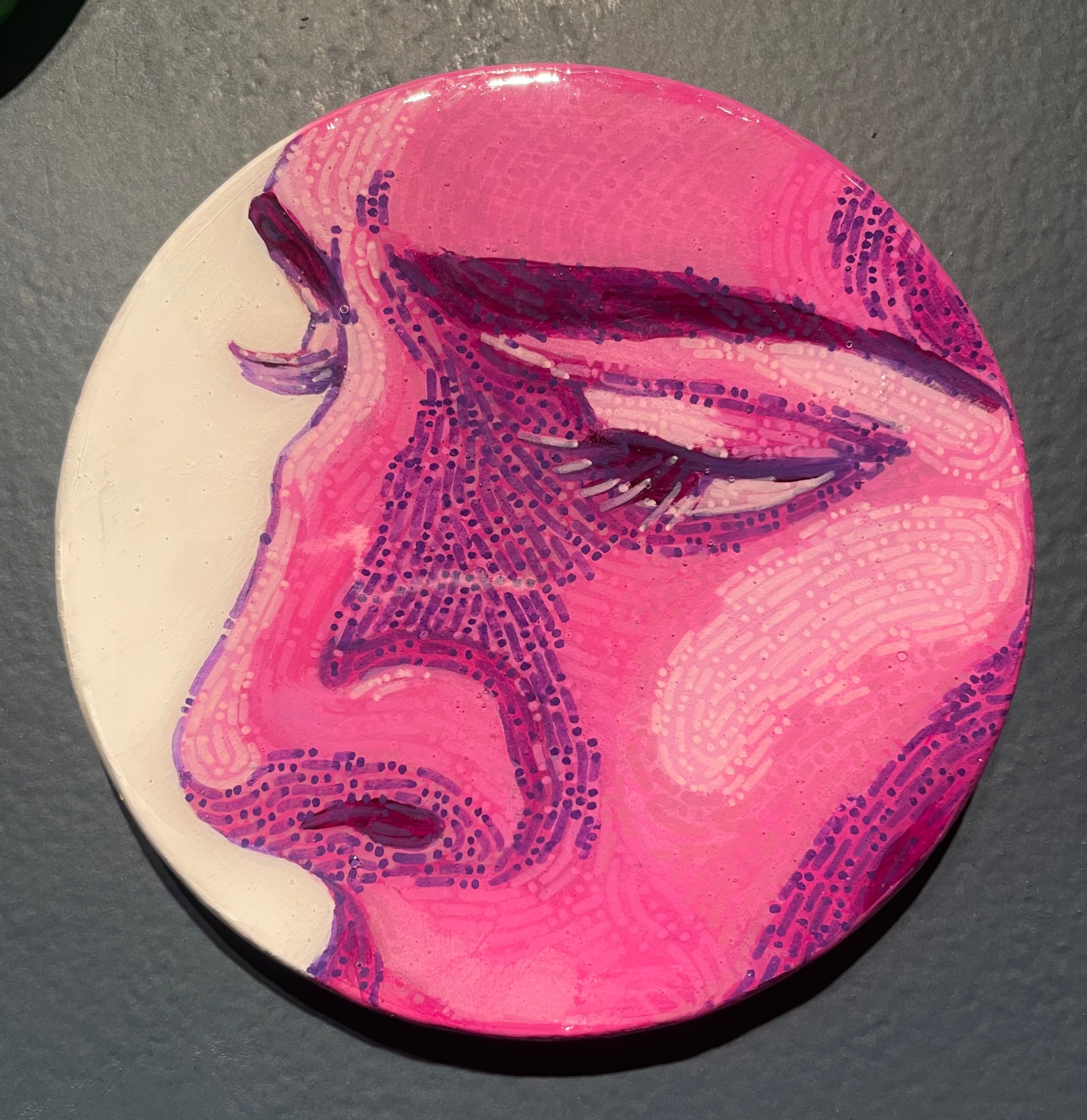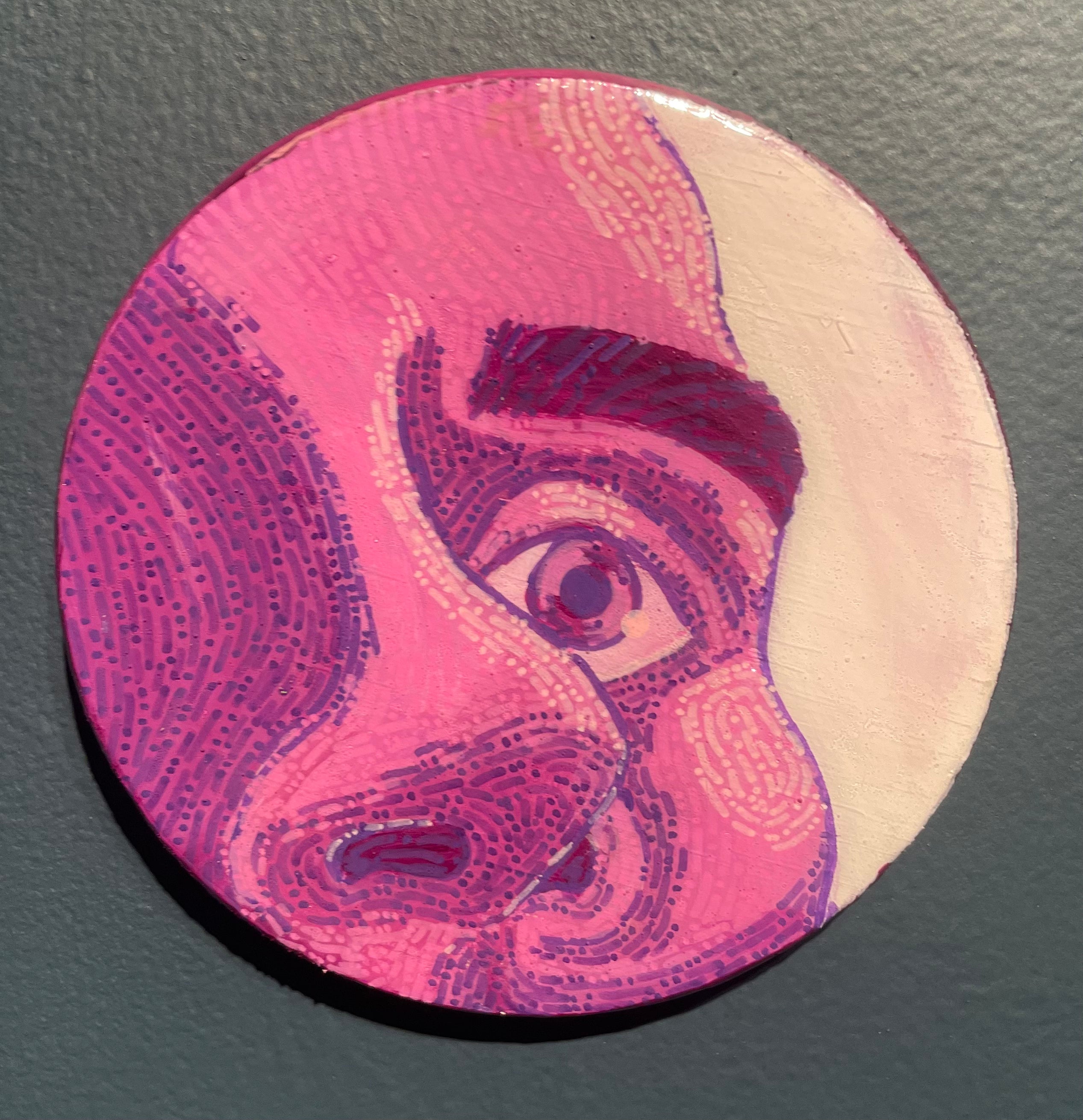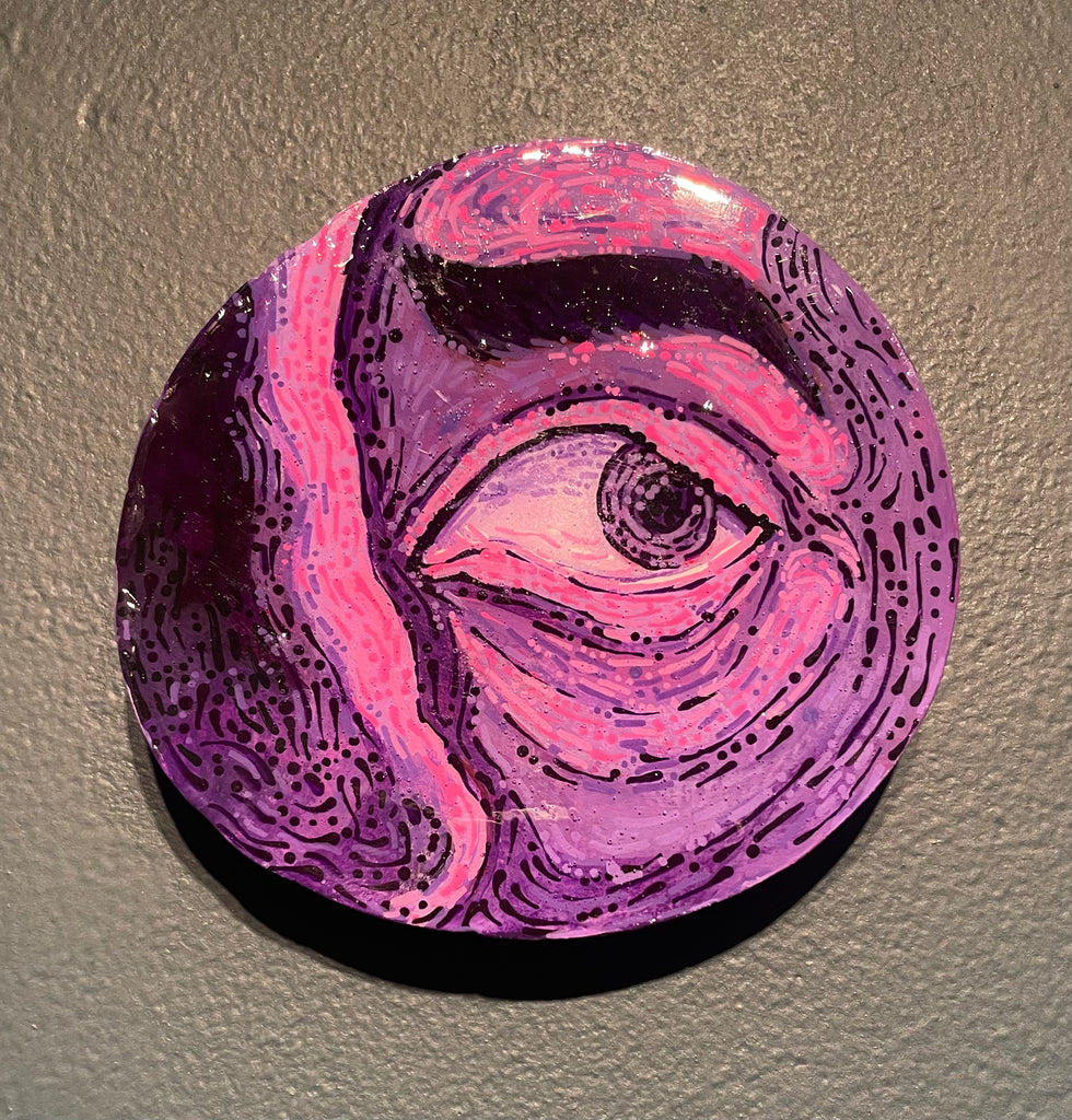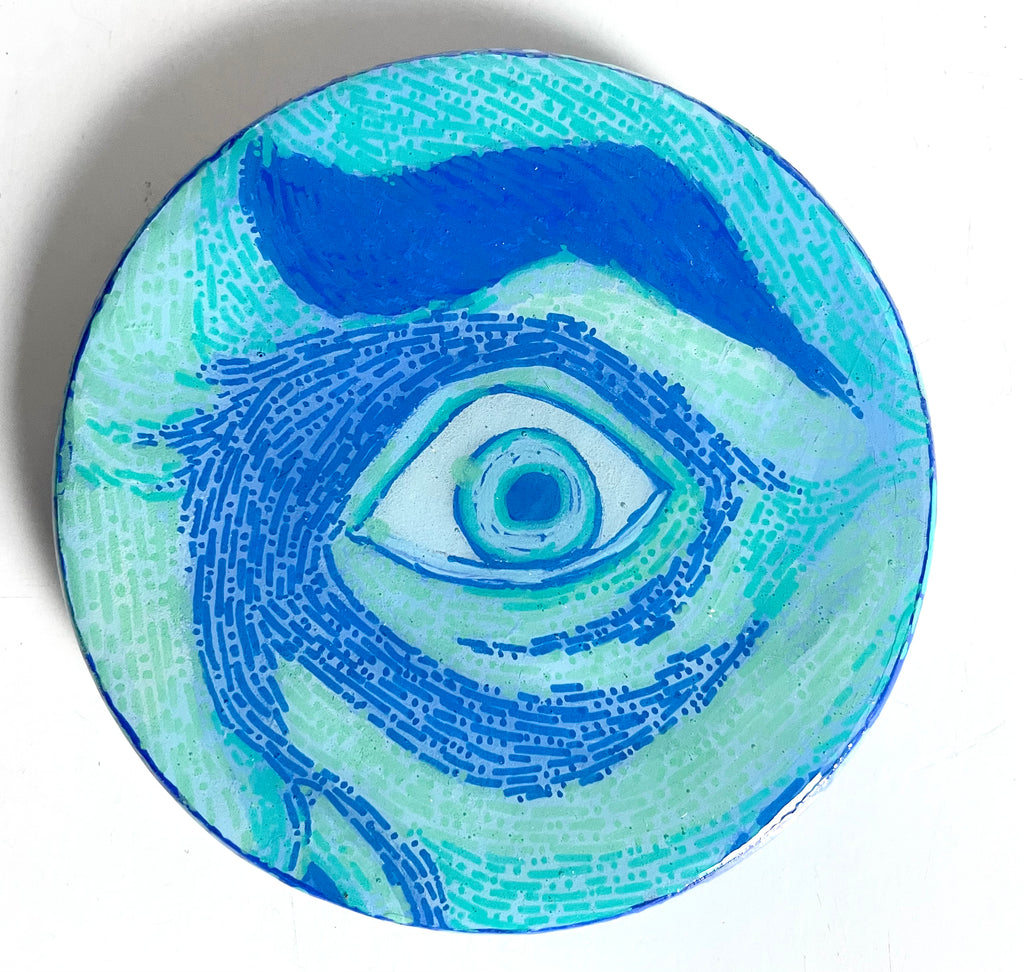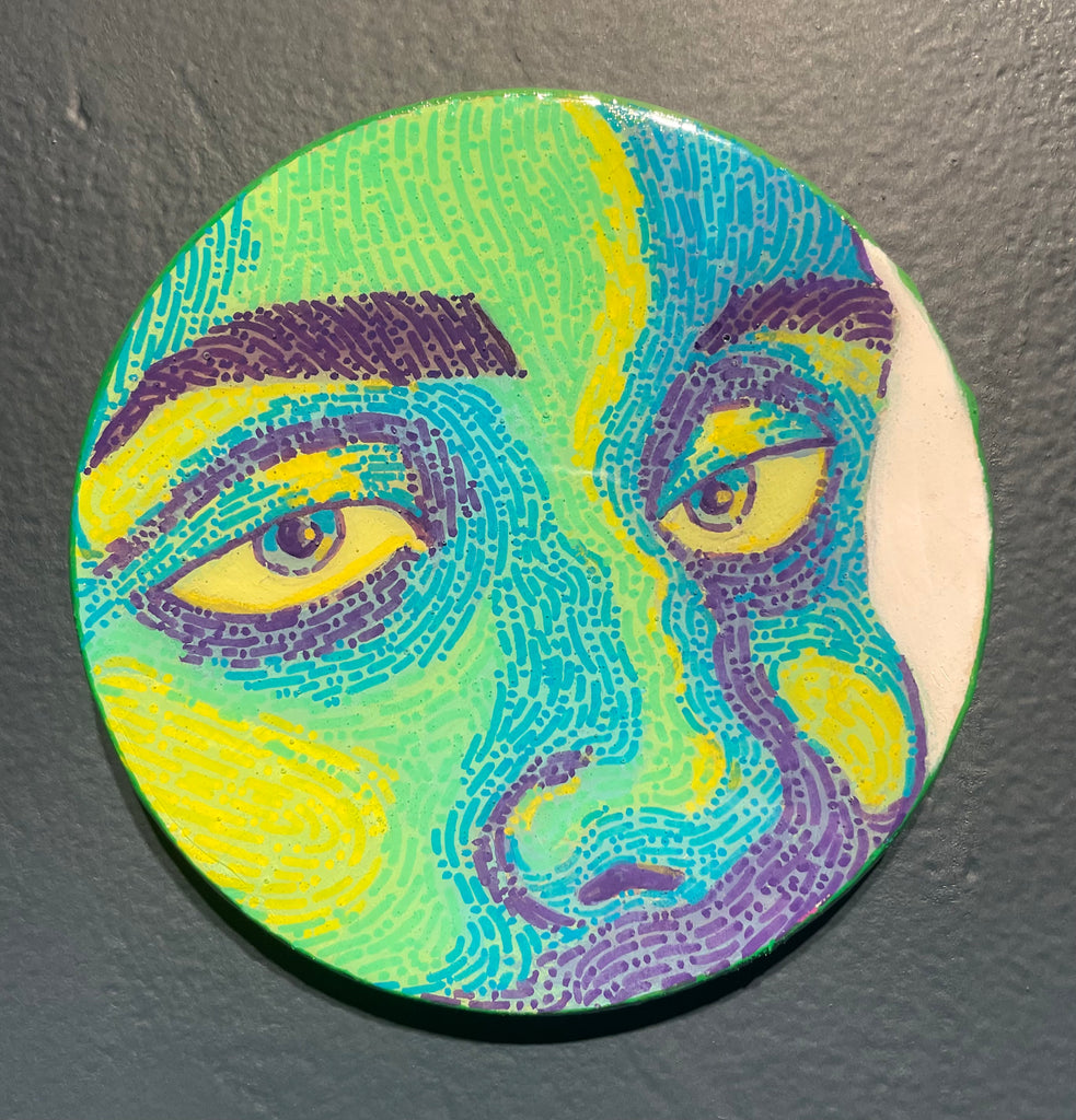 Glimpses; a series of studies using thread or paint on wood and sealed with a layer of resin; by local artist Needa Hameed